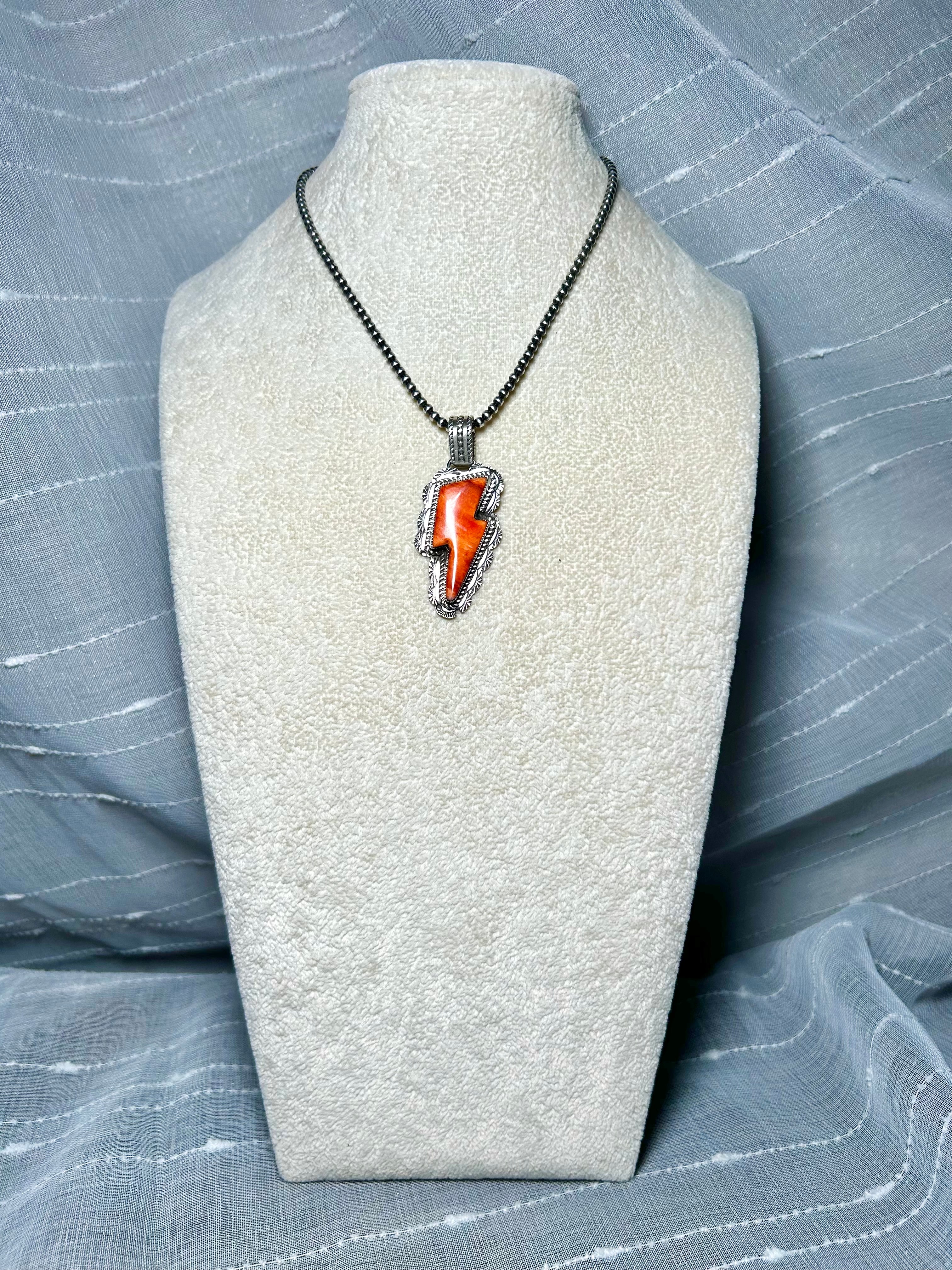 Navajo Made Spiny Oyster & Sterling Silver Pendant. It measures 2 3/8 inches long and 1 inch wide. Pendant Only! Signed by the artist and stamped sterling silver.