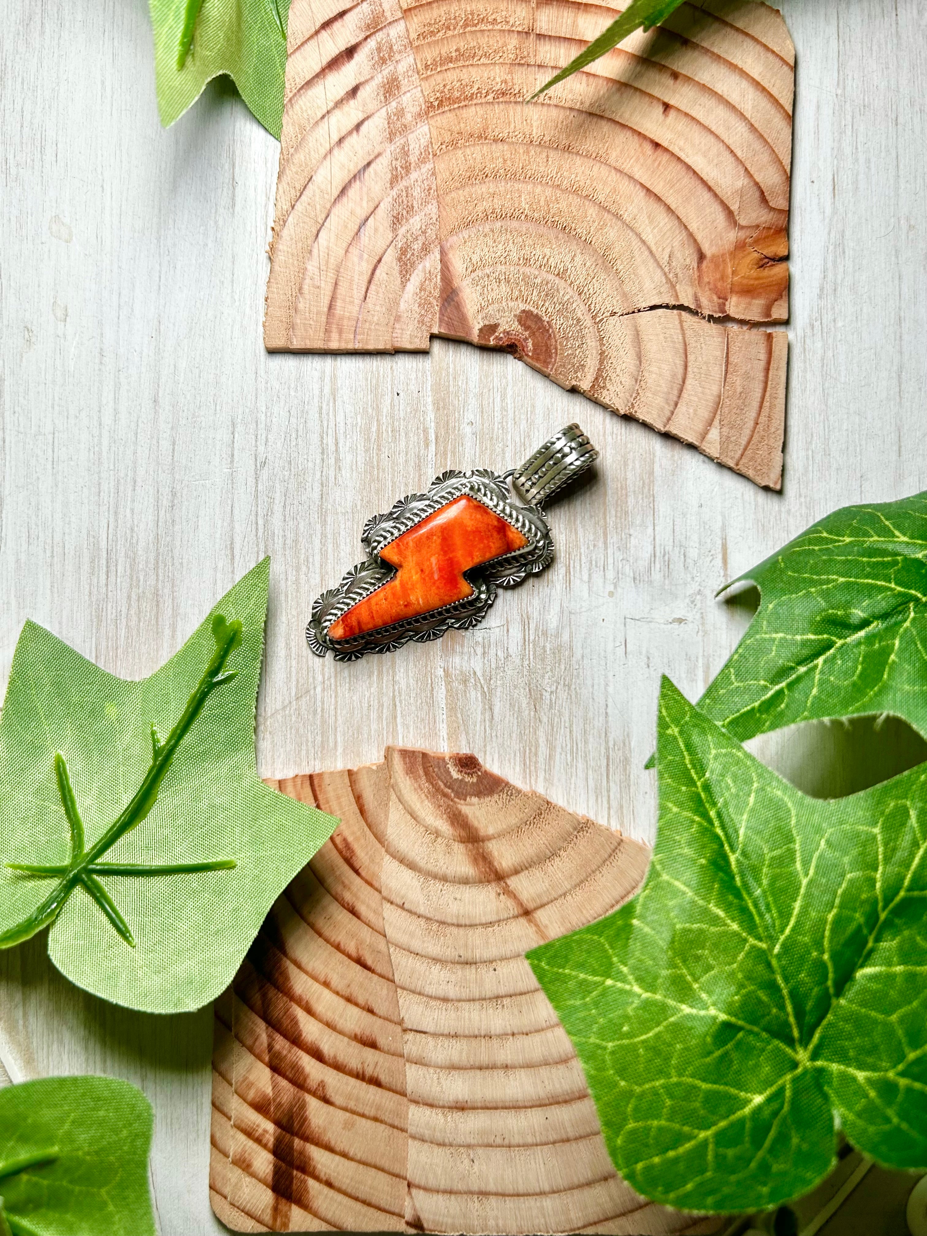 Navajo Made Spiny Oyster & Sterling Silver Pendant