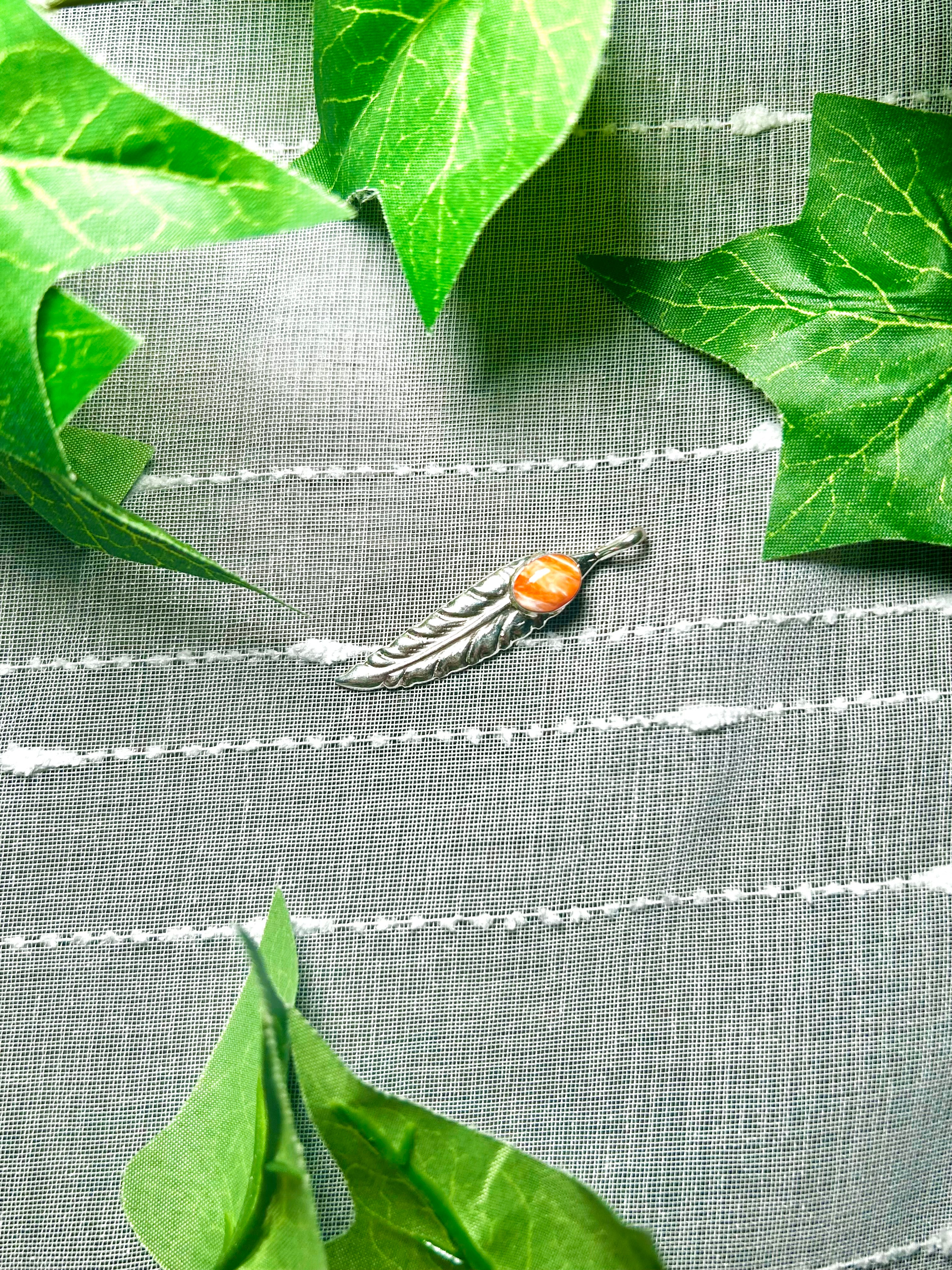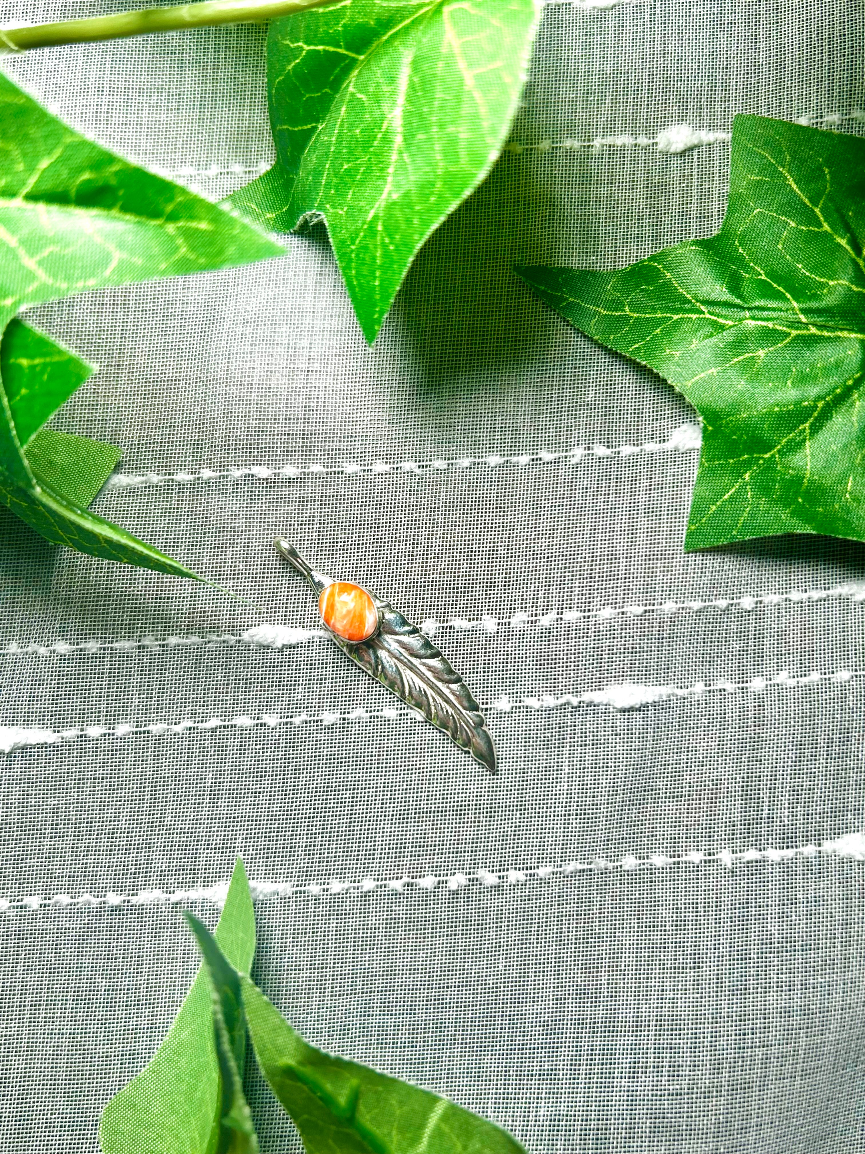 Navajo Made Spiny Oyster & Sterling Silver Pendant. It measures 1 7/8 inches long and 3/8 of an inch wide. Pendant Only! Signed by the artist and stamped sterling silver.