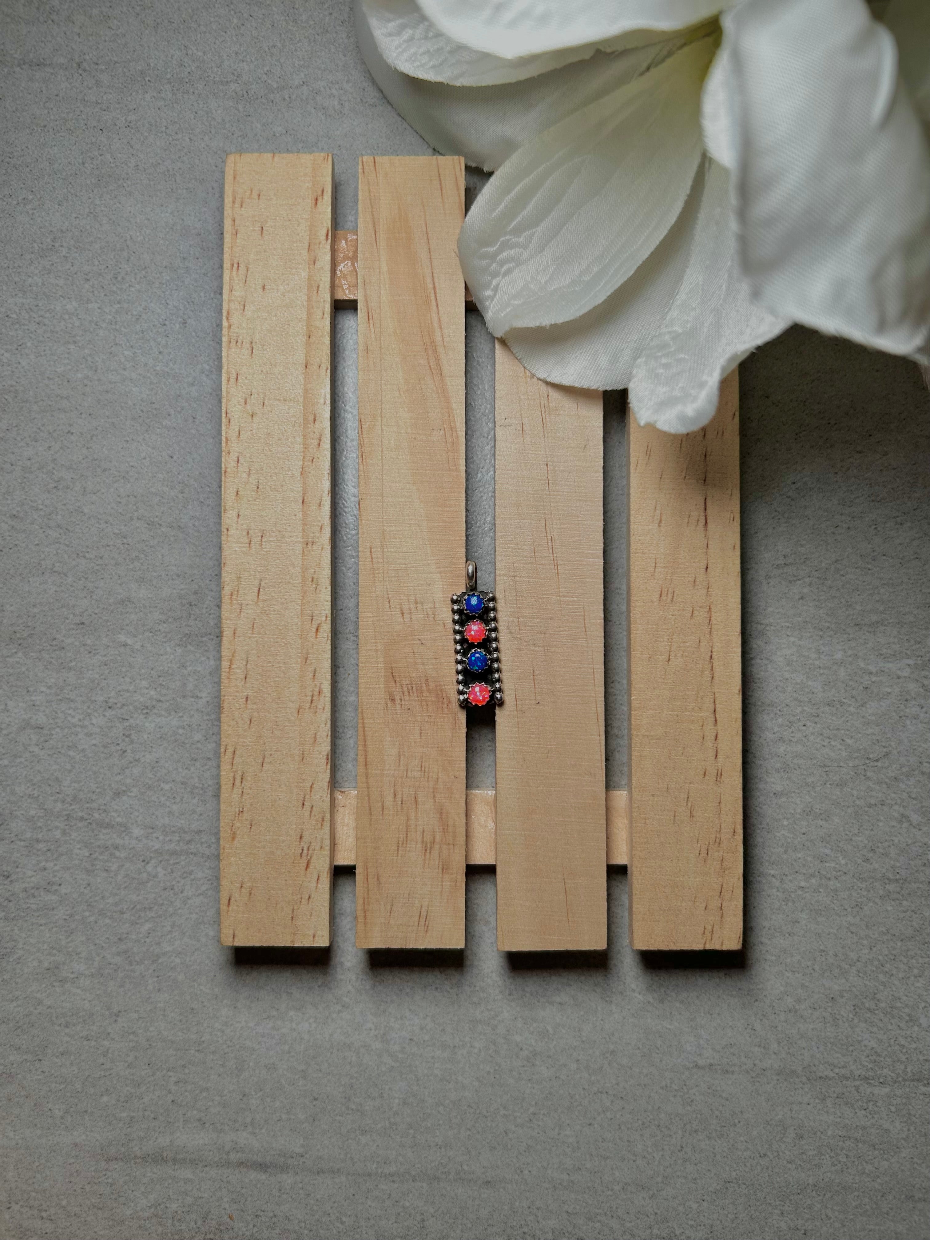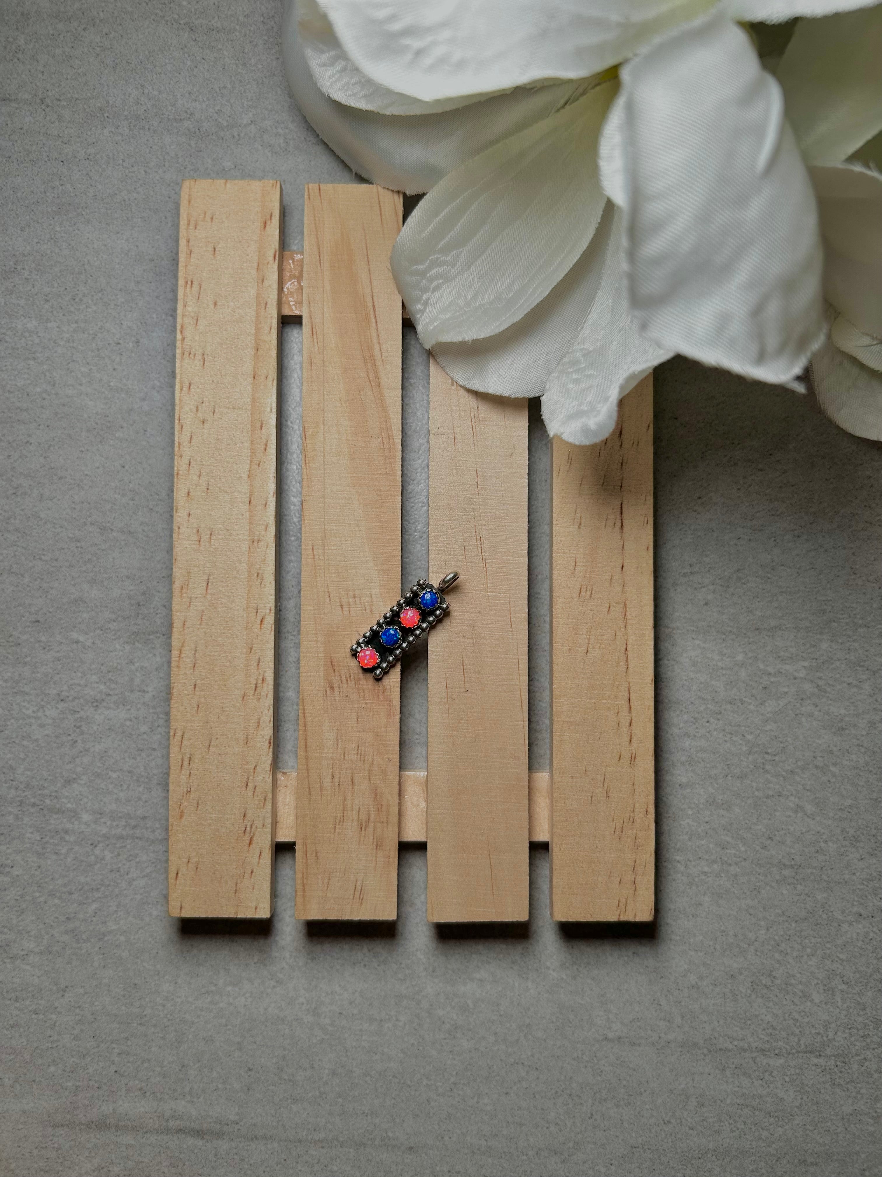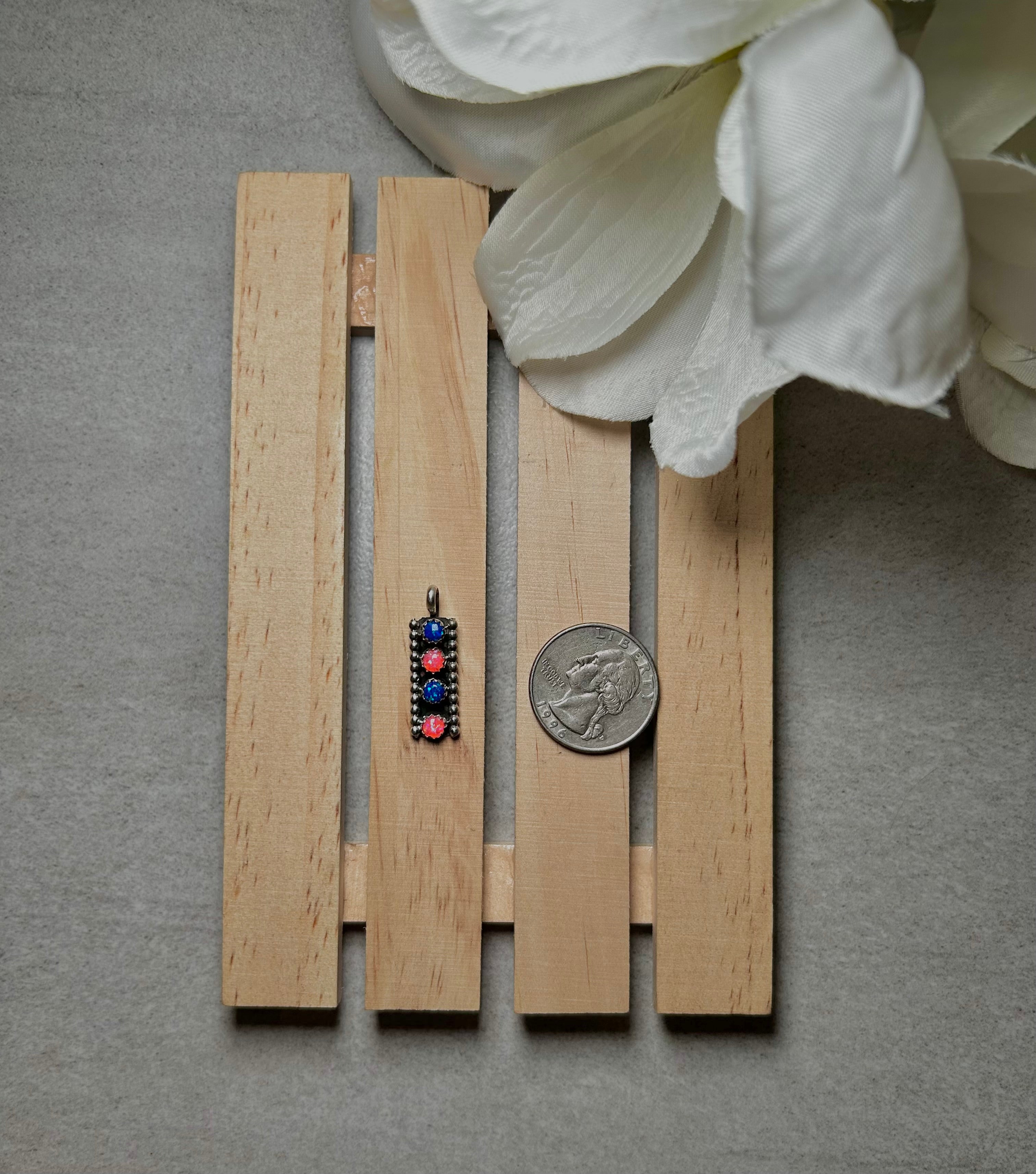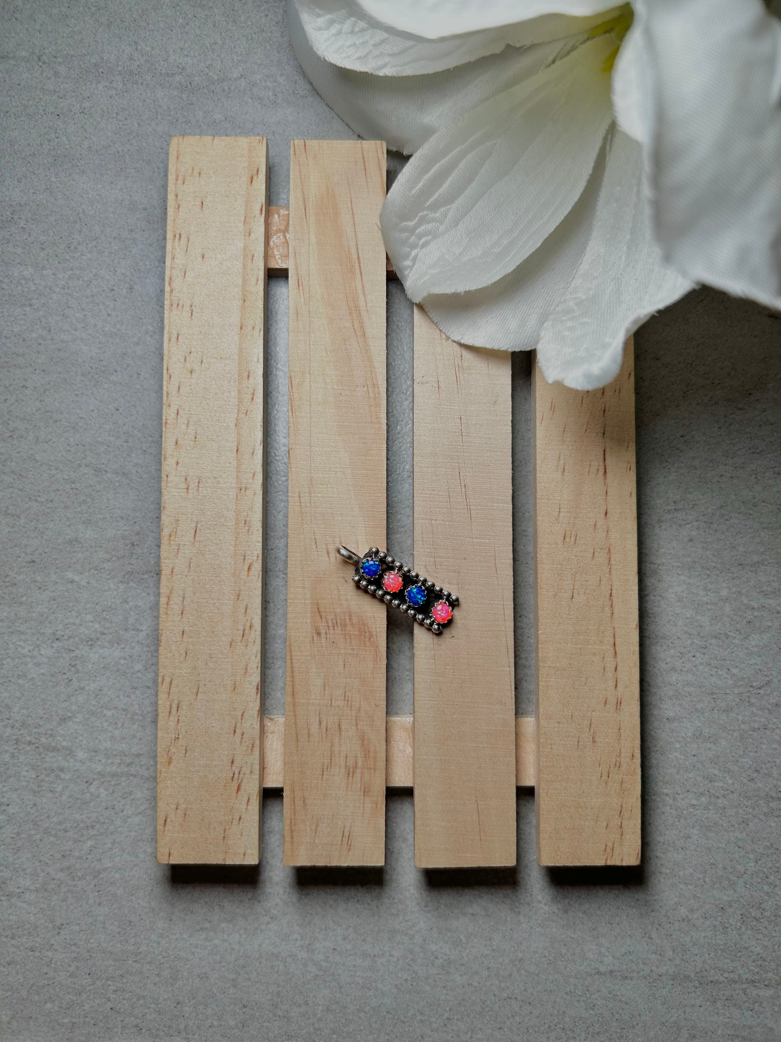 Navajo Made Multi Opal & Sterling Silver Pendant. It measures 1 1/4 inches long and 3/8 of an inch wide. Pendant Only. Signed by the artist and stamped sterling silver.