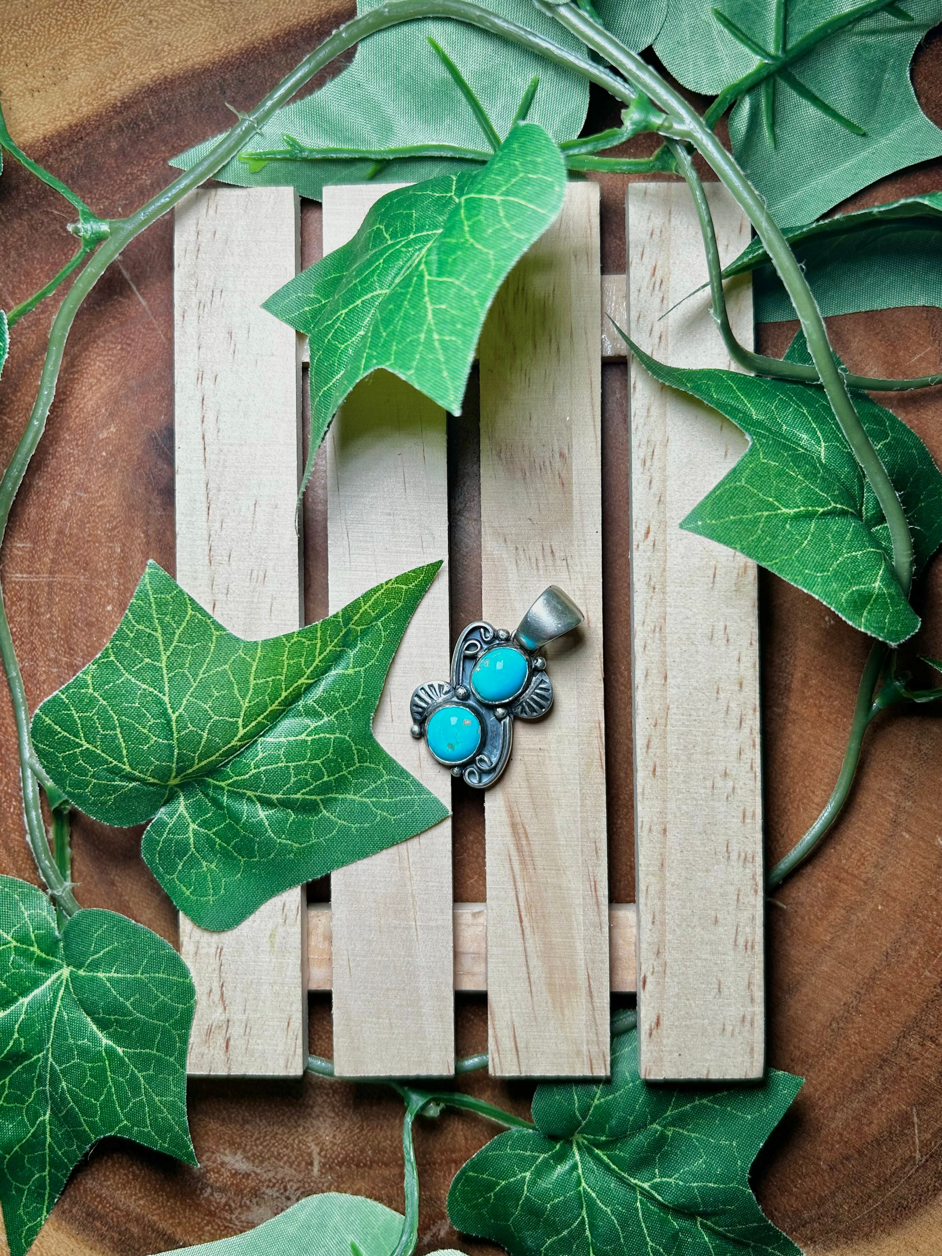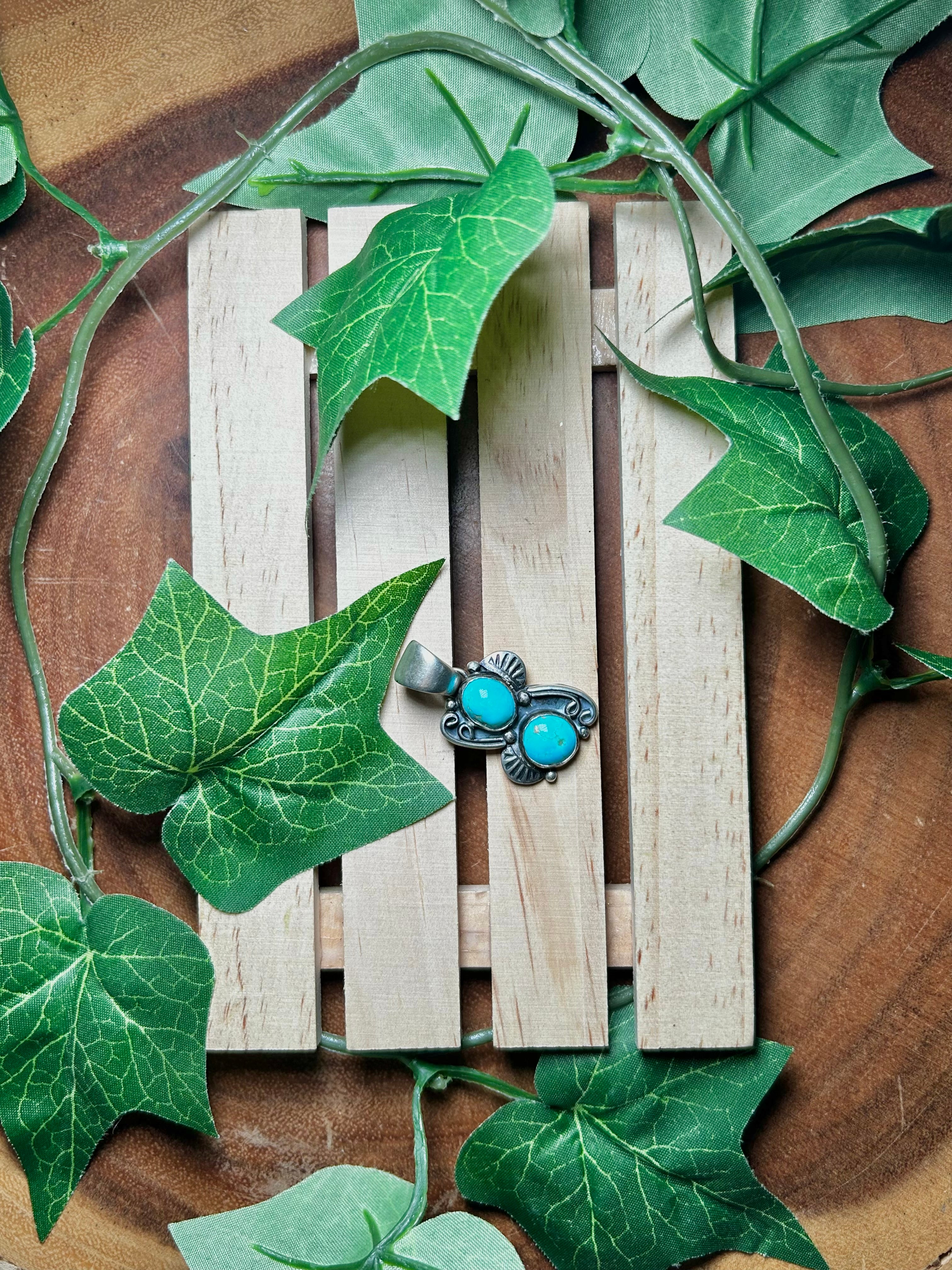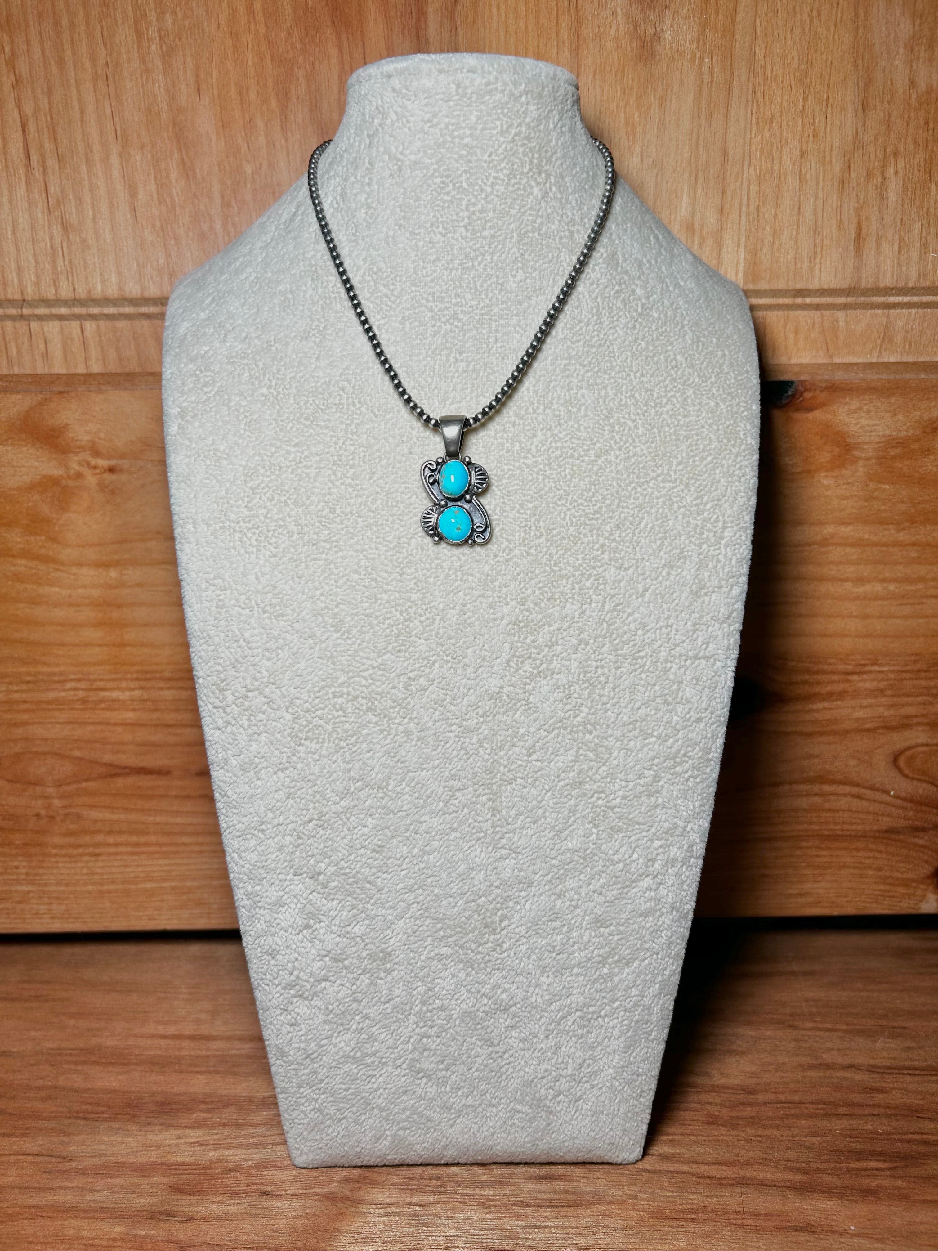 Navajo Made Kingman Turquoise & Sterling Silver Pendant