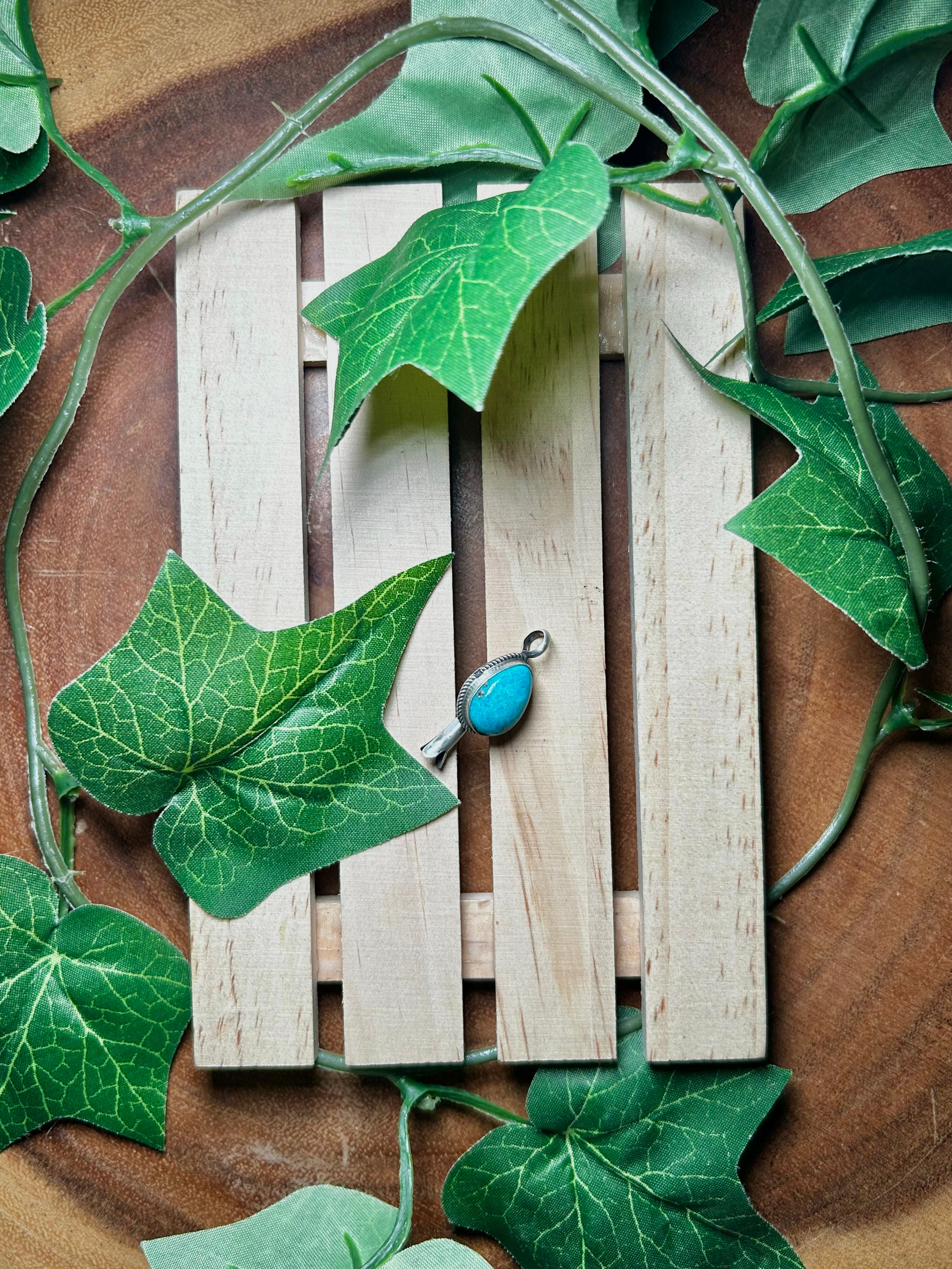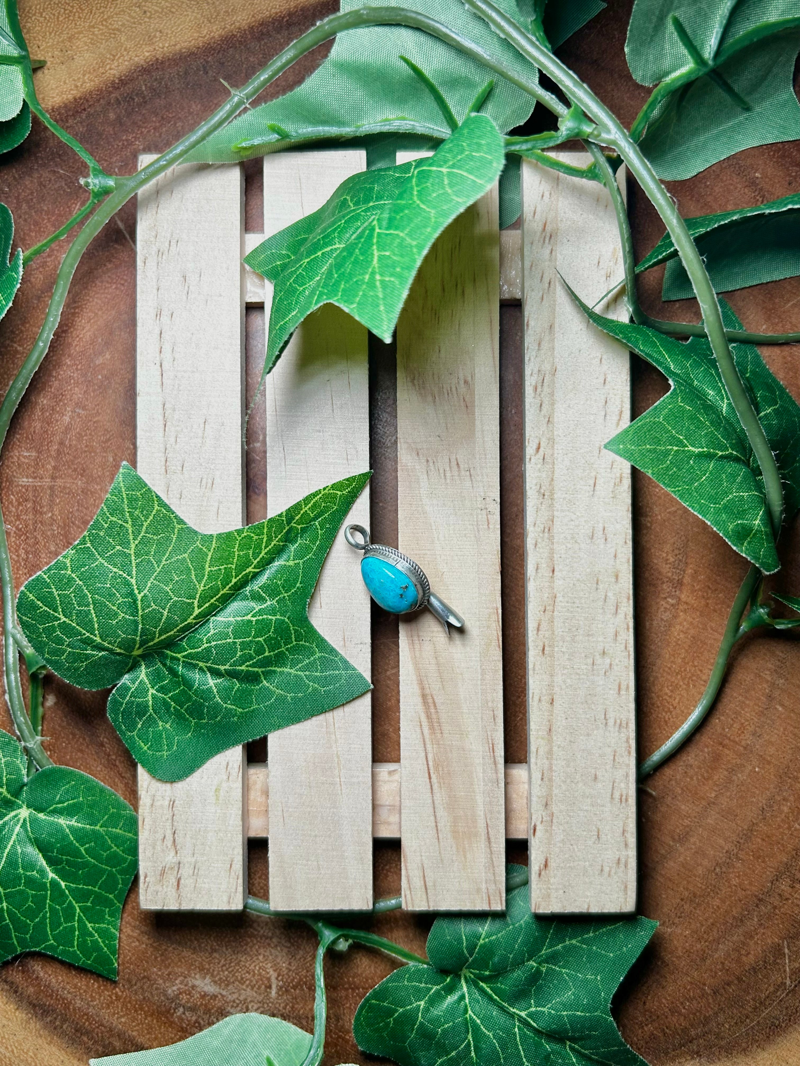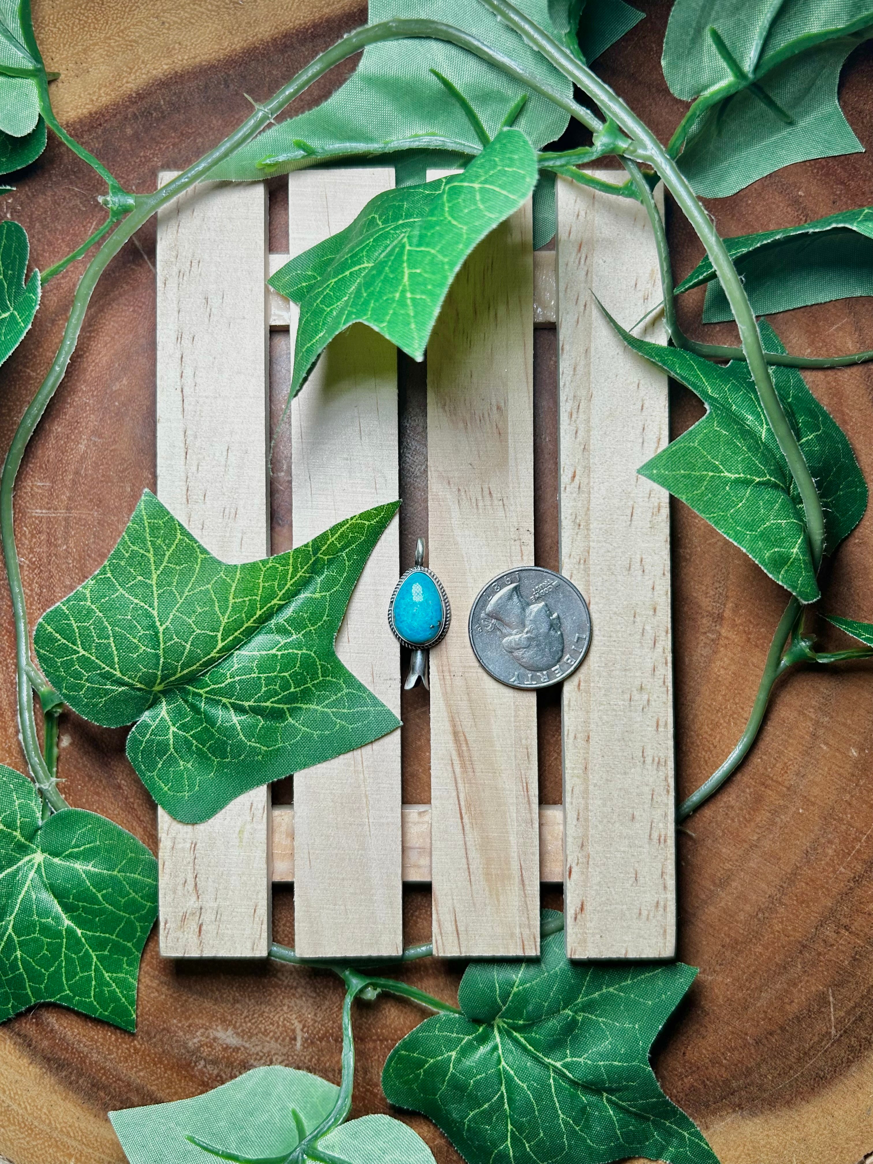 Navajo Made Kingman Turquoise & Sterling Silver Pendant. It measures 1 1/4 inches long and 1/2 of an inch wide. Pendant Only!! Signed by the artist and stamped sterling silver.