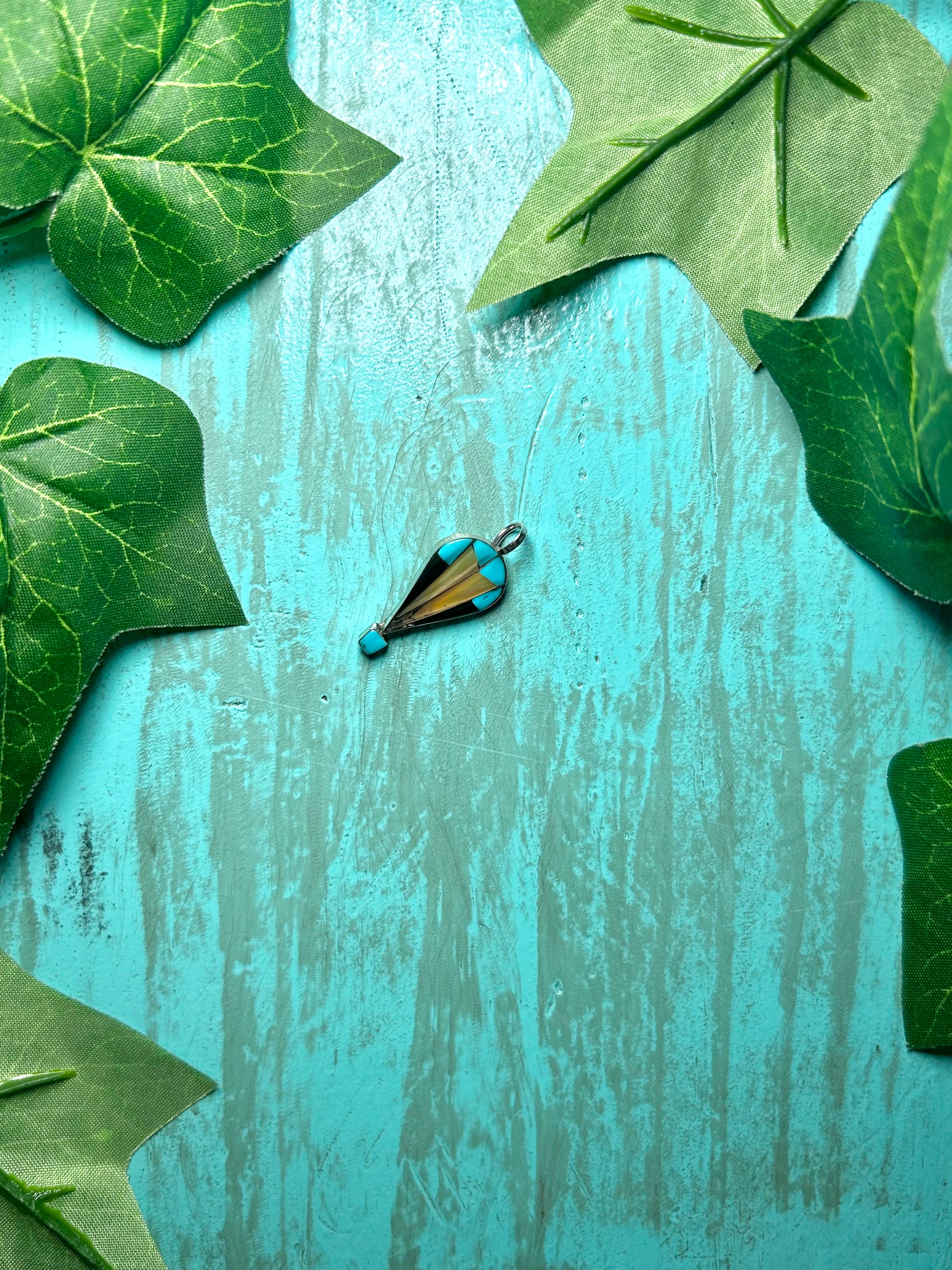 Zuni Multi Stone & Sterling Silver Pendant. It measures 1 1/4 inches long and 1/2 of an inch wide. Signed by artist and stamped sterling silver. Pendant Only!!!
