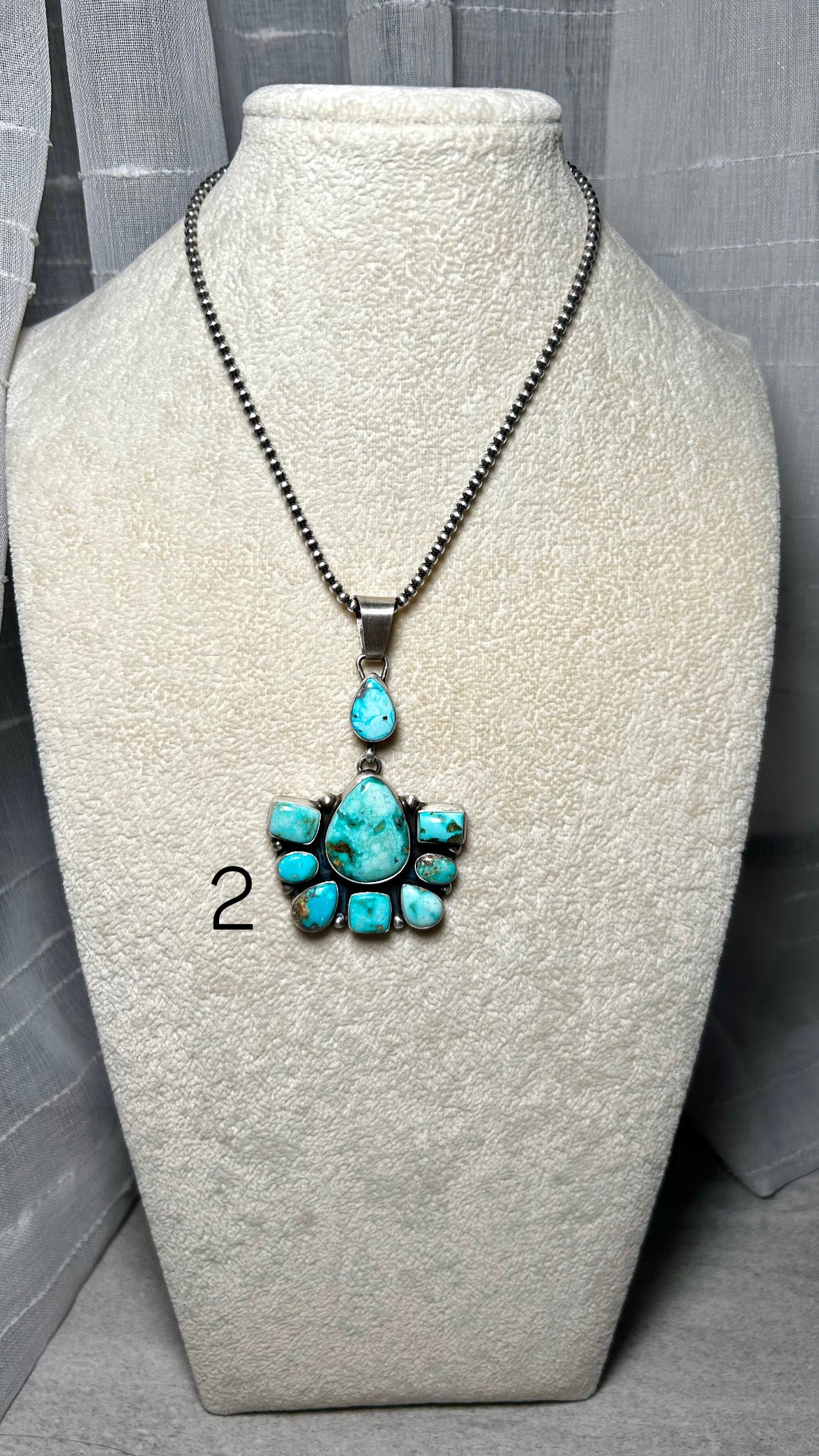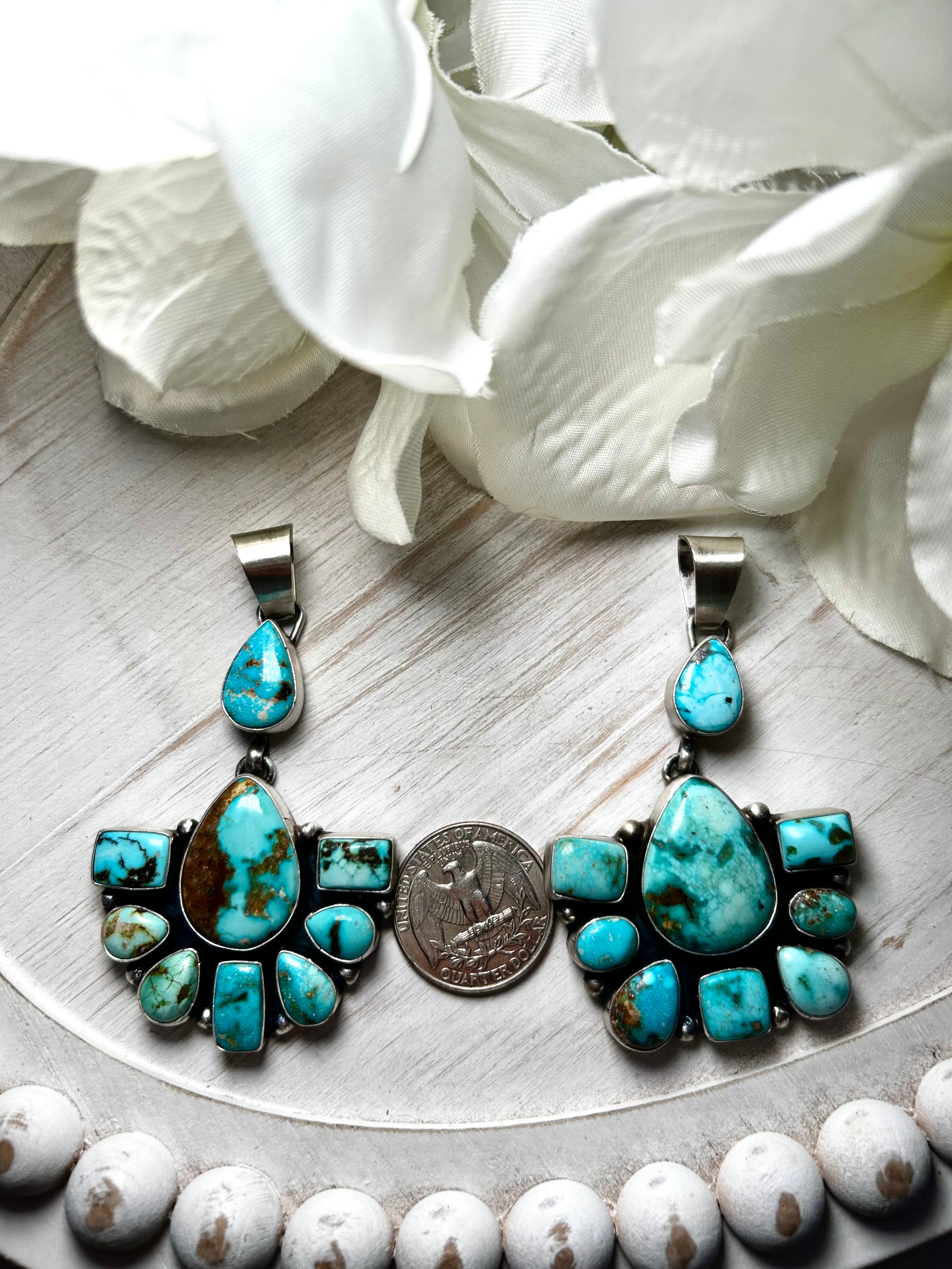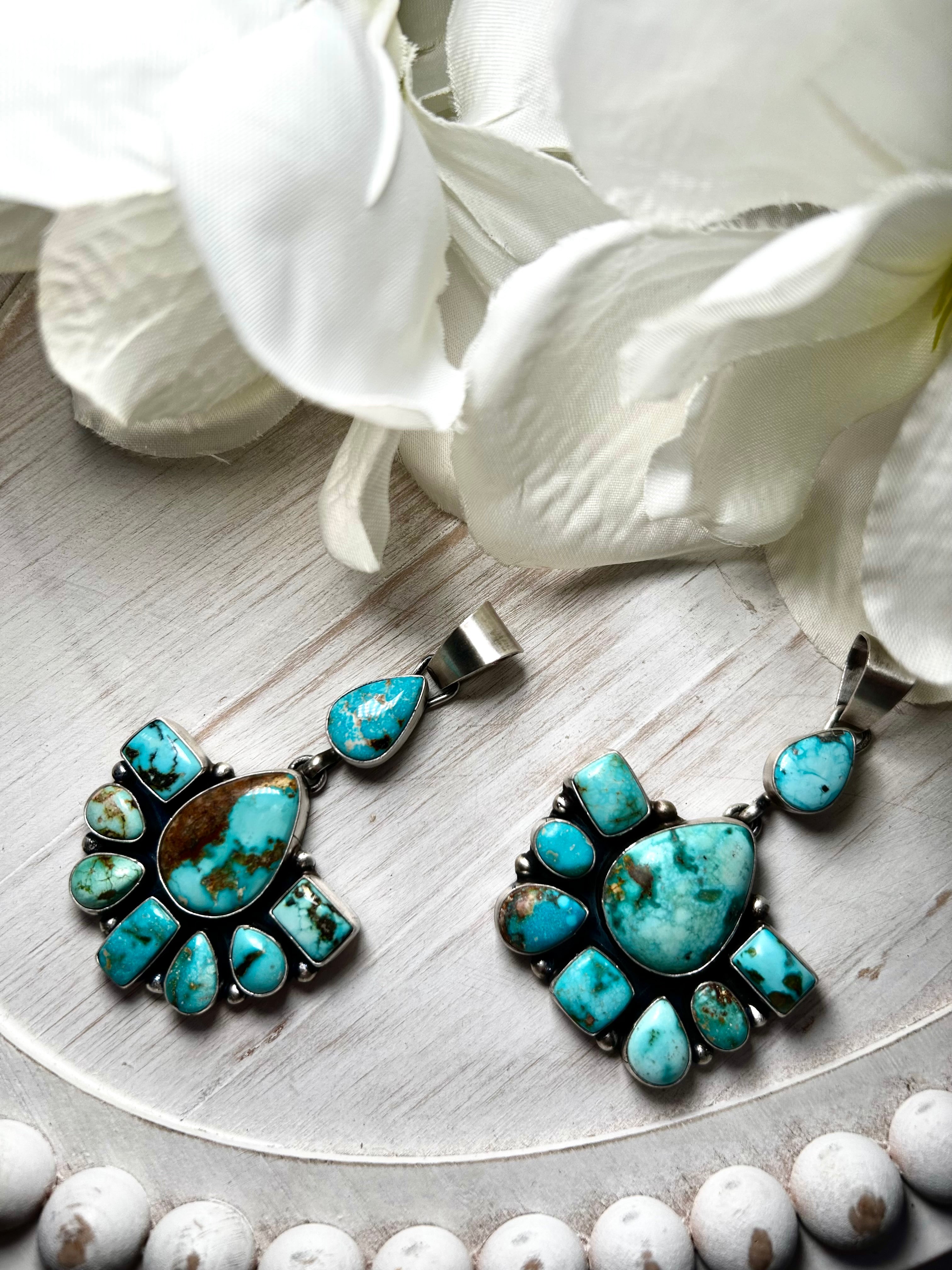 Kathleen Livingston Royston Turquoise & Sterling Silver Pendant. It measures 3 inches long and 1 3/4 inches wide. Signed by the artist and stamped sterling silver. Pendant only!