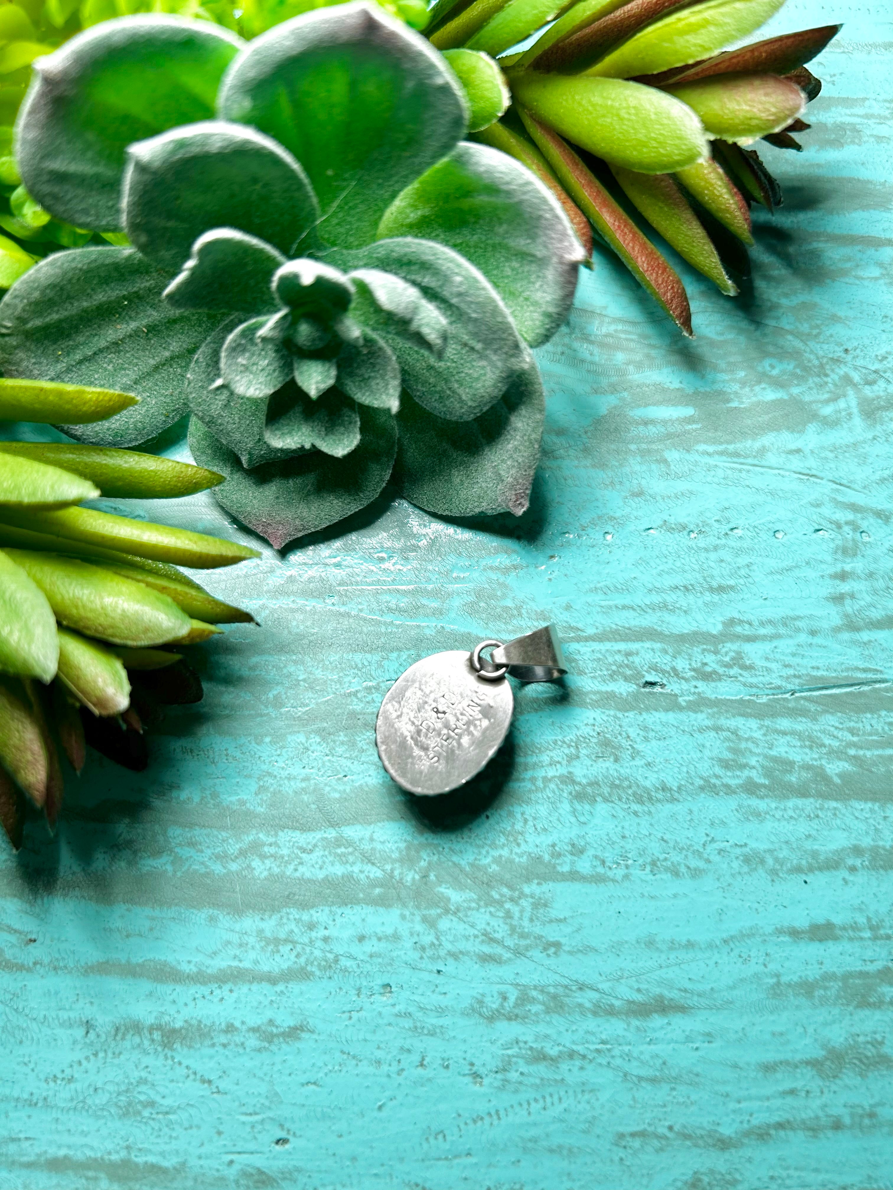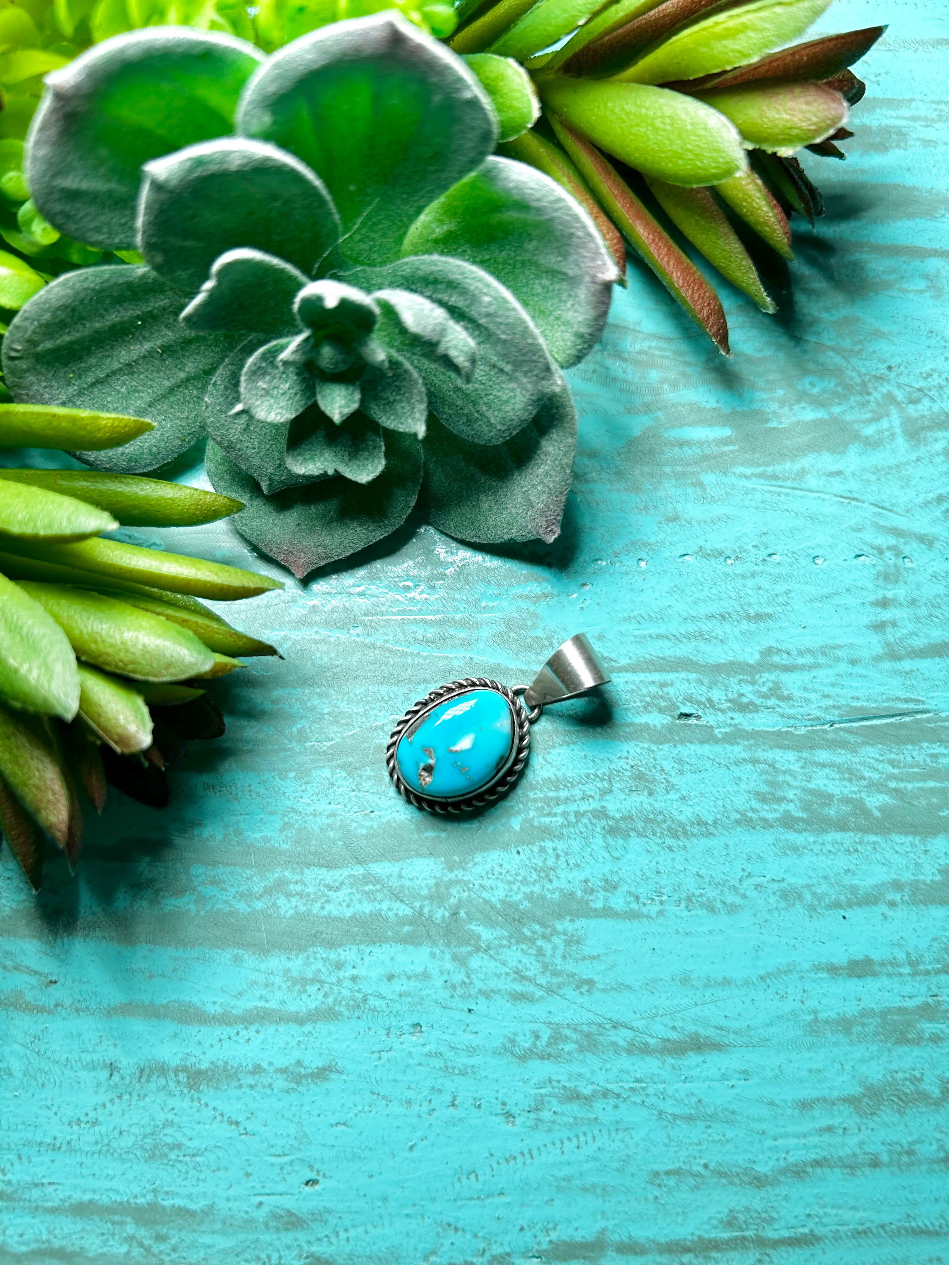 Navajo Made Kingman Turquoise & Sterling Silver  Pendant. It measures 1 inch long and 1/2 of an inch wide. Pendant Only. Stamped and signed.