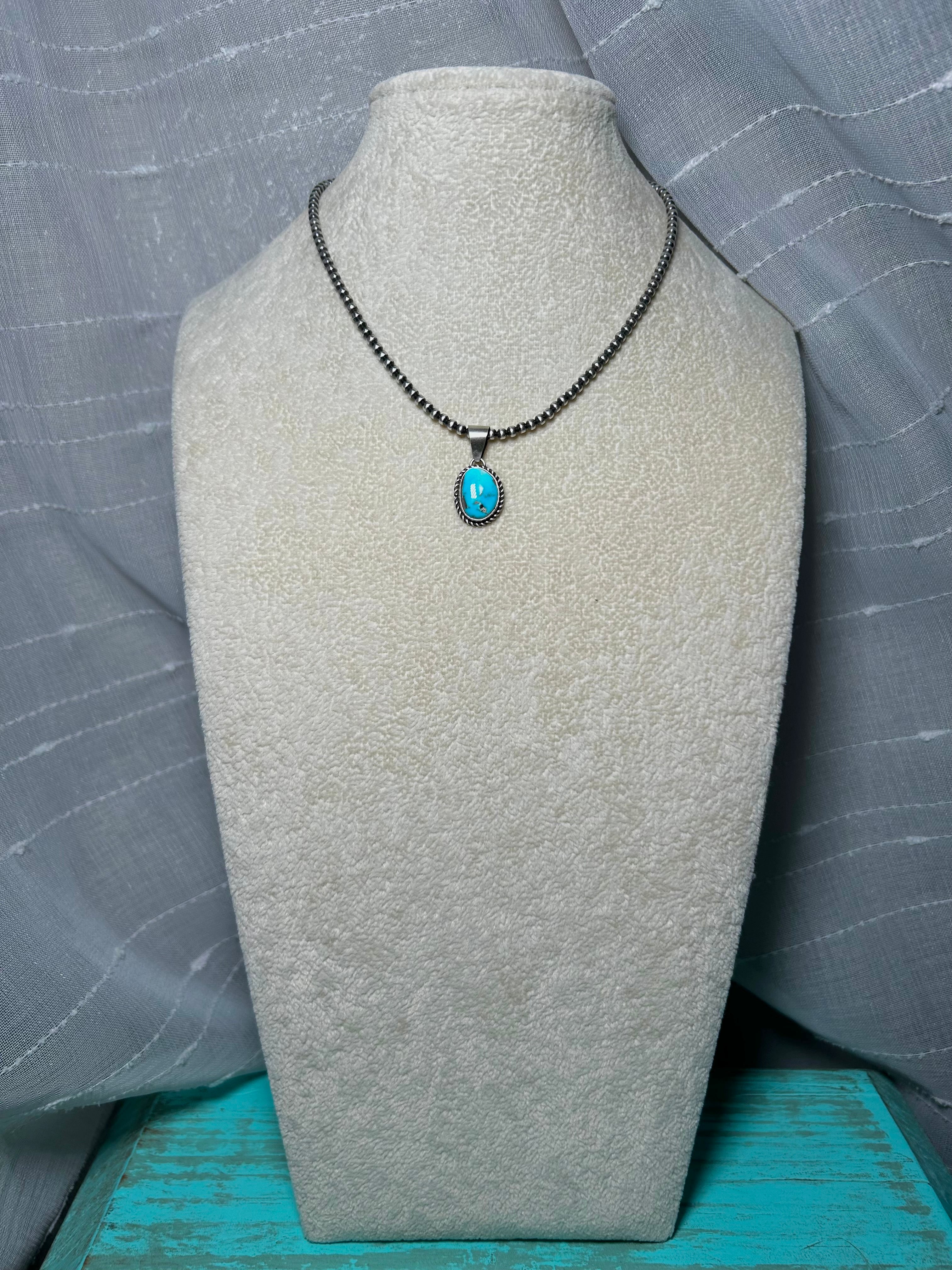 Navajo Made Kingman Turquoise & Sterling Silver Pendant