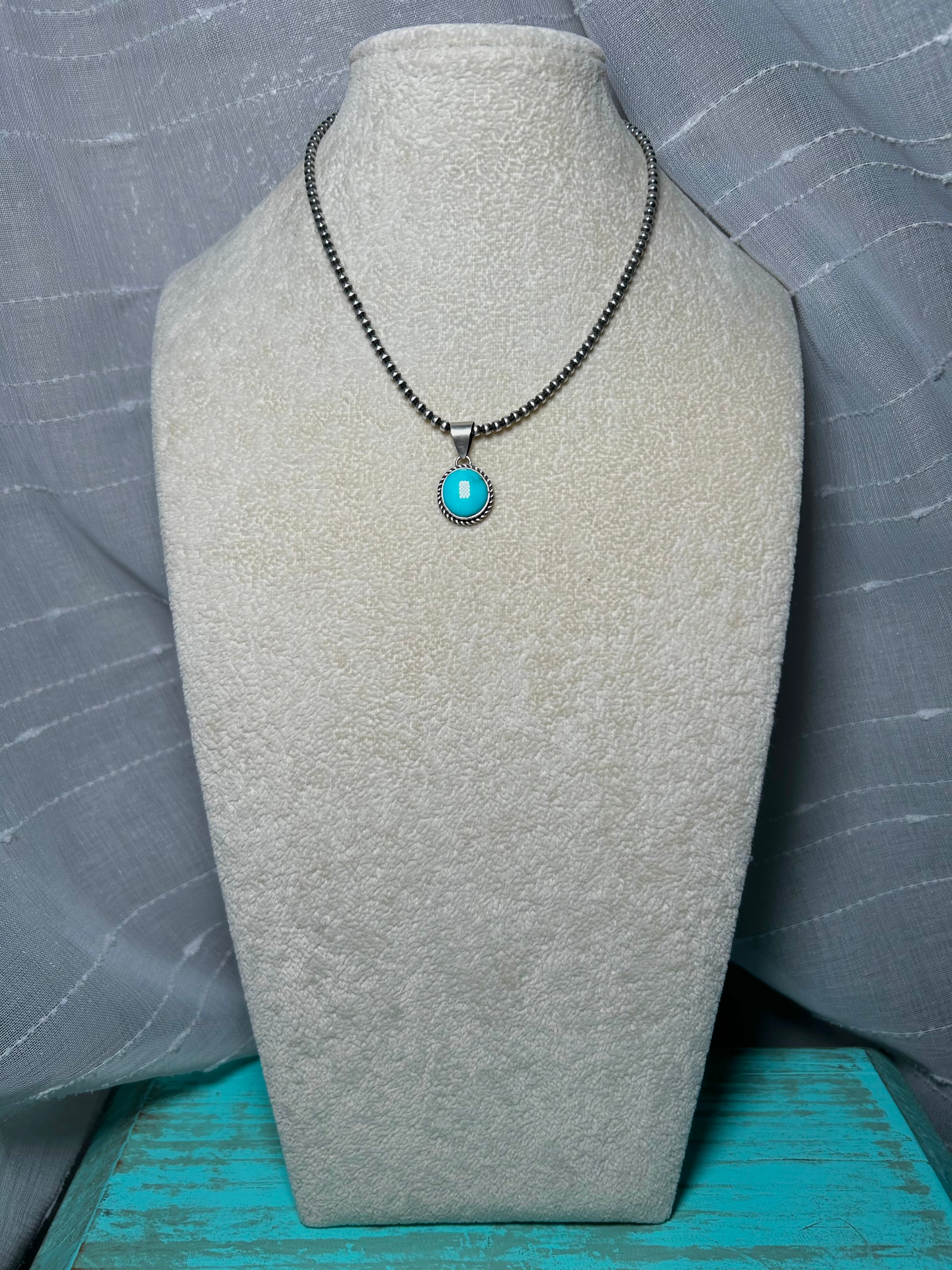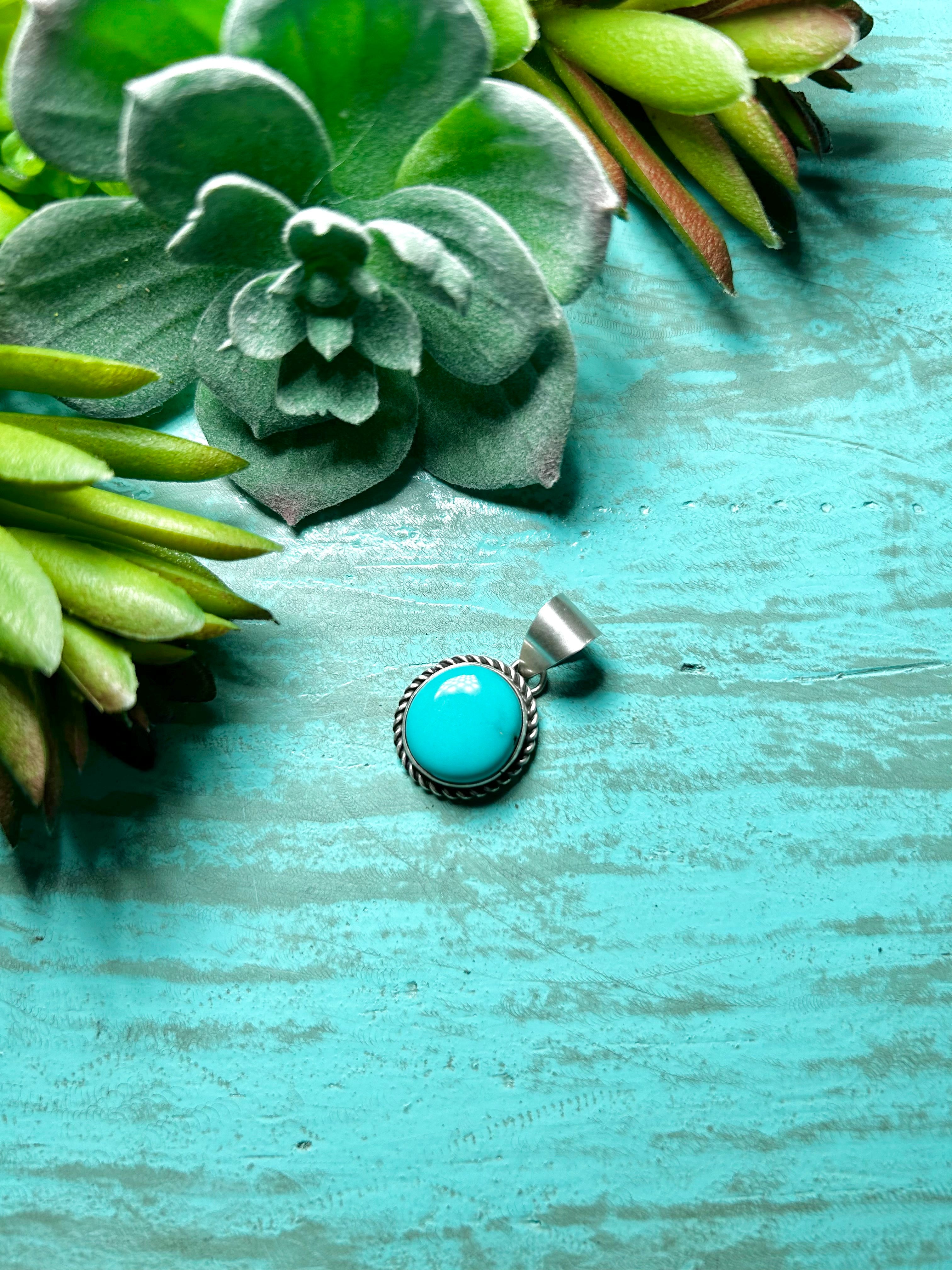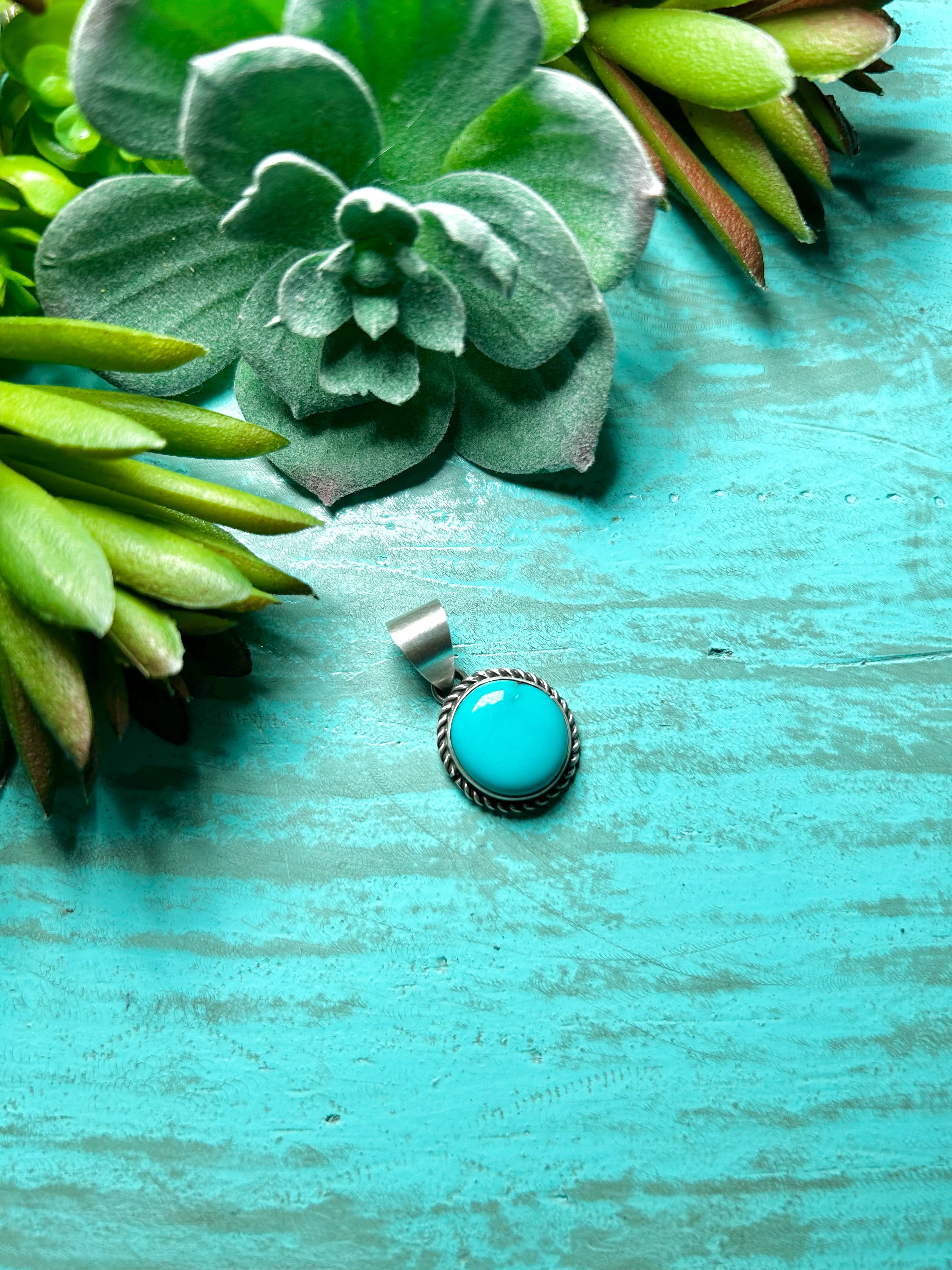 Navajo Made Kingman Turquoise & Sterling Silver Pendant