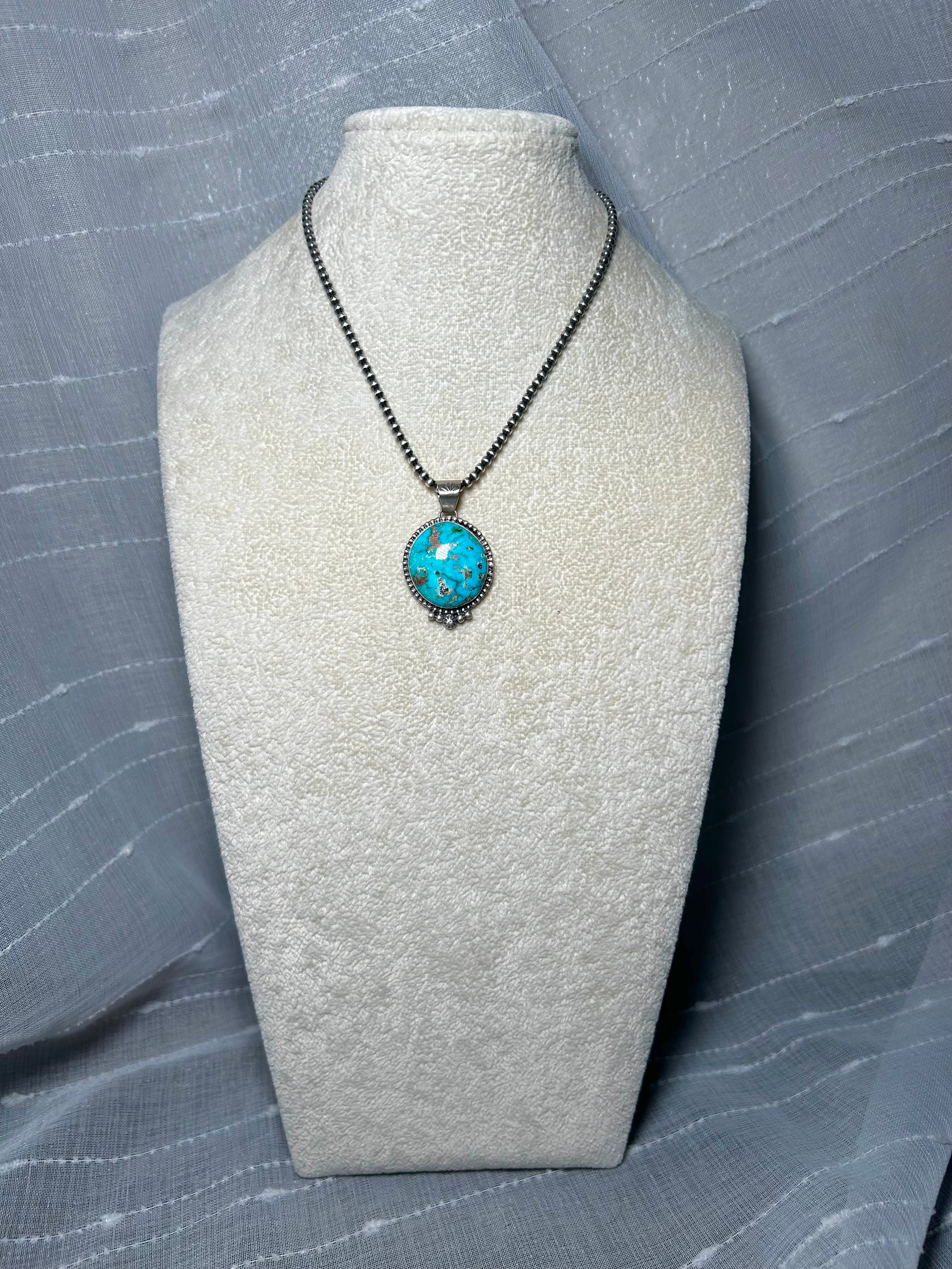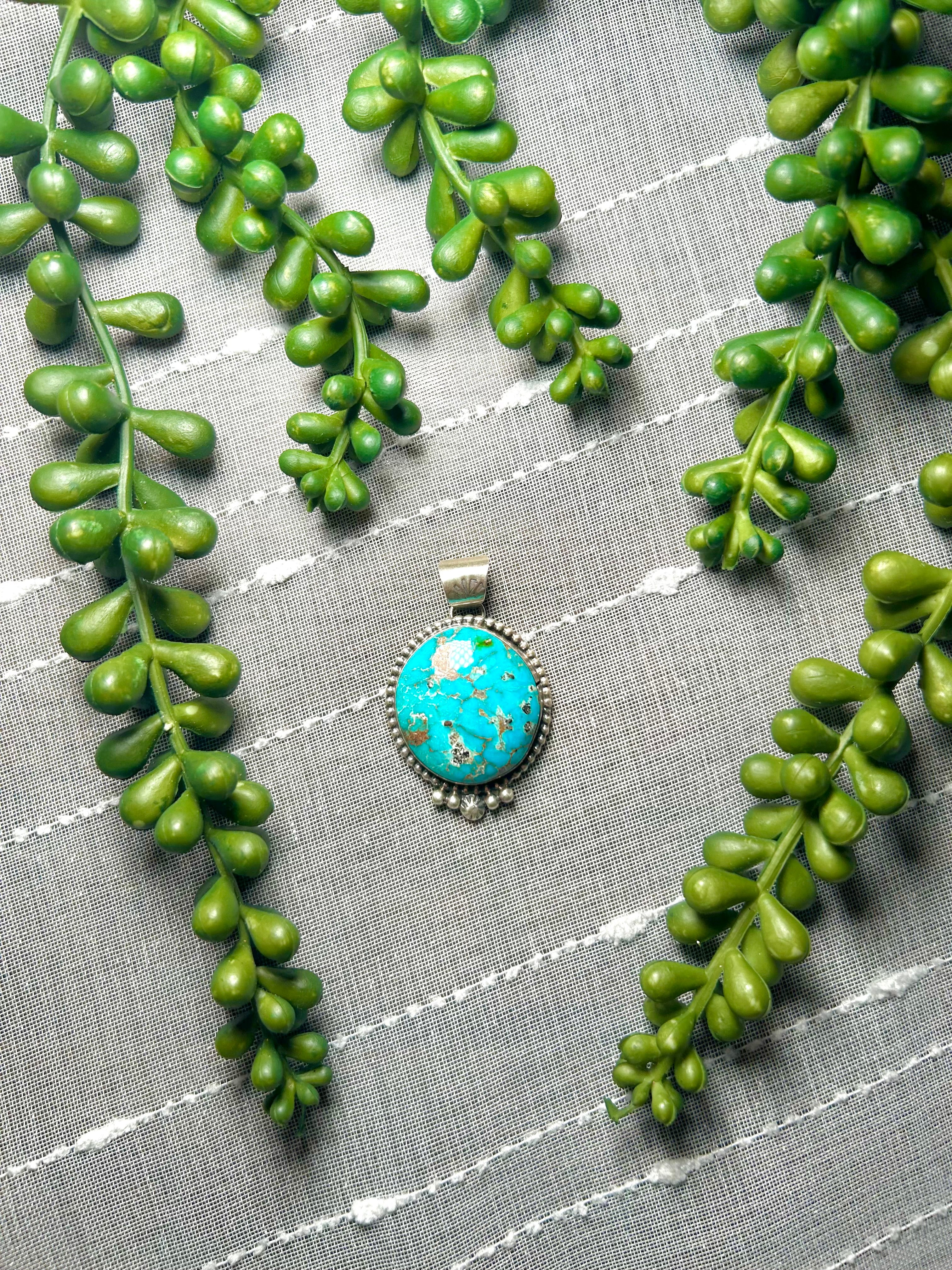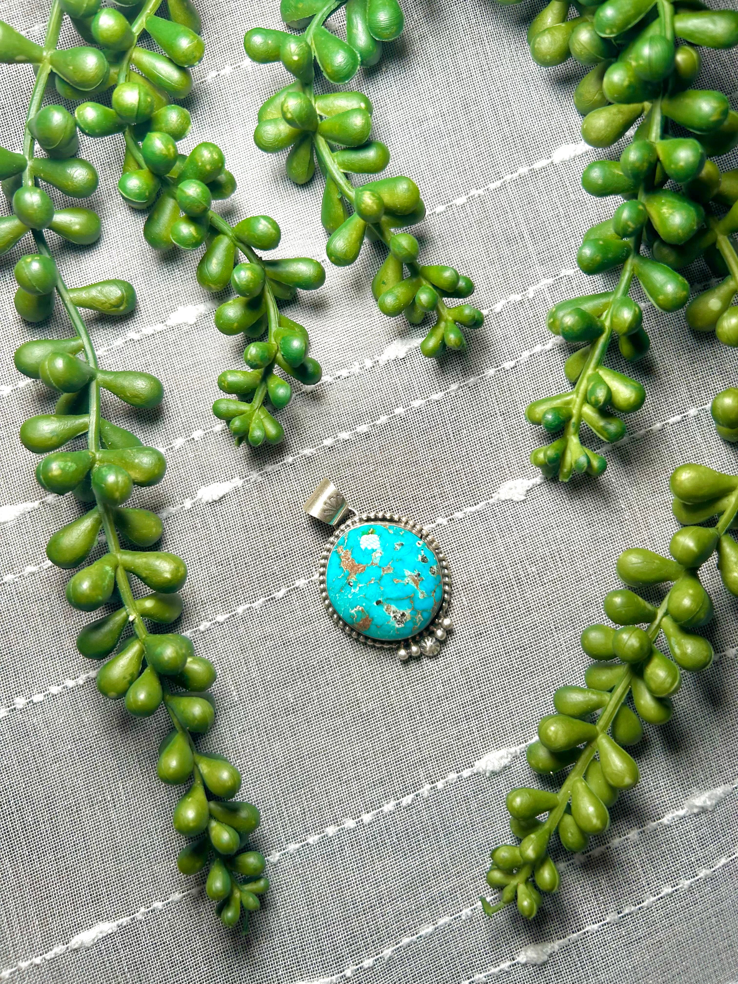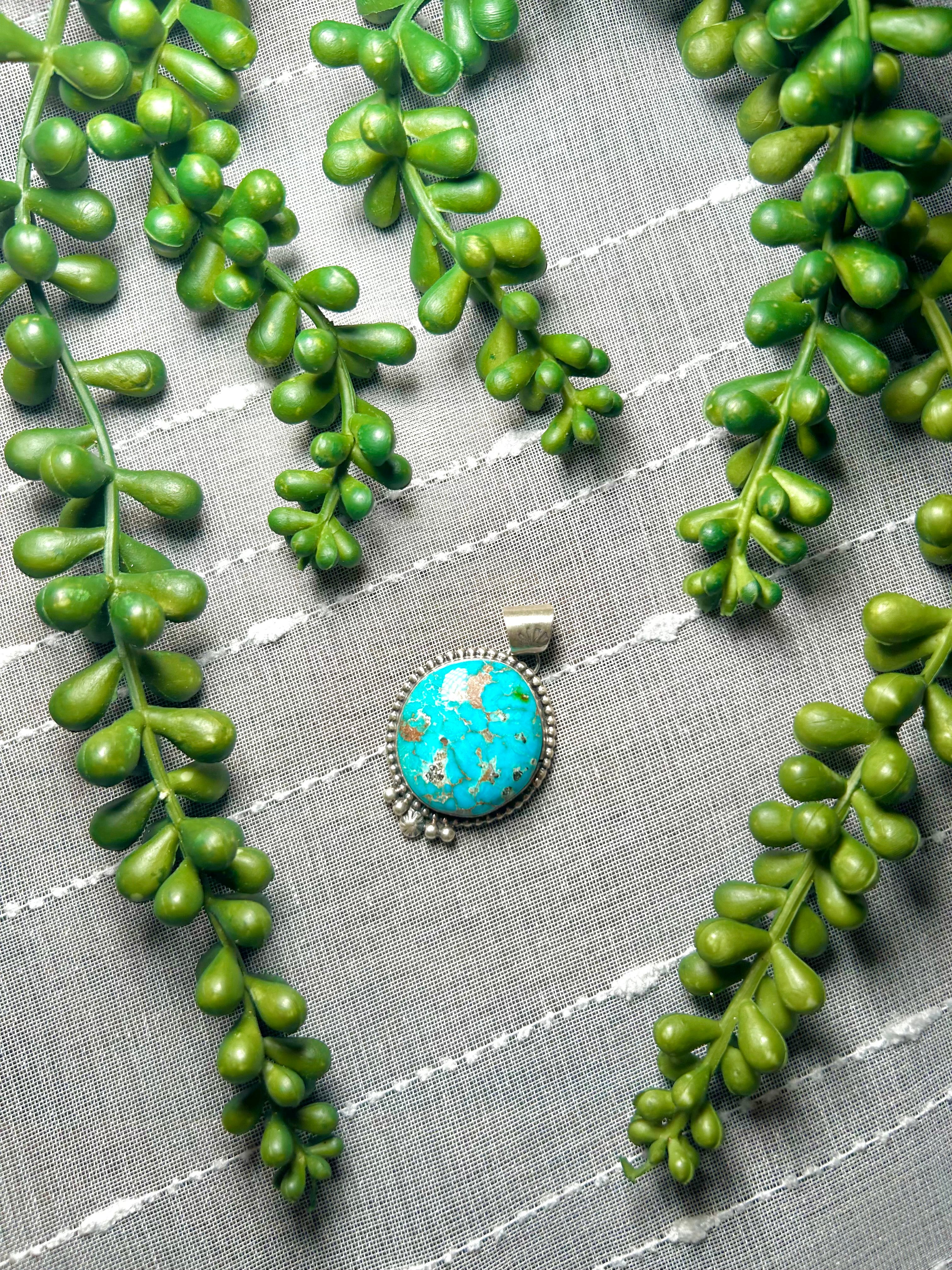 Navajo Made Sonoran Mountain Turquoise & Sterling Silver Pendant