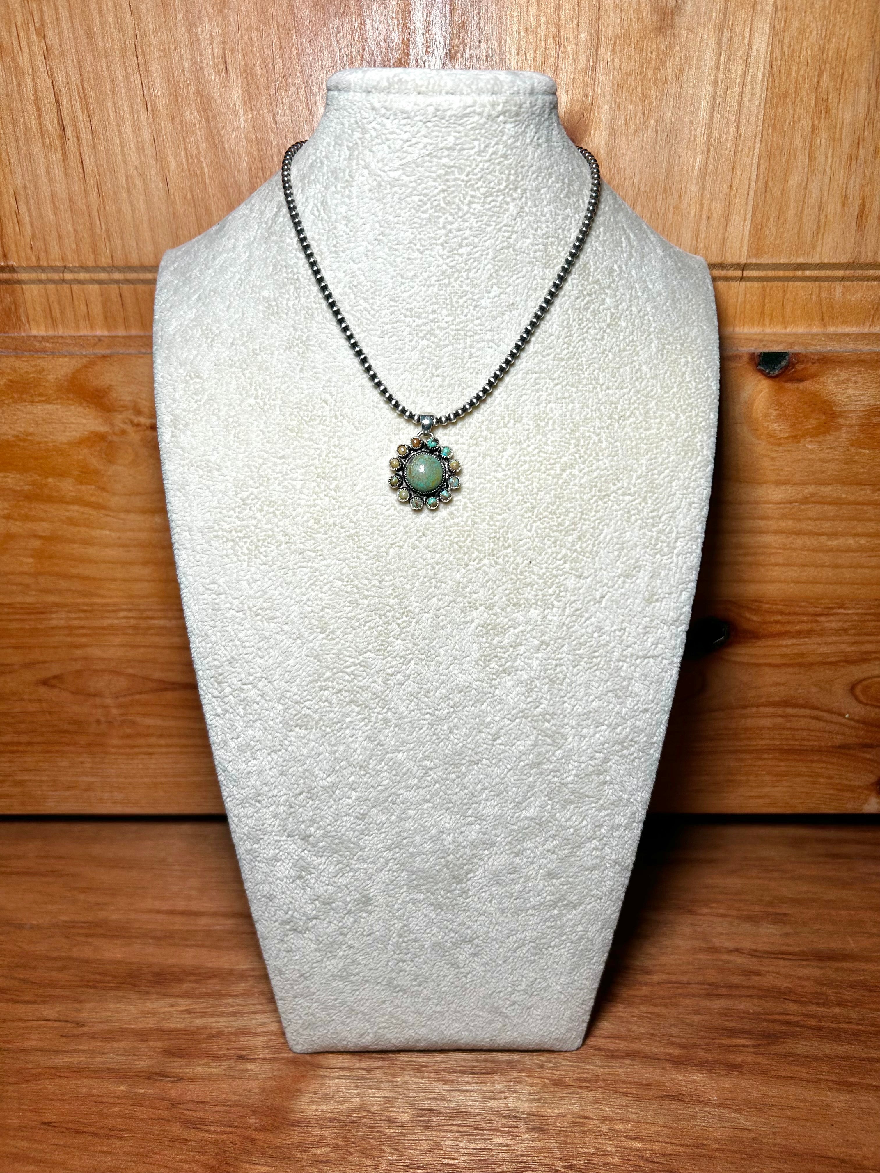Navajo Made Kingman Turquoise & Sterling Silver Pendant