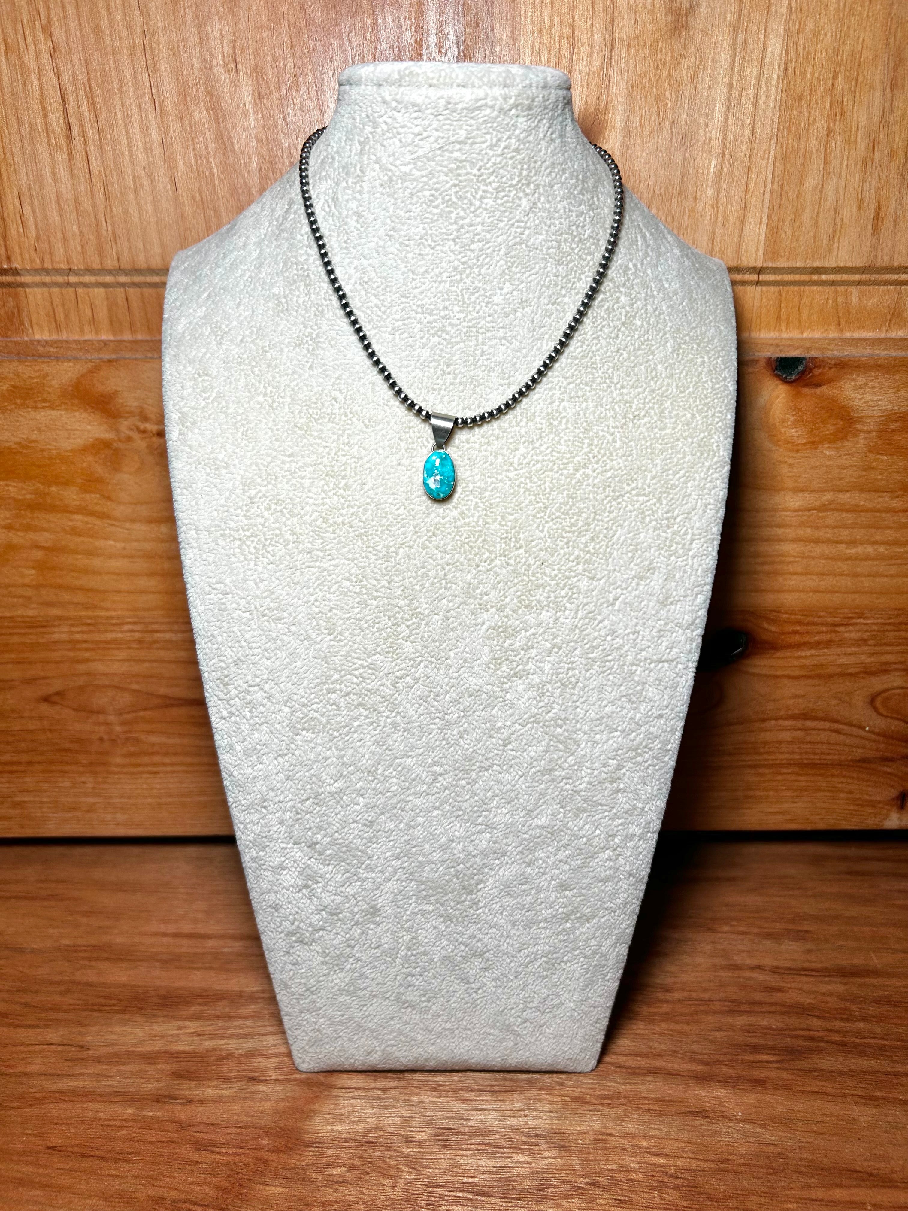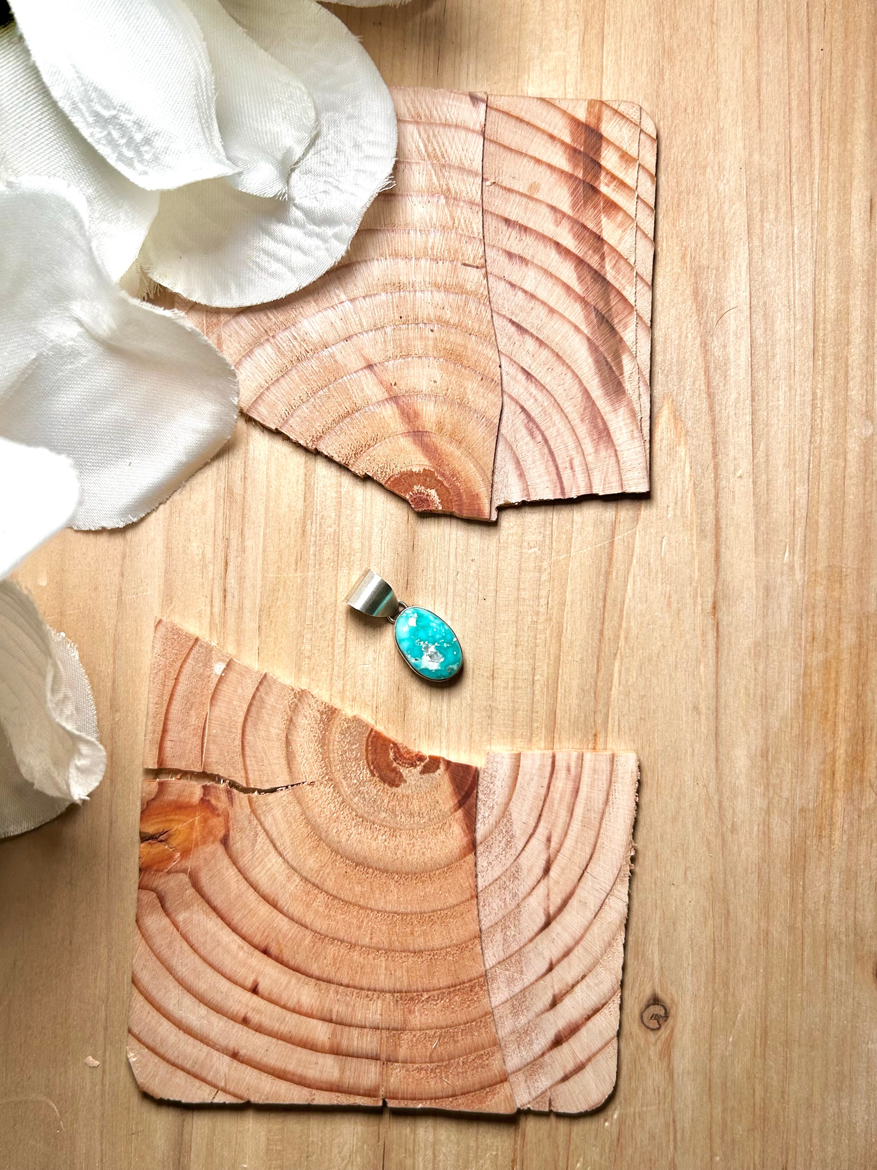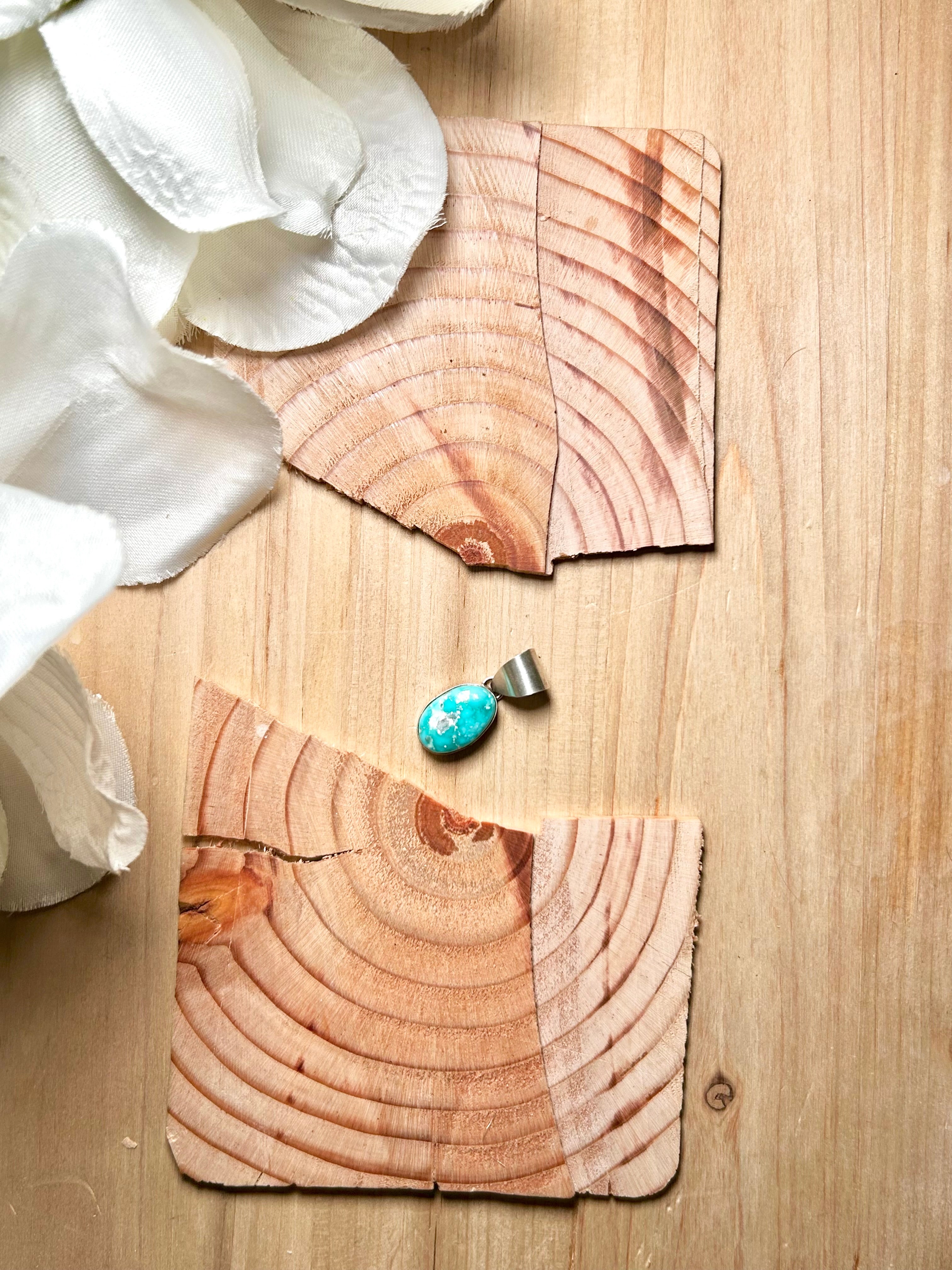 Navajo Made White Water Turquoise & Sterling Silver Pendant. It measures 1 inch long and 3/8 of an inch wide. Pendant Only! Signed by the artist and stamped sterling silver.