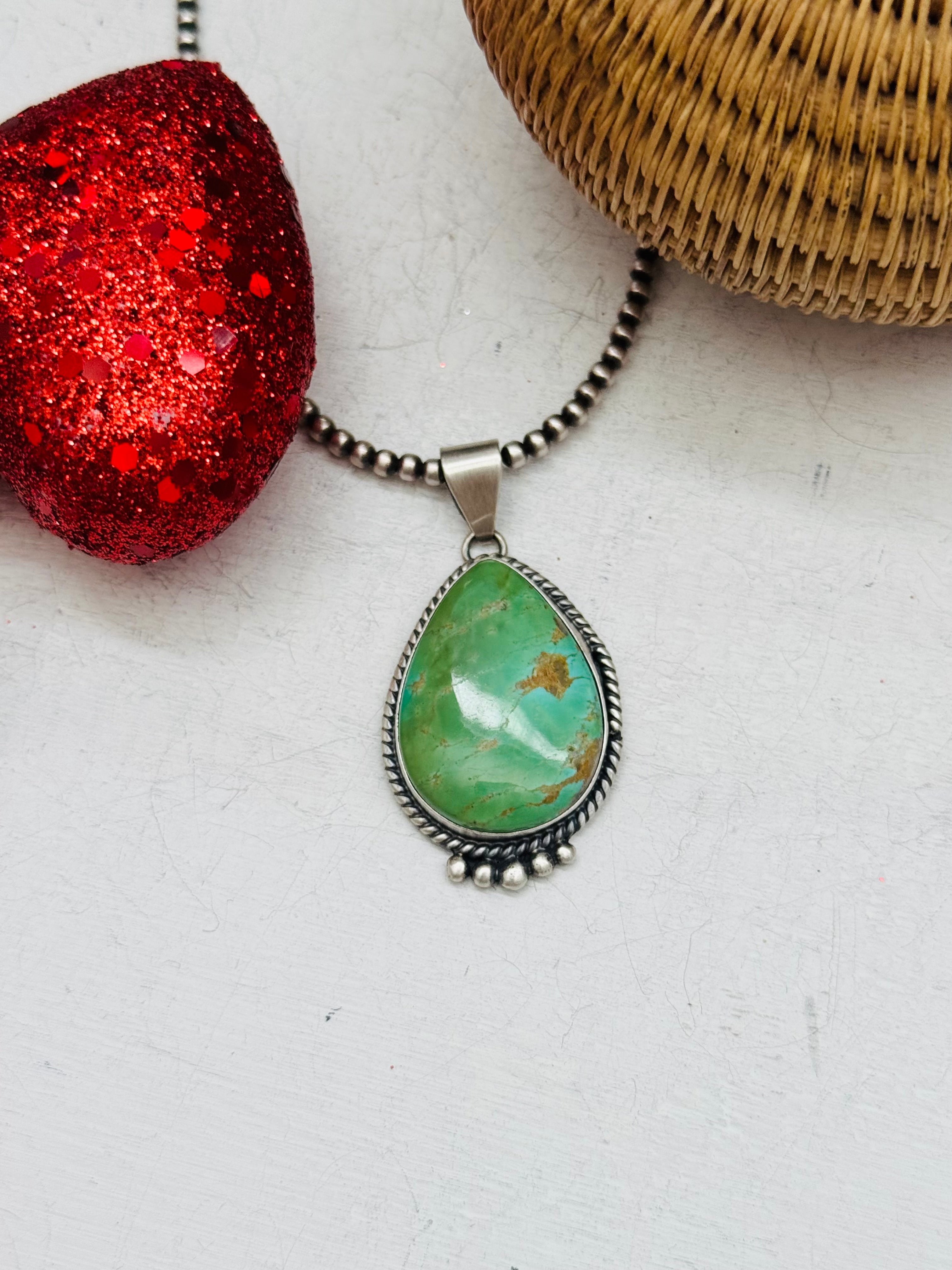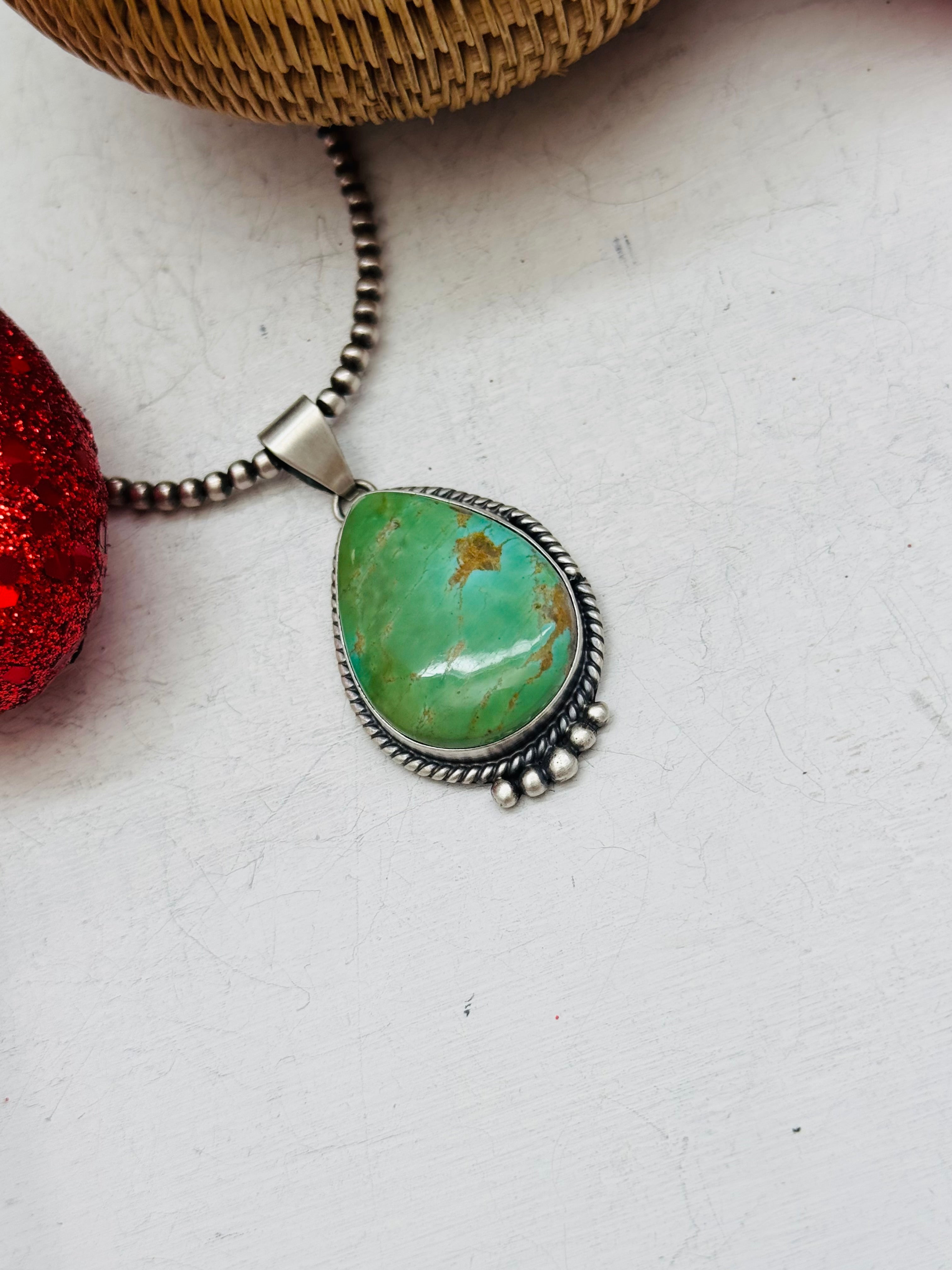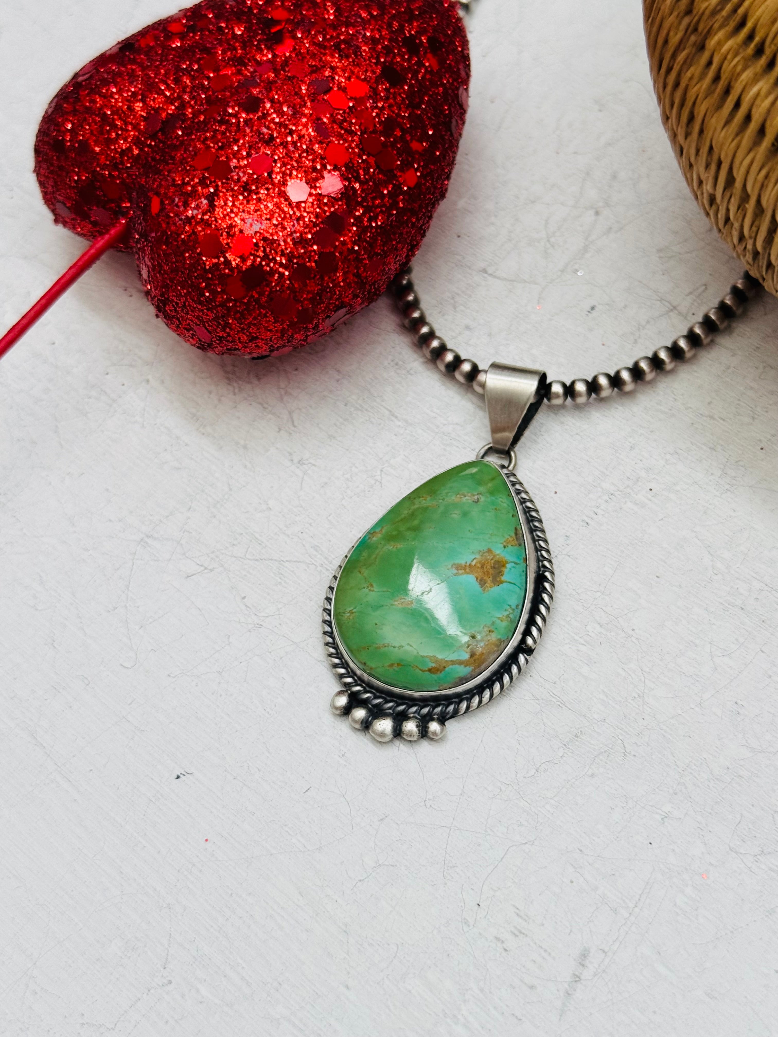Judith Dixon Kingman Turquoise & Sterling Silver Pendant. PENDANT ONLY. It measures 2 inches long and 1 inch wide. Signed by the artist and stamped sterling silver.