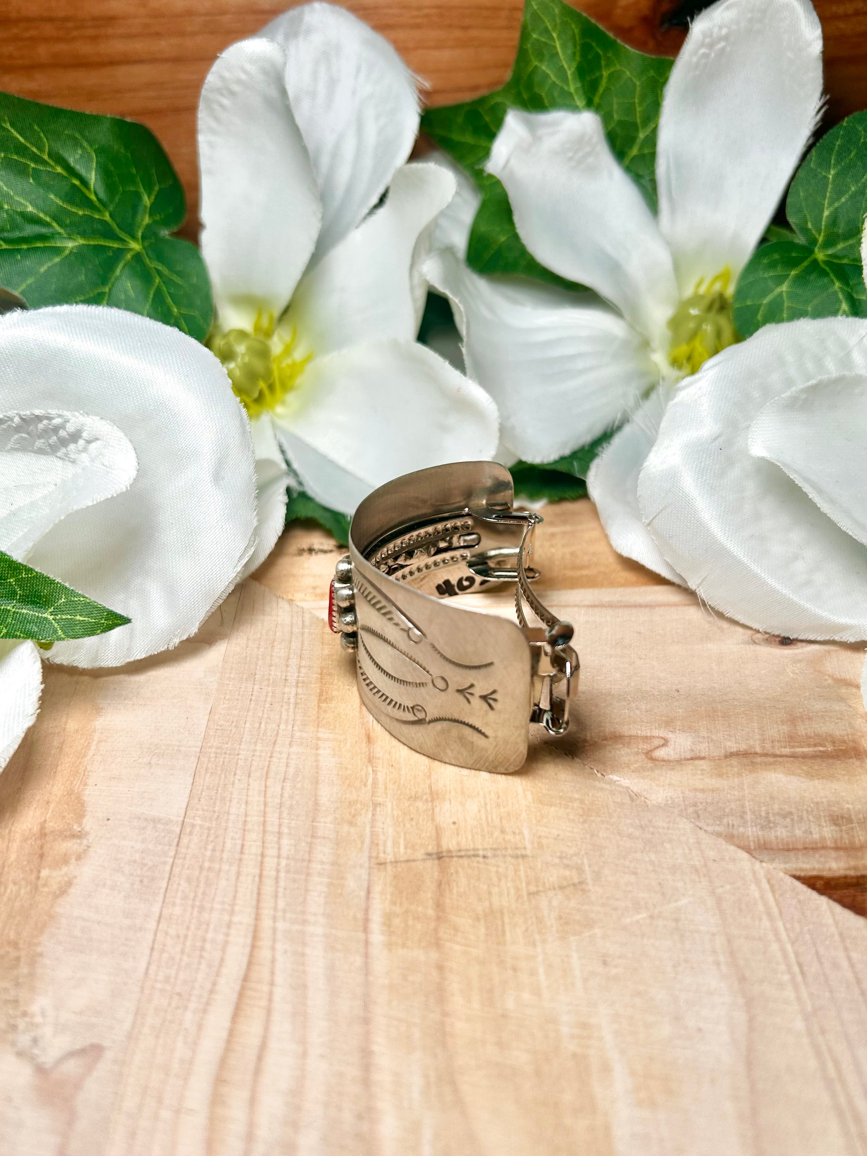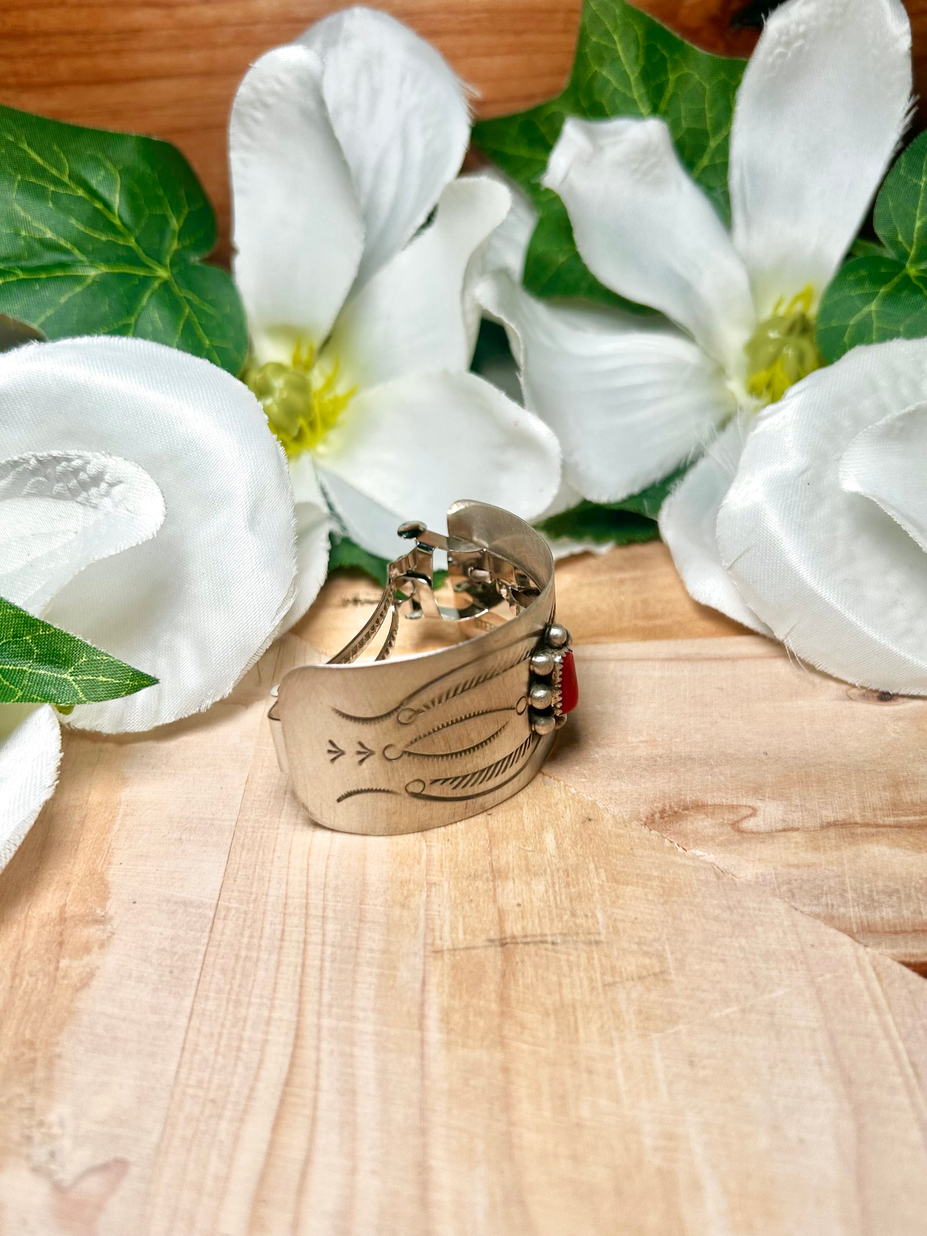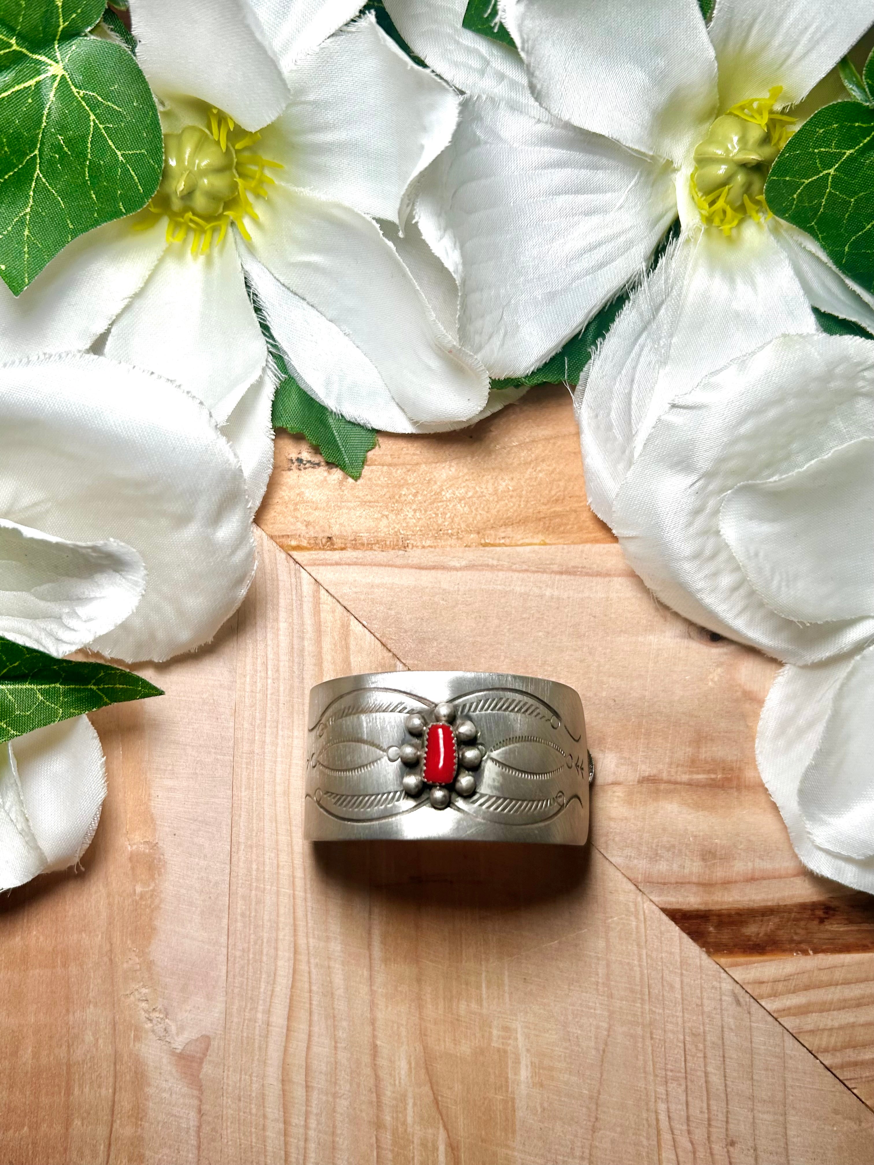 Navajo Made Coral & Sterling Silver Ponytail Holder