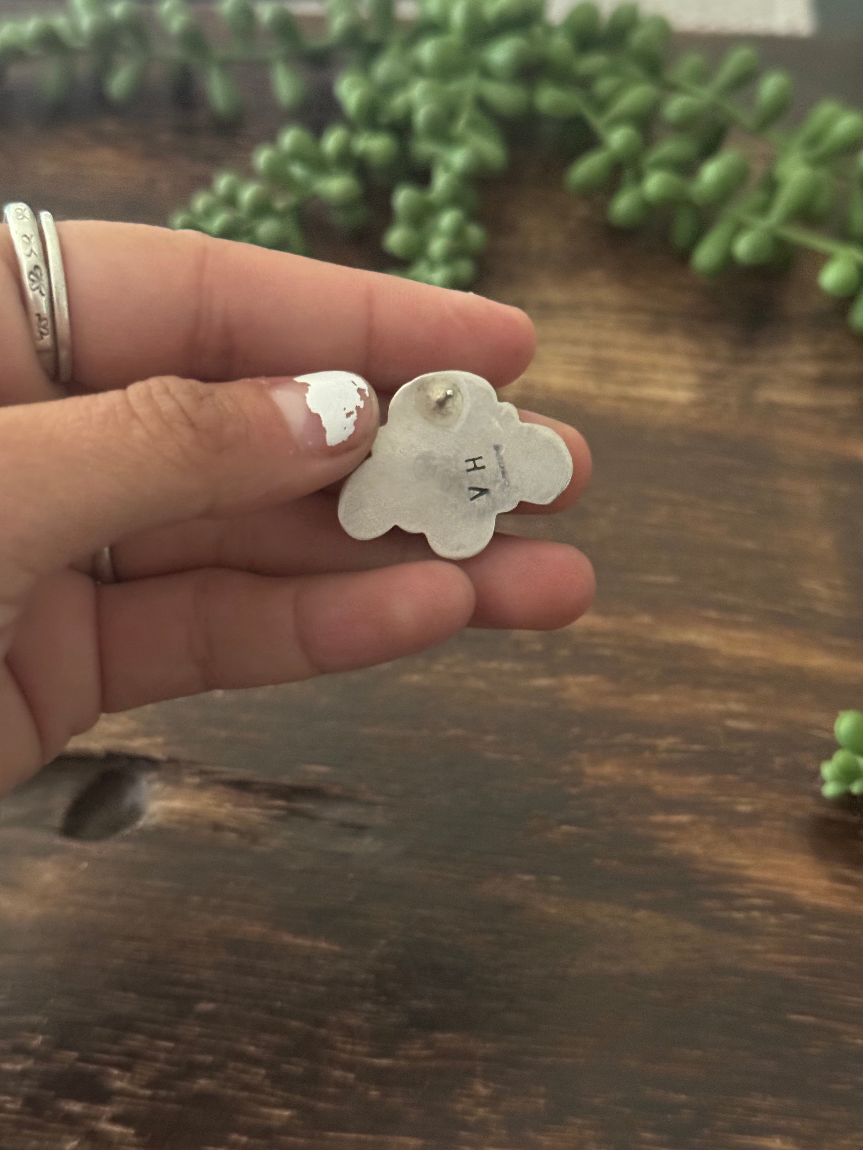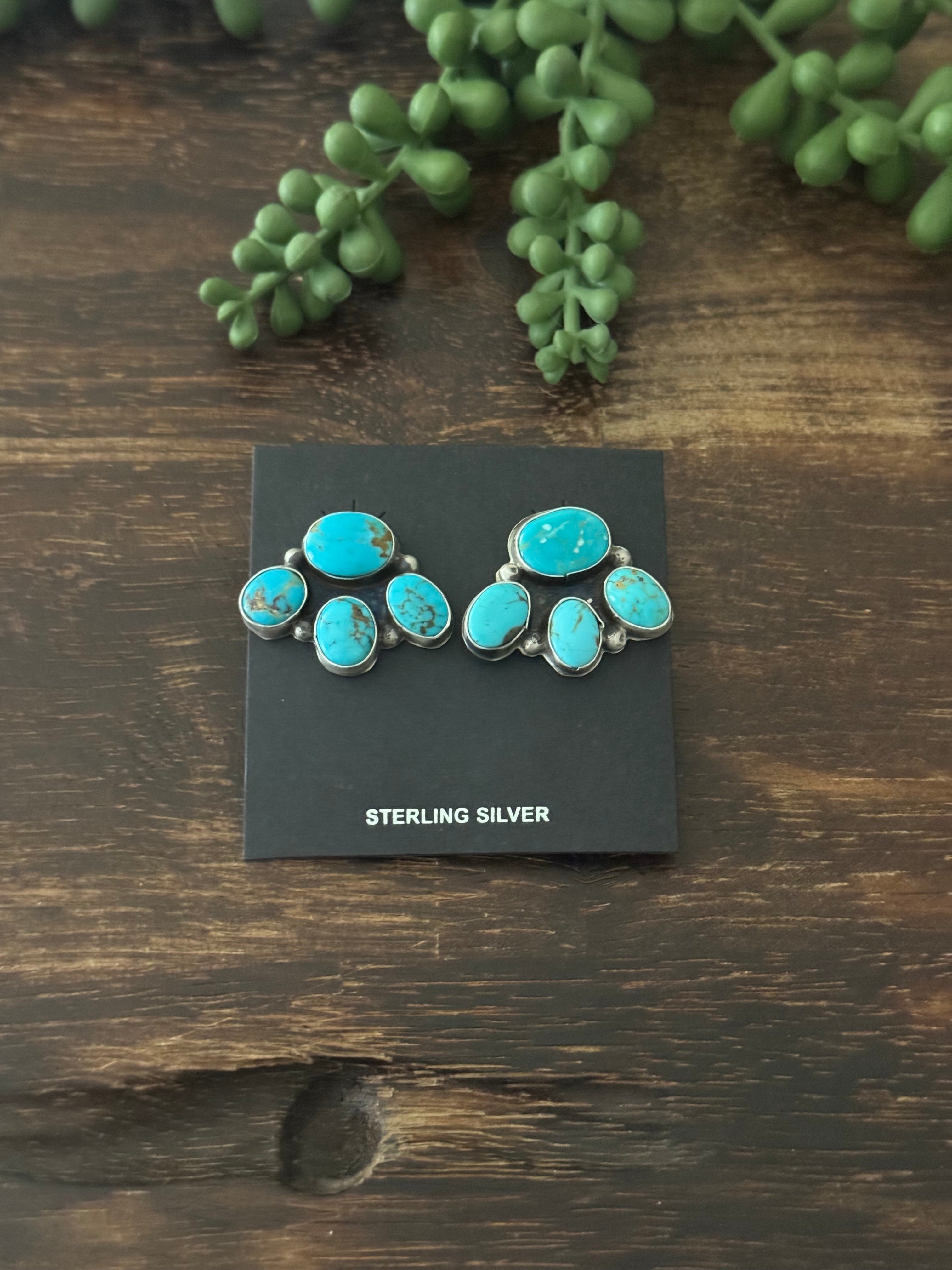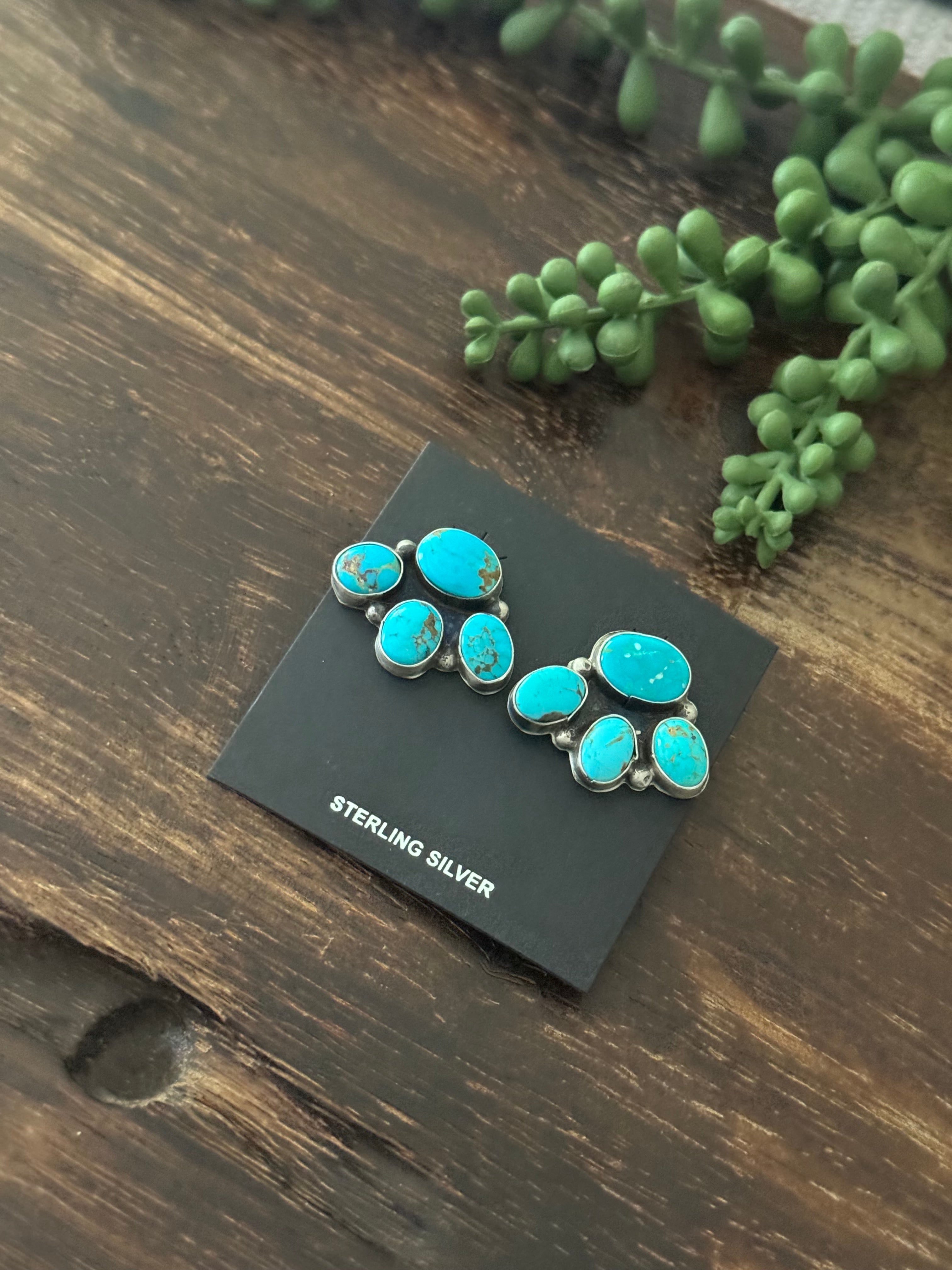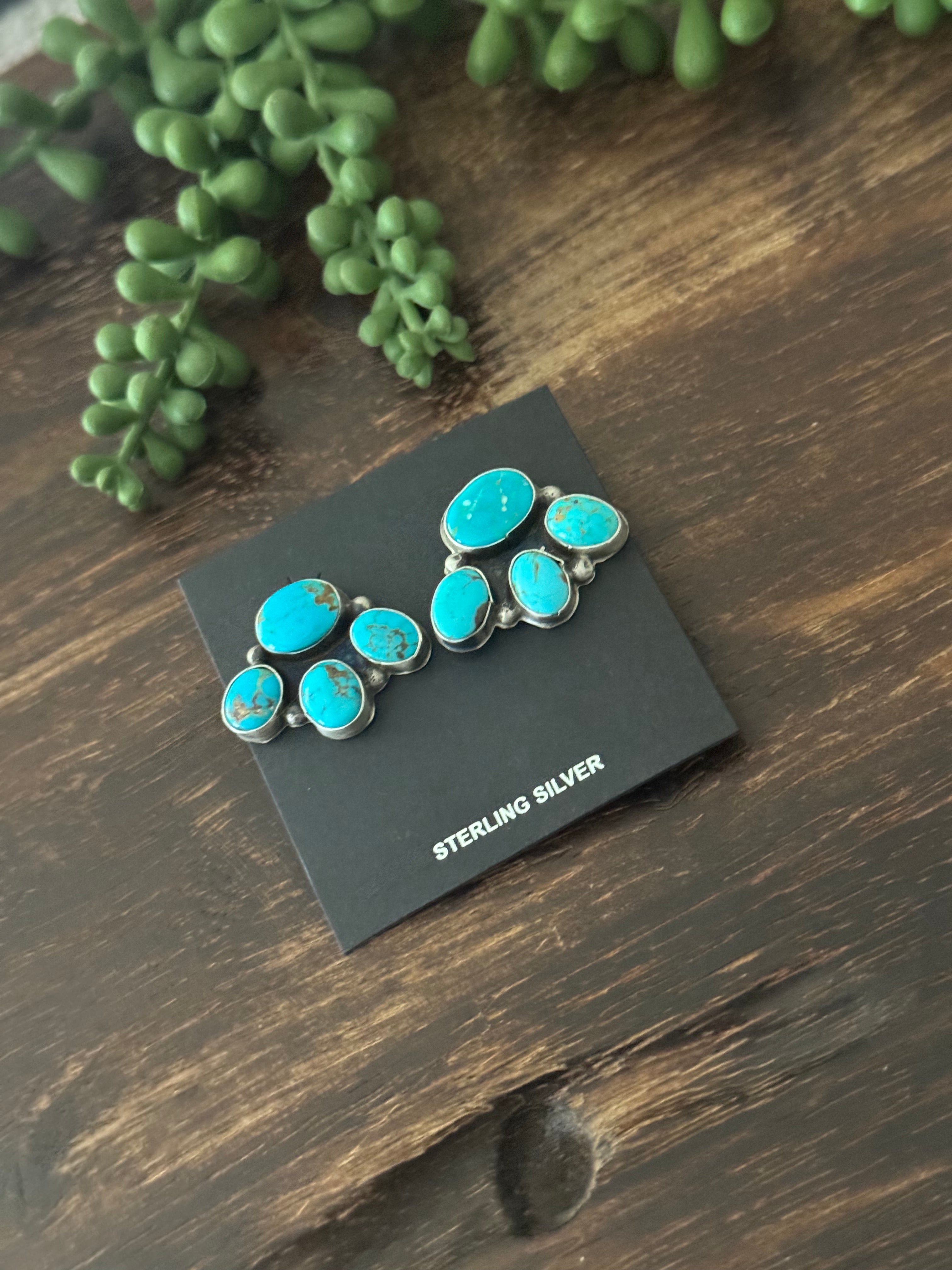Navajo Made Kingman Turquoise & Sterling Silver Post Dangle Cluster Earrings