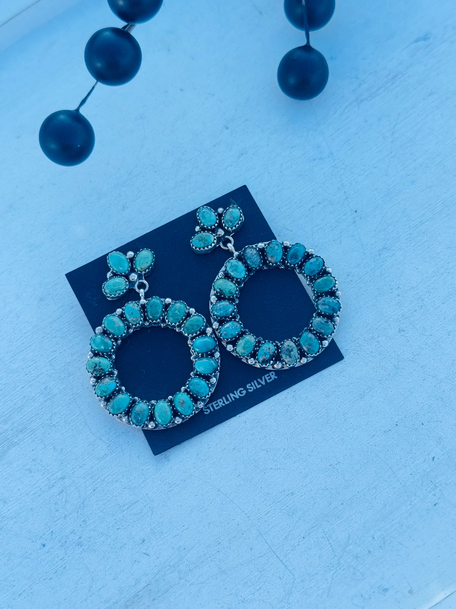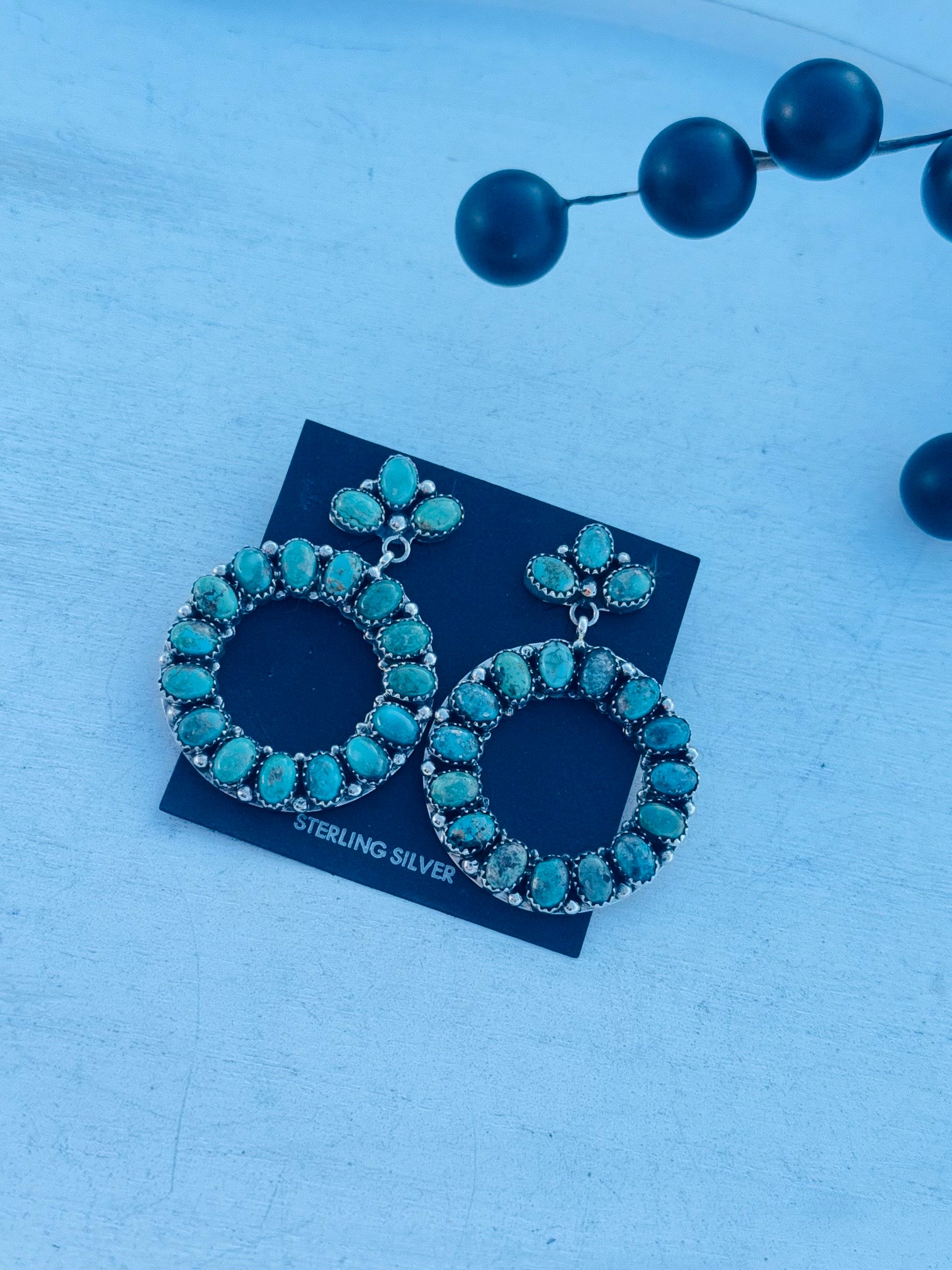 Navajo Made Kingman Turquoise & Sterling Silver Post Dangle Cluster Earrings