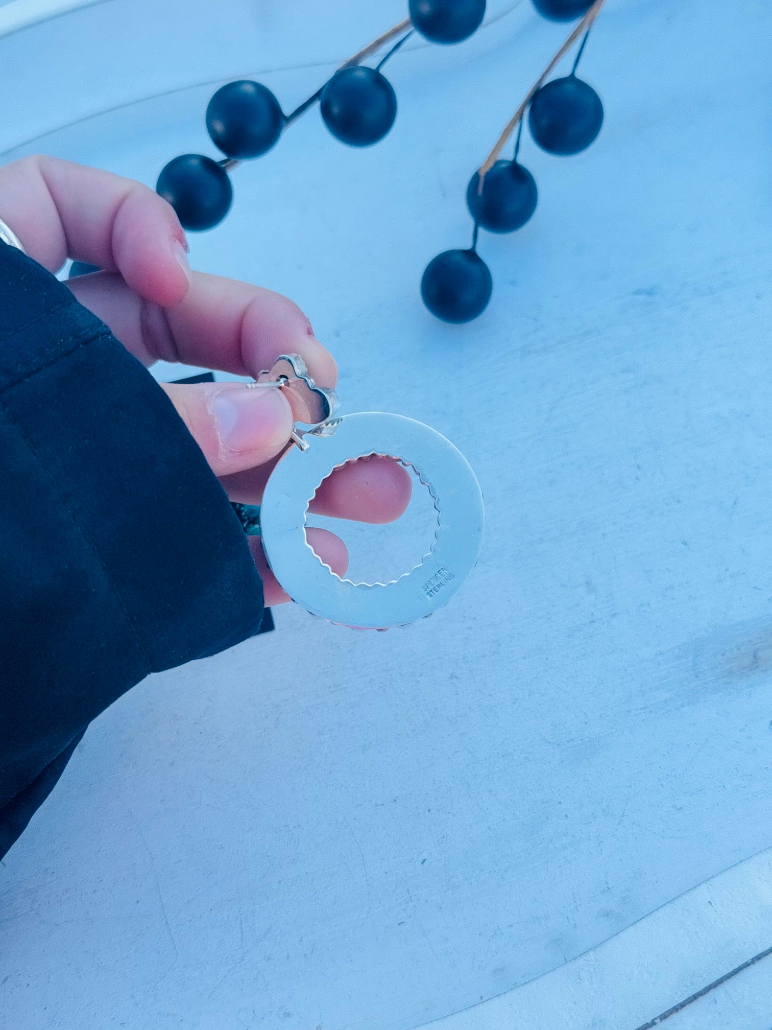 Navajo Made Kingman Turquoise & Sterling Silver Post Dangle Cluster Earrings. It measures 2 1/8 inches long and 1 1/2 inches wide. Stamped and signed. Stones will differ due to natural stones.