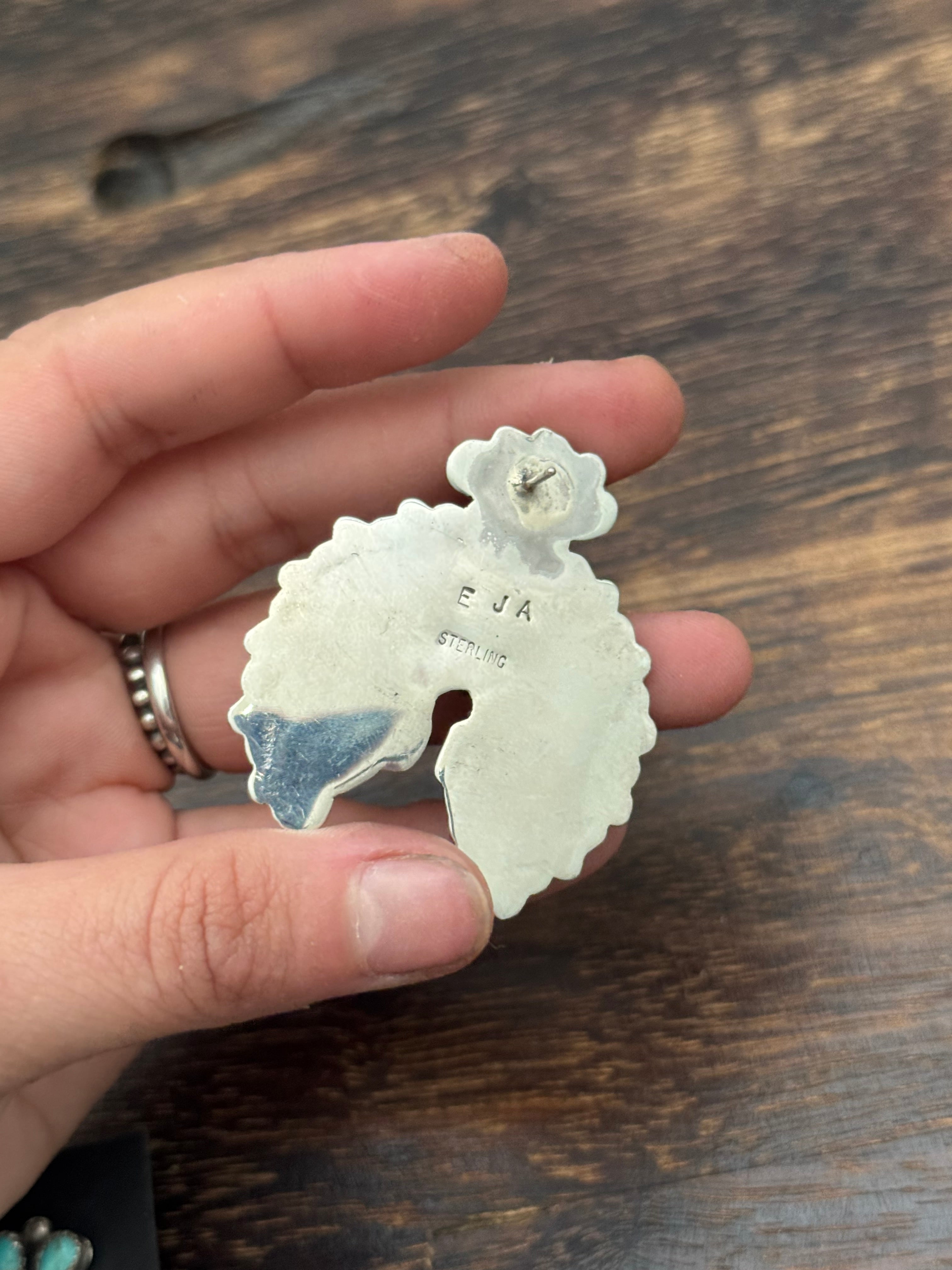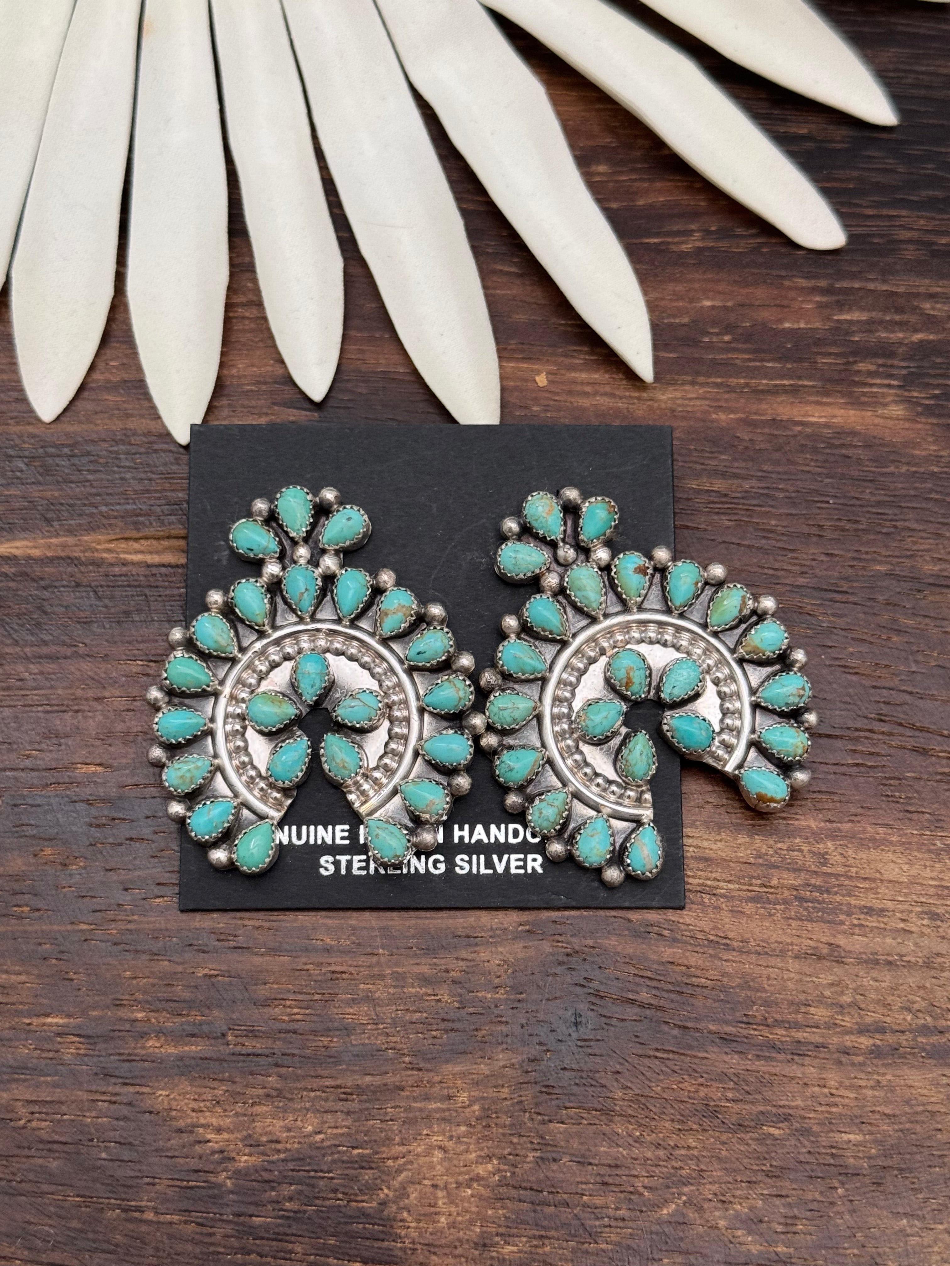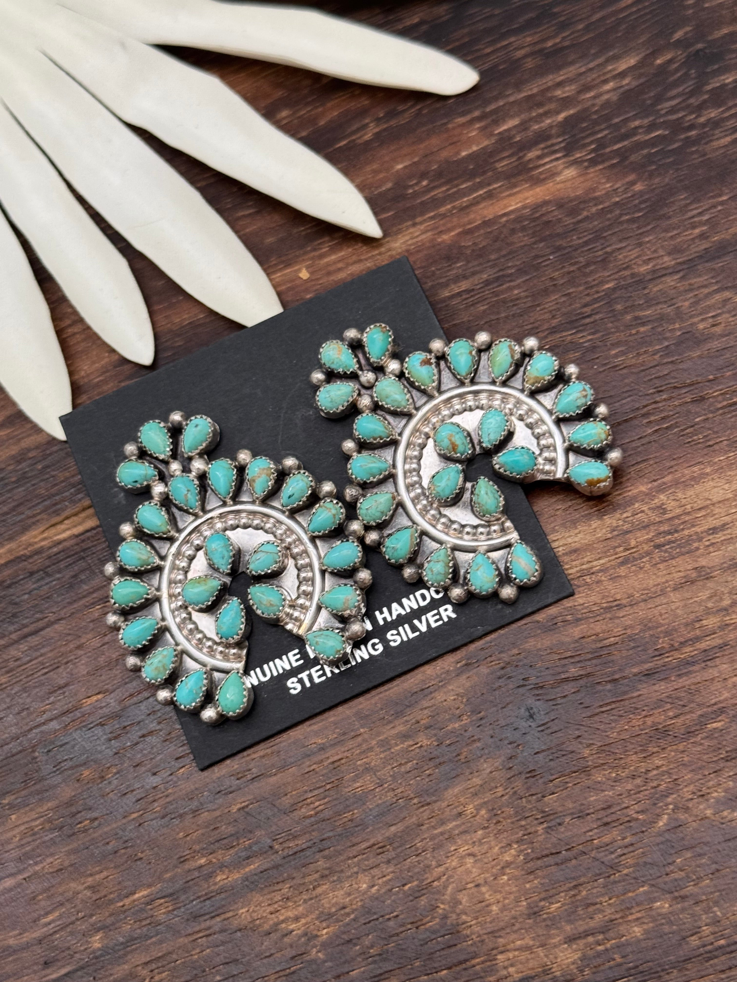 Navajo Made Kingman Turquoise & Sterling Silver Post Dangle Cluster Naja Earrings