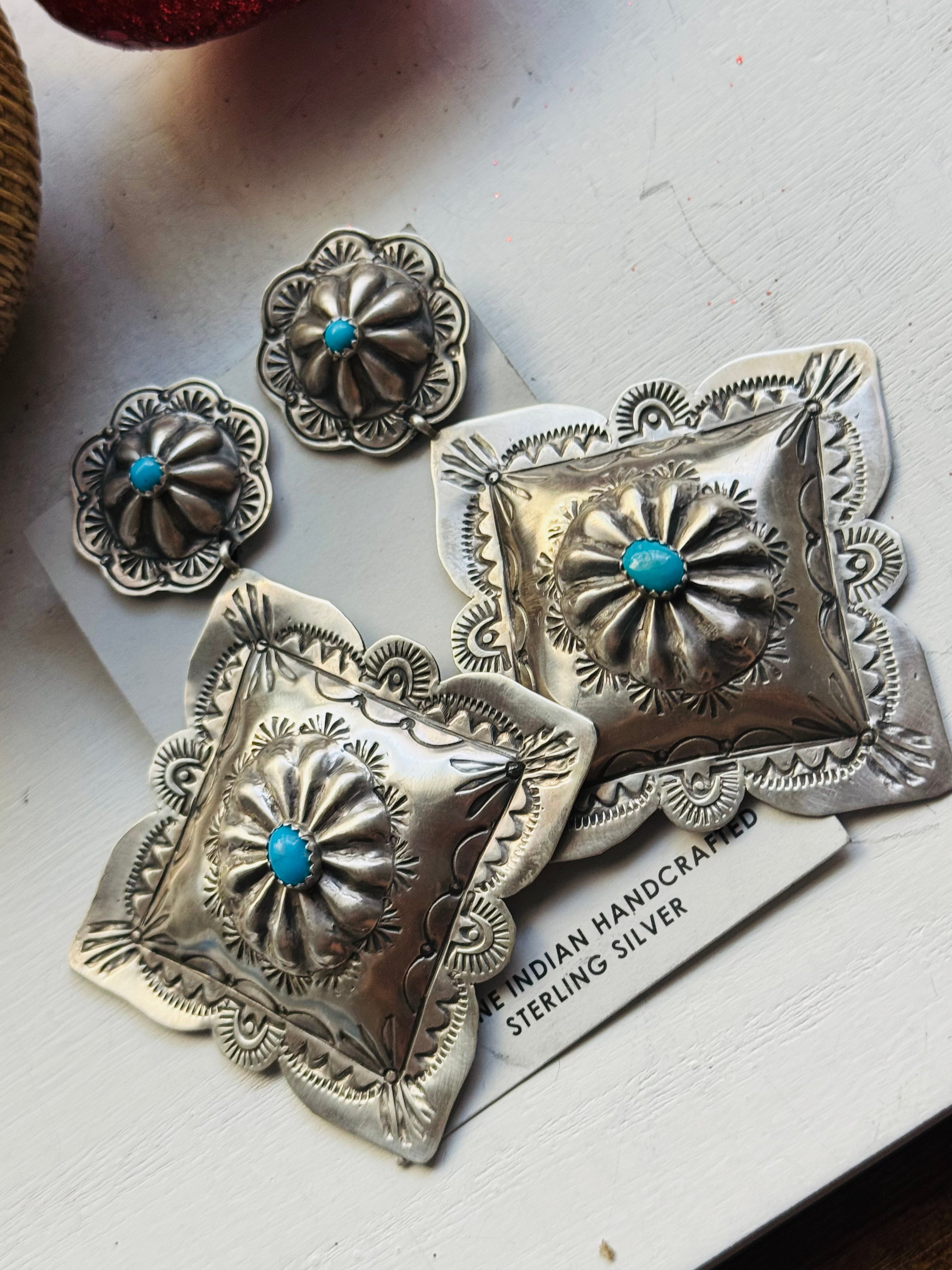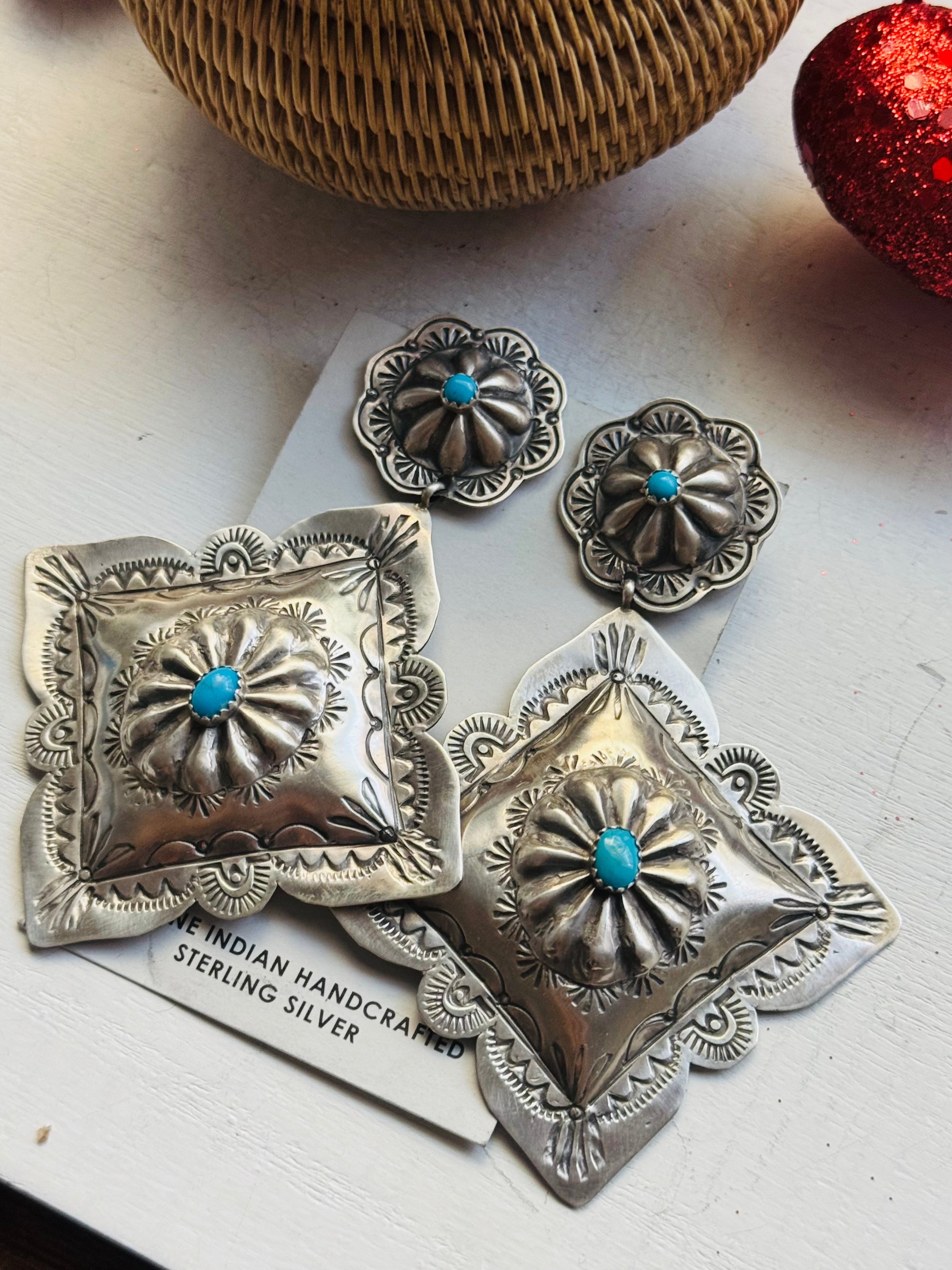 Rita Lee Kingman Turquoise & Sterling Silver Post Dangle Concho Earrings