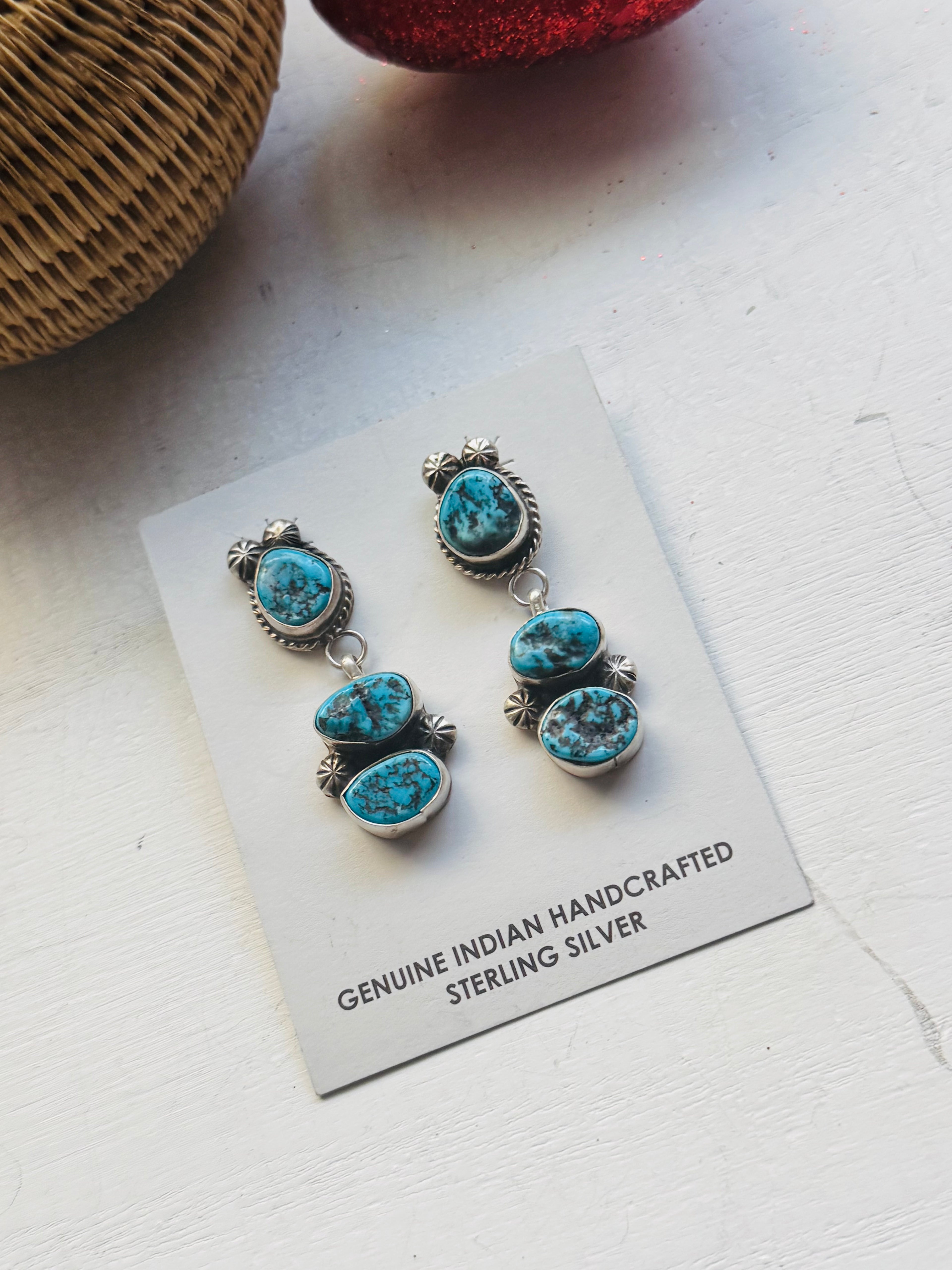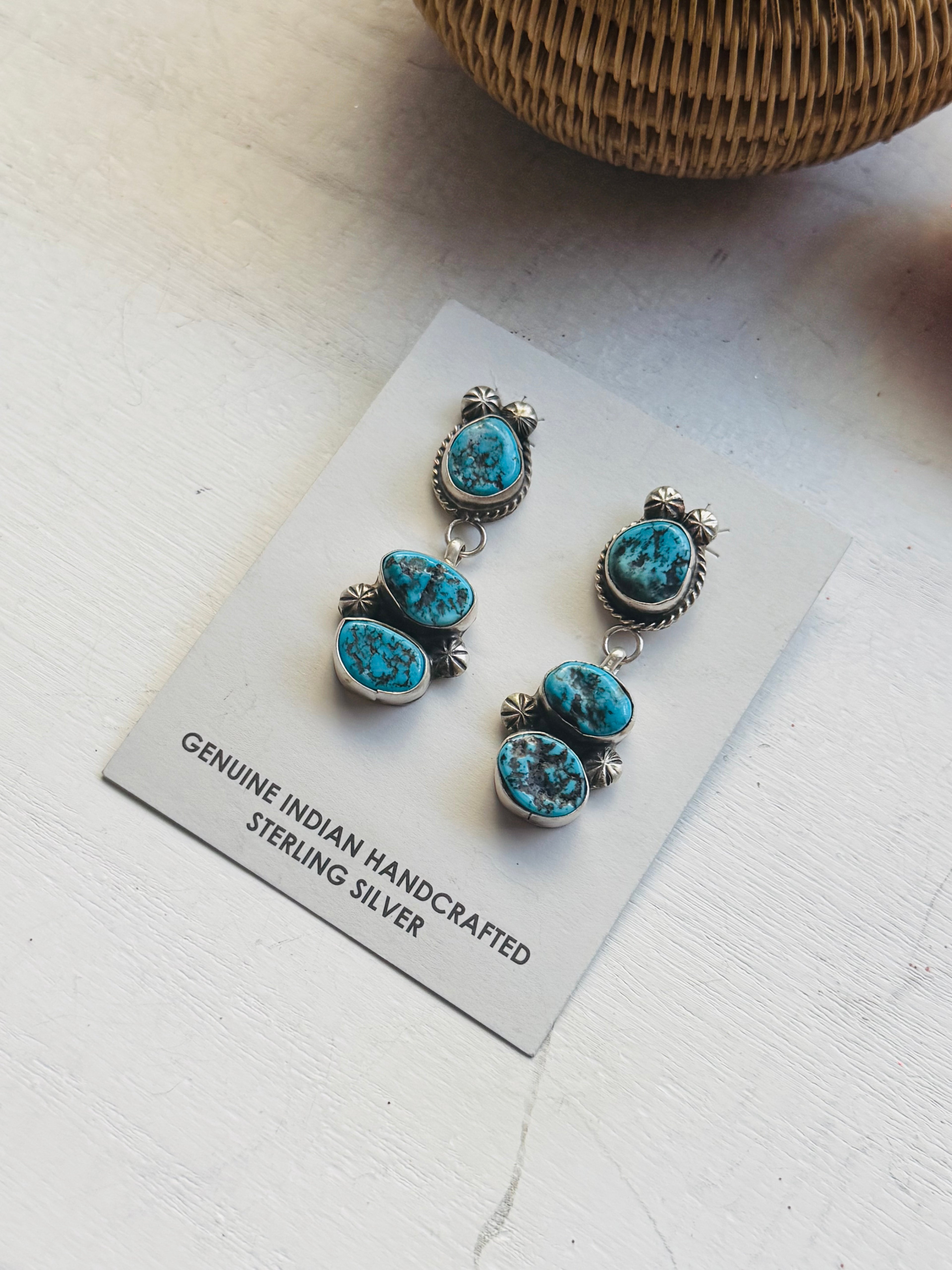 Donovan Nez Kingman Turquoise & Sterling Silver Post Dangle Earrings