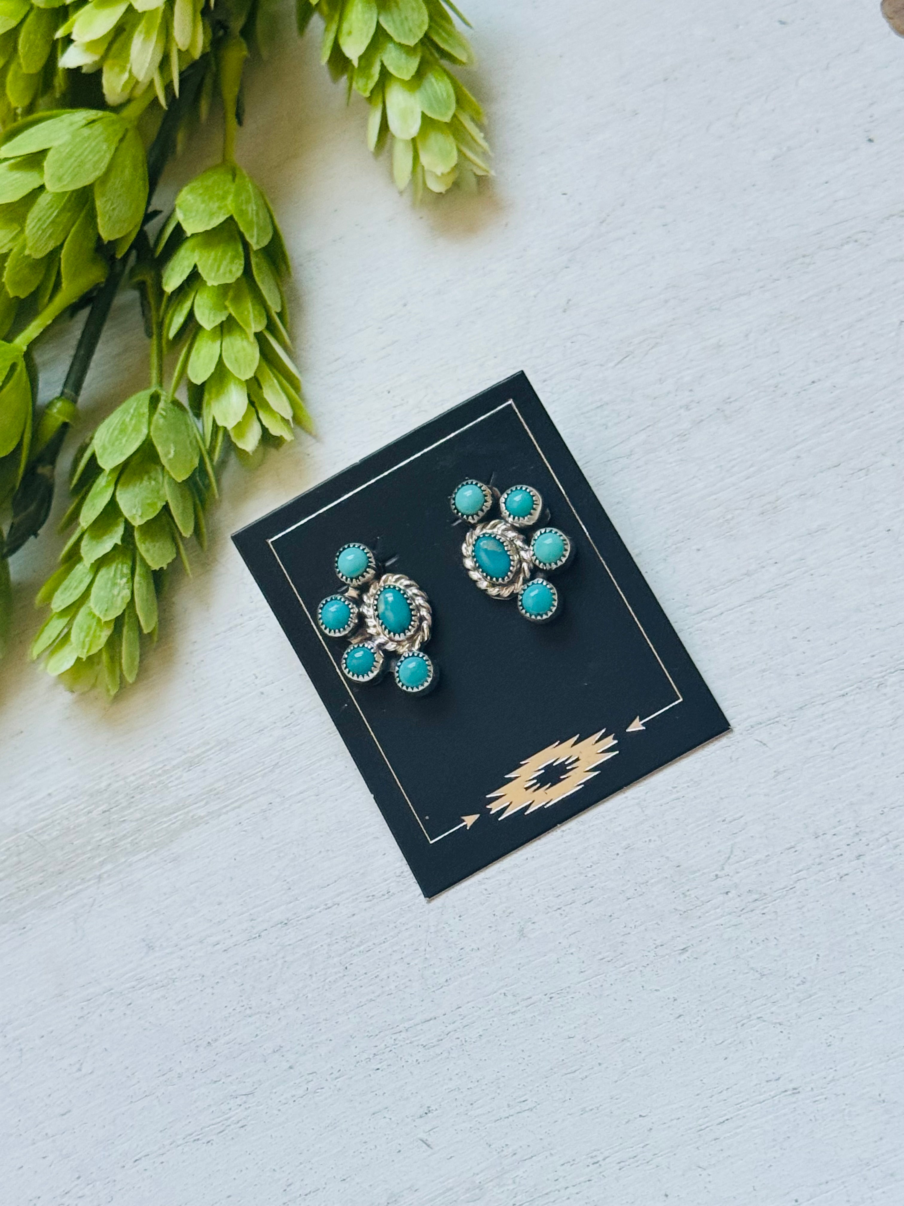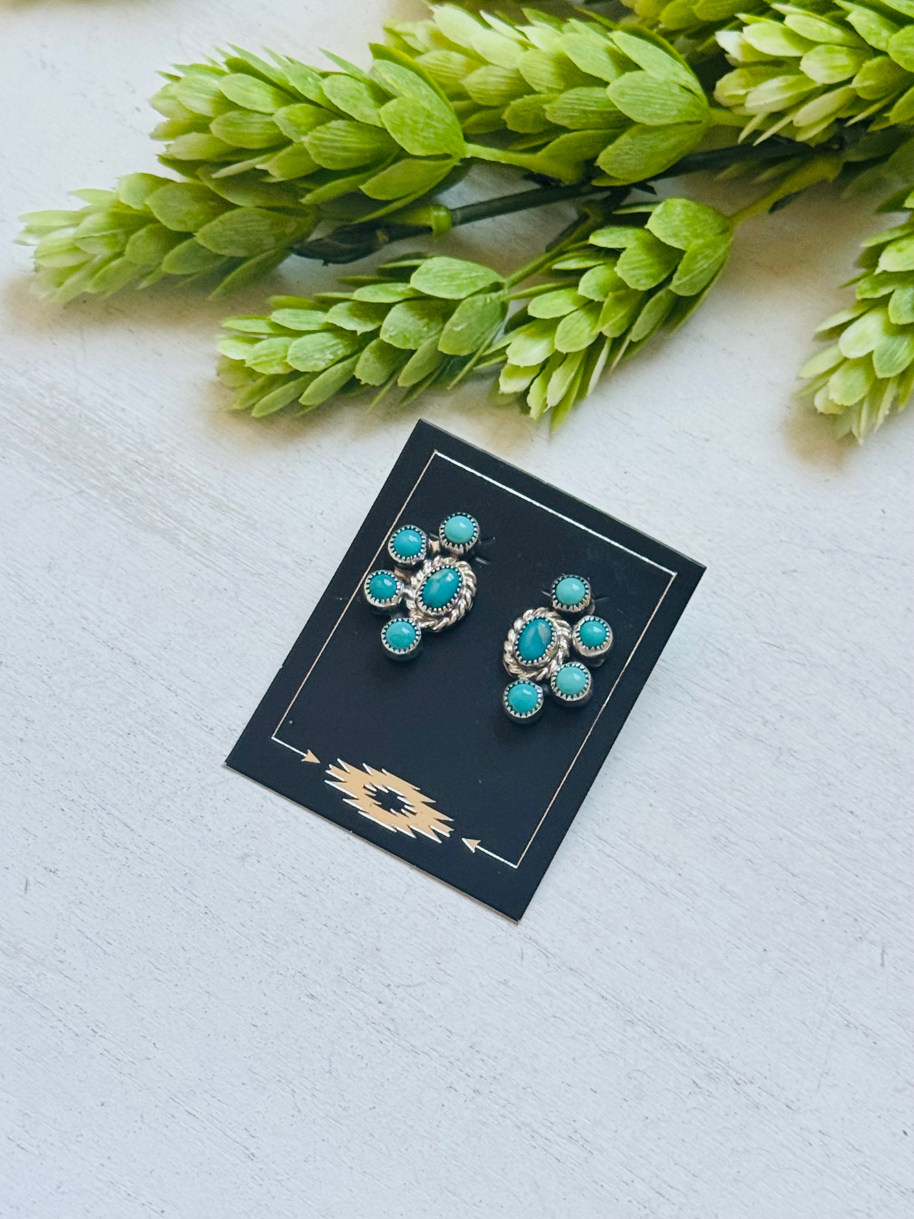 Navajo Made Kingman Turquoise & Sterling Silver Post Earrings