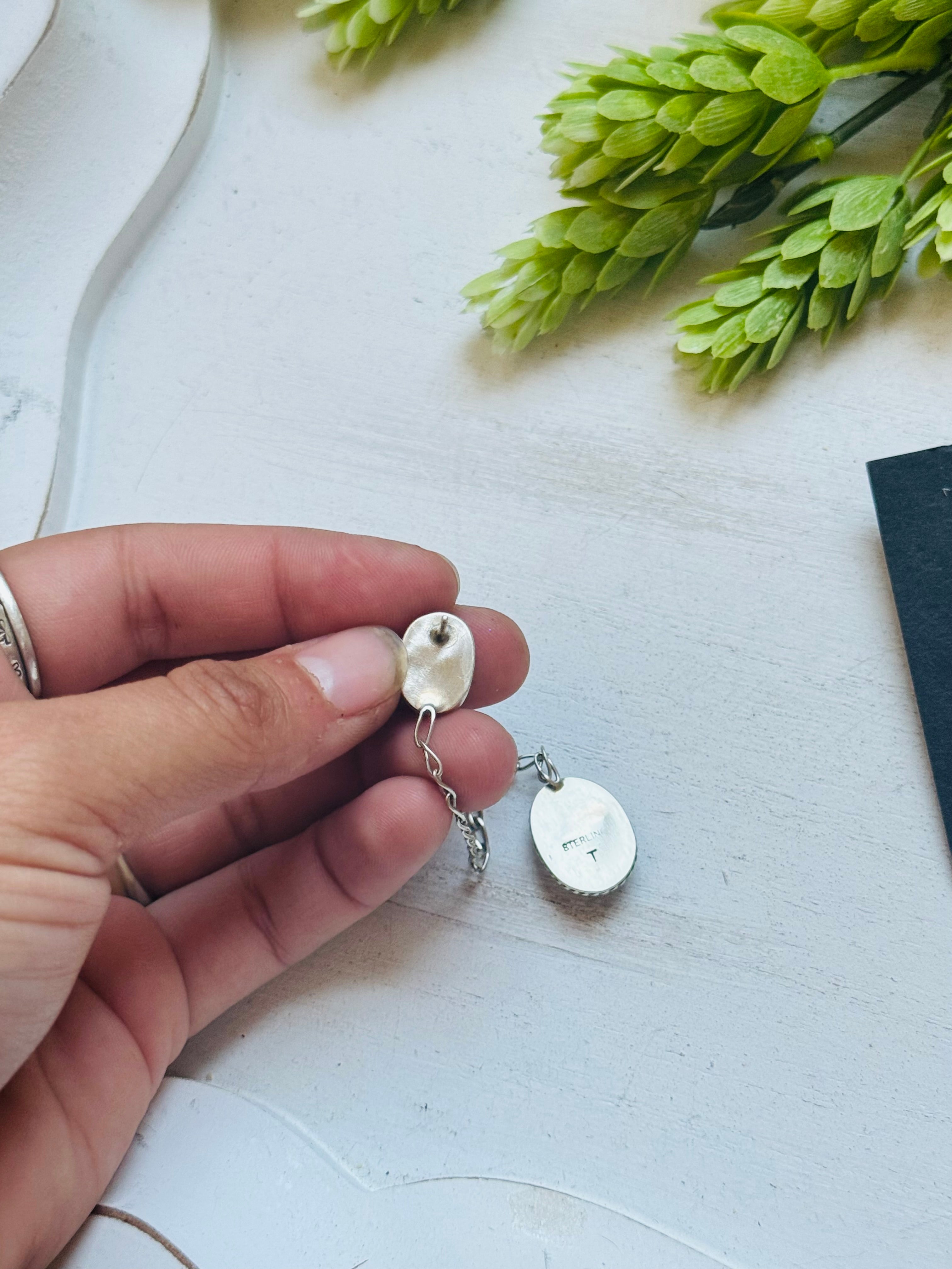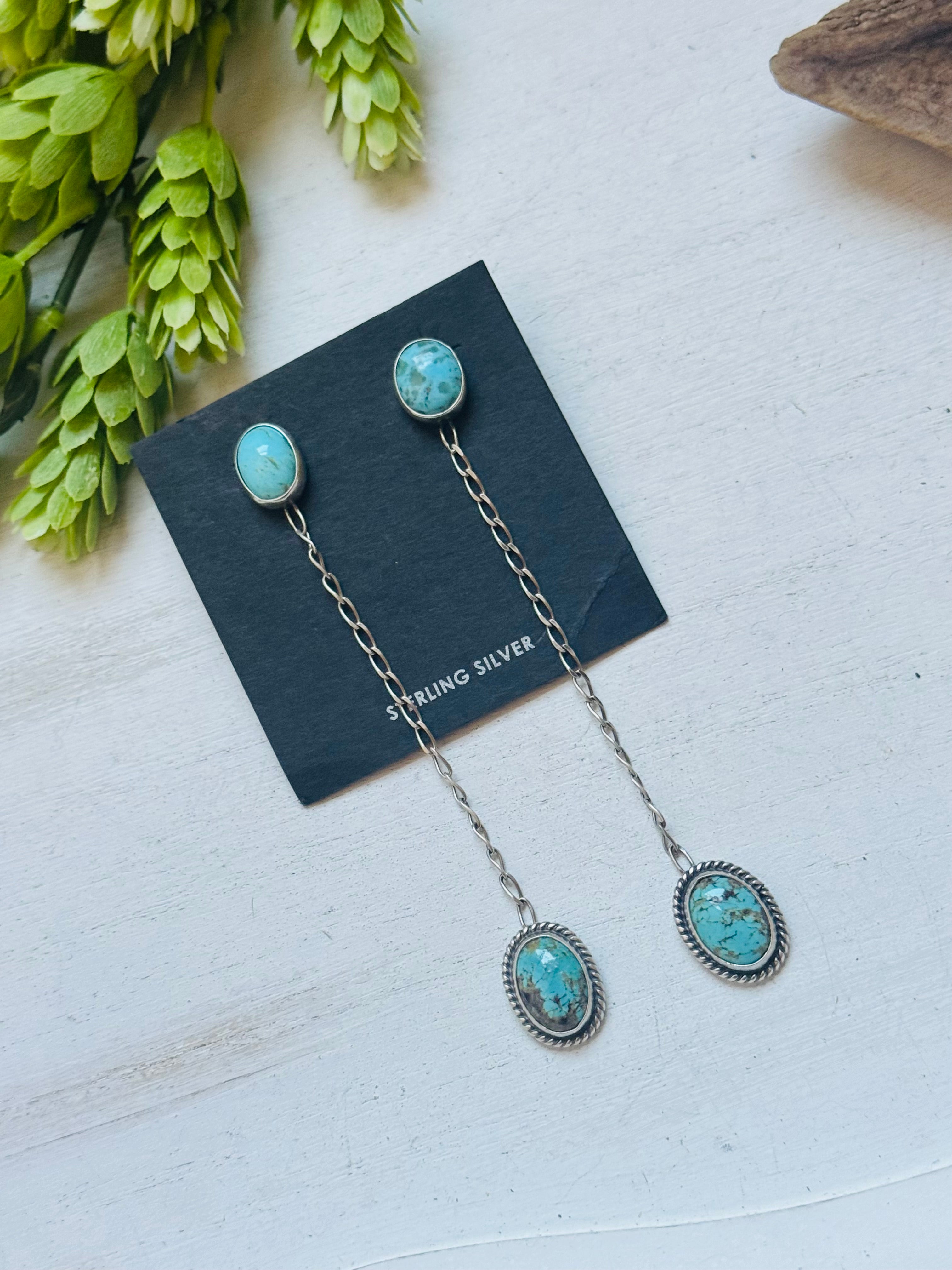 Navajo Made Kingman Turquoise & Sterling Silver Post Dangle Earrings