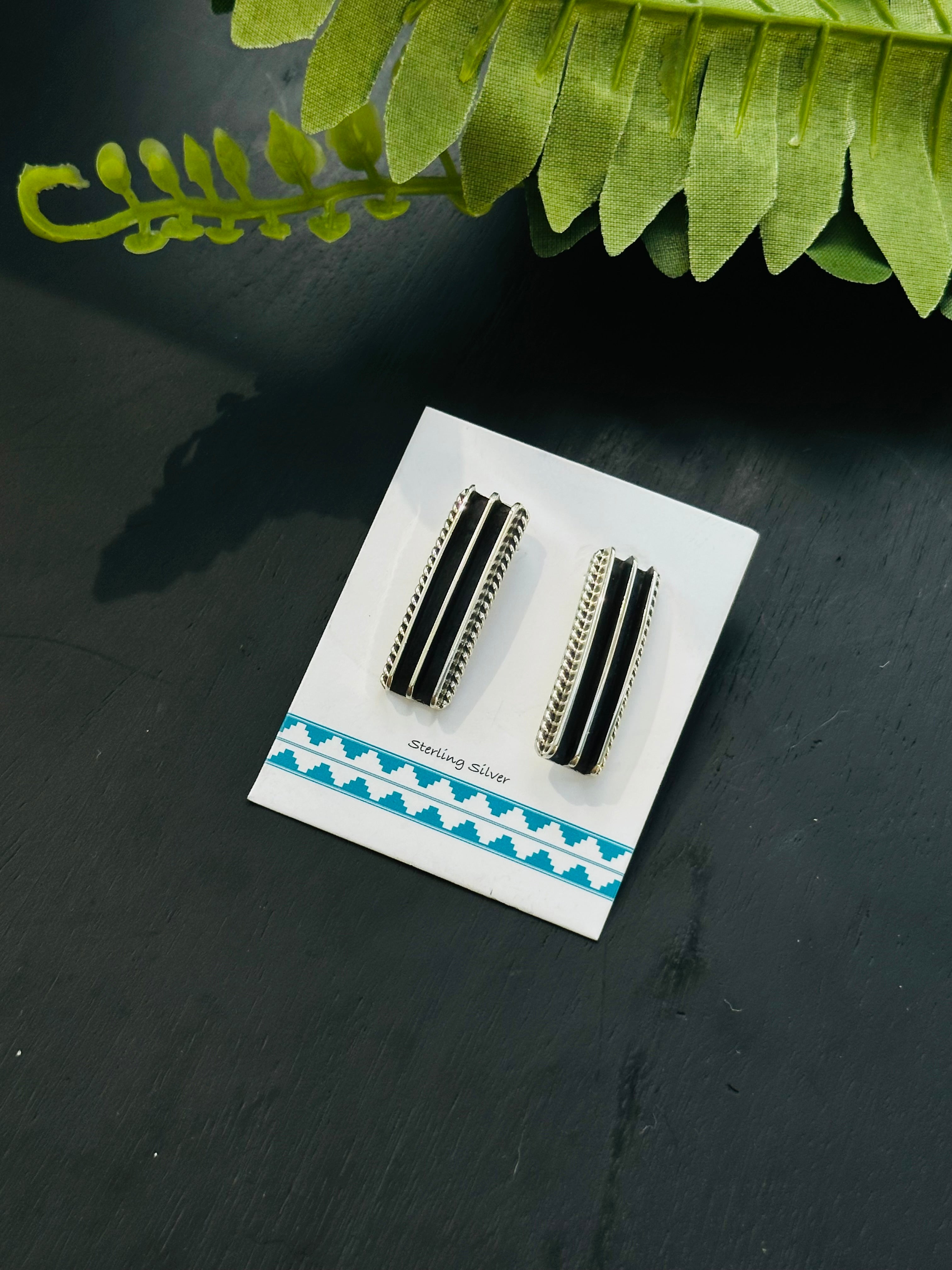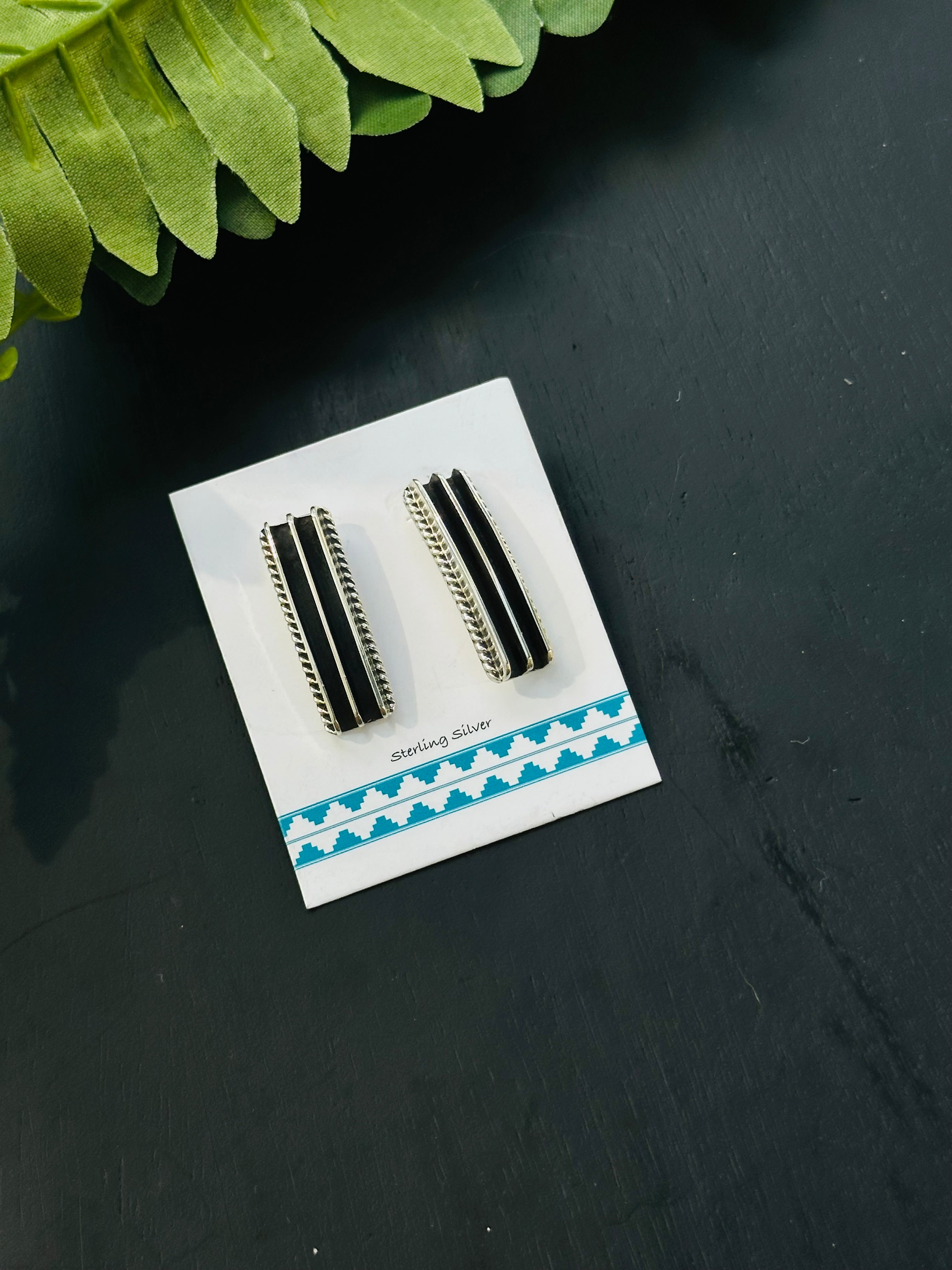 Beautiful dangle earrings. Navajo Made Sterling Silver Post Dangle Earrings. It measures 1 inch long and 3/8 of an inch wide . Signed and stamped.