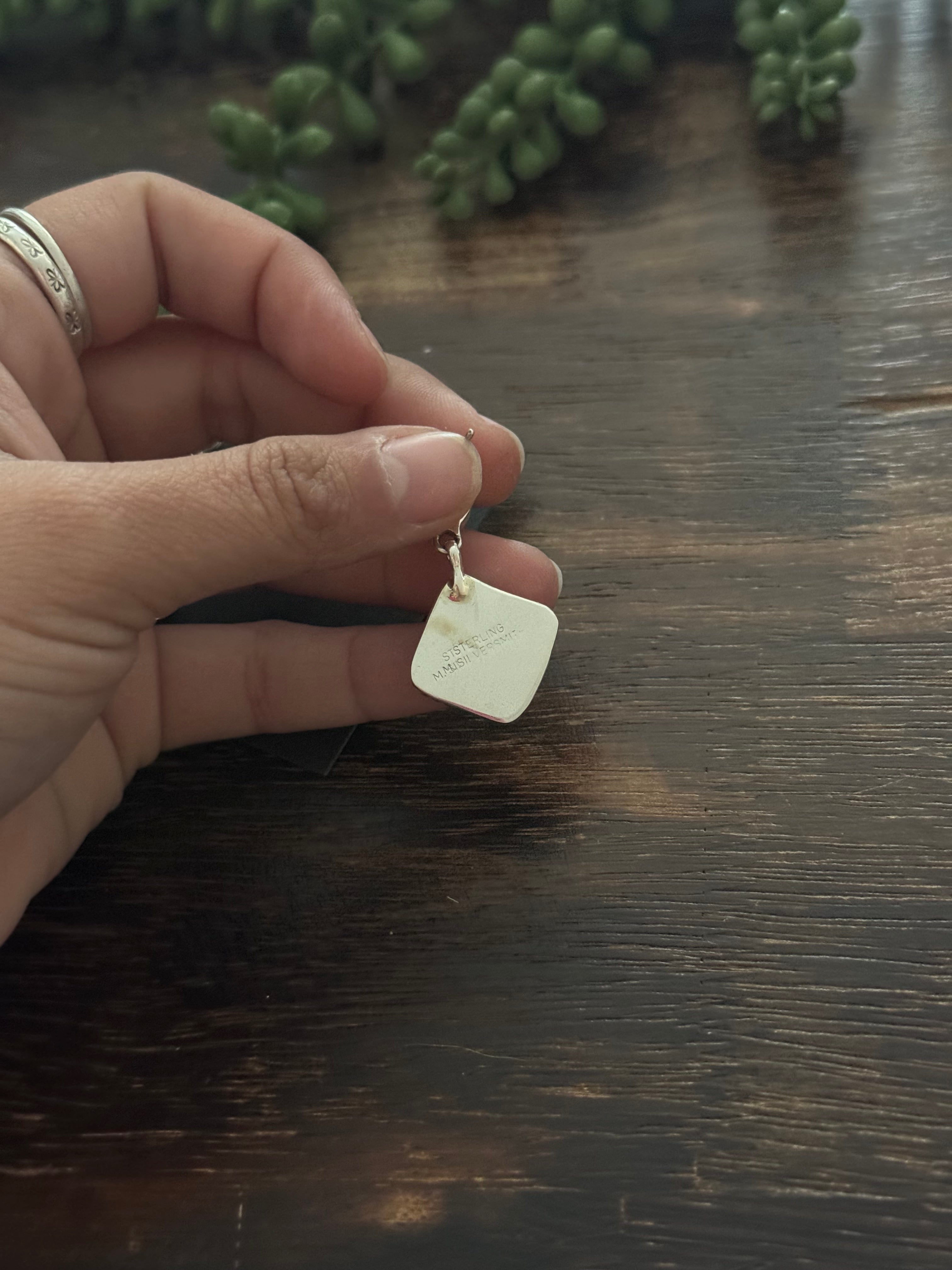 Navajo Made Kingman Turquoise & Sterling Silver Post Dangle Earrings. It measures 1 3/8 inches long and 7/8 of an inch wide.