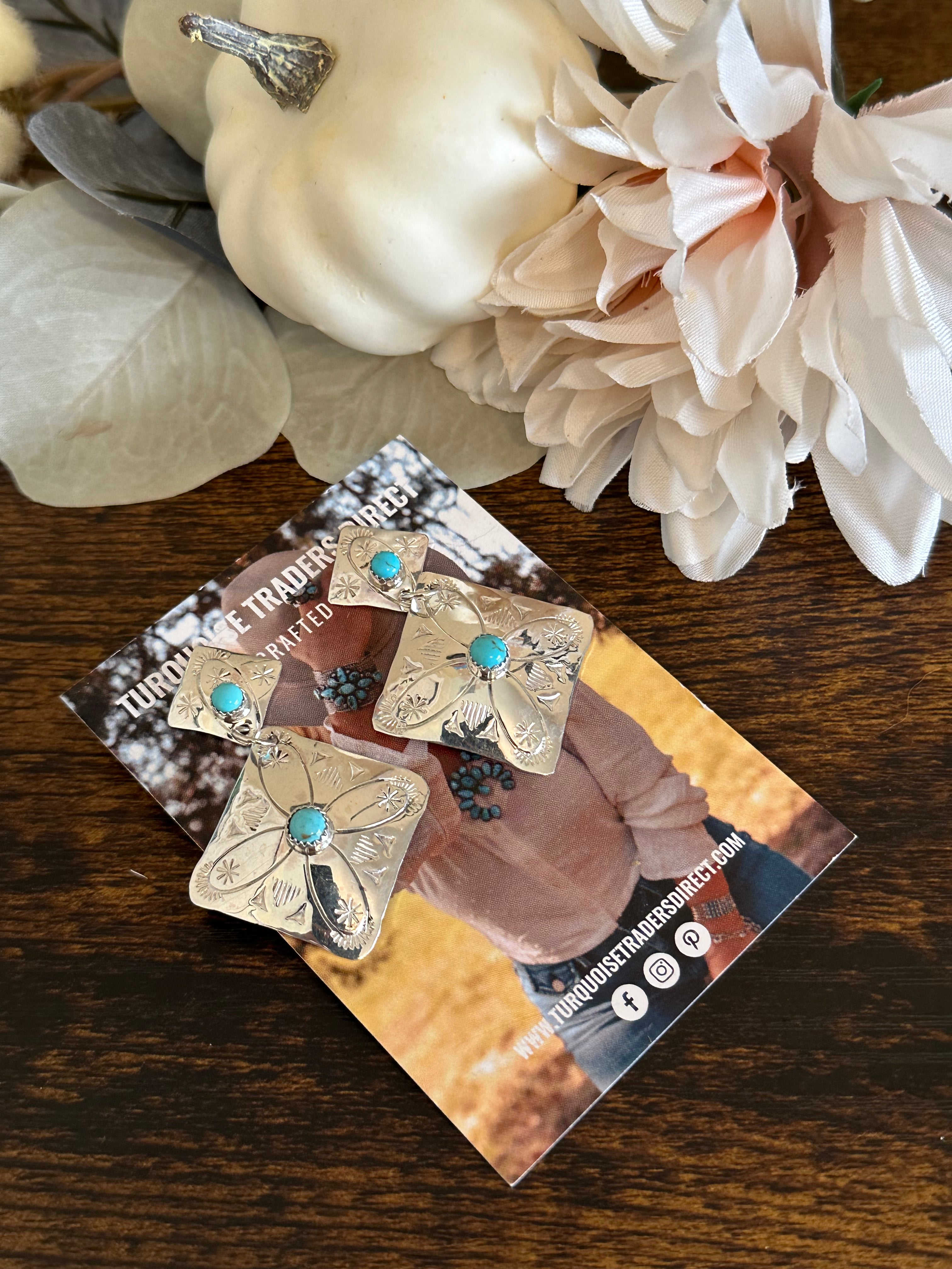 Navajo Made Kingman Turquoise & Sterling Silver Post Dangle Earrings