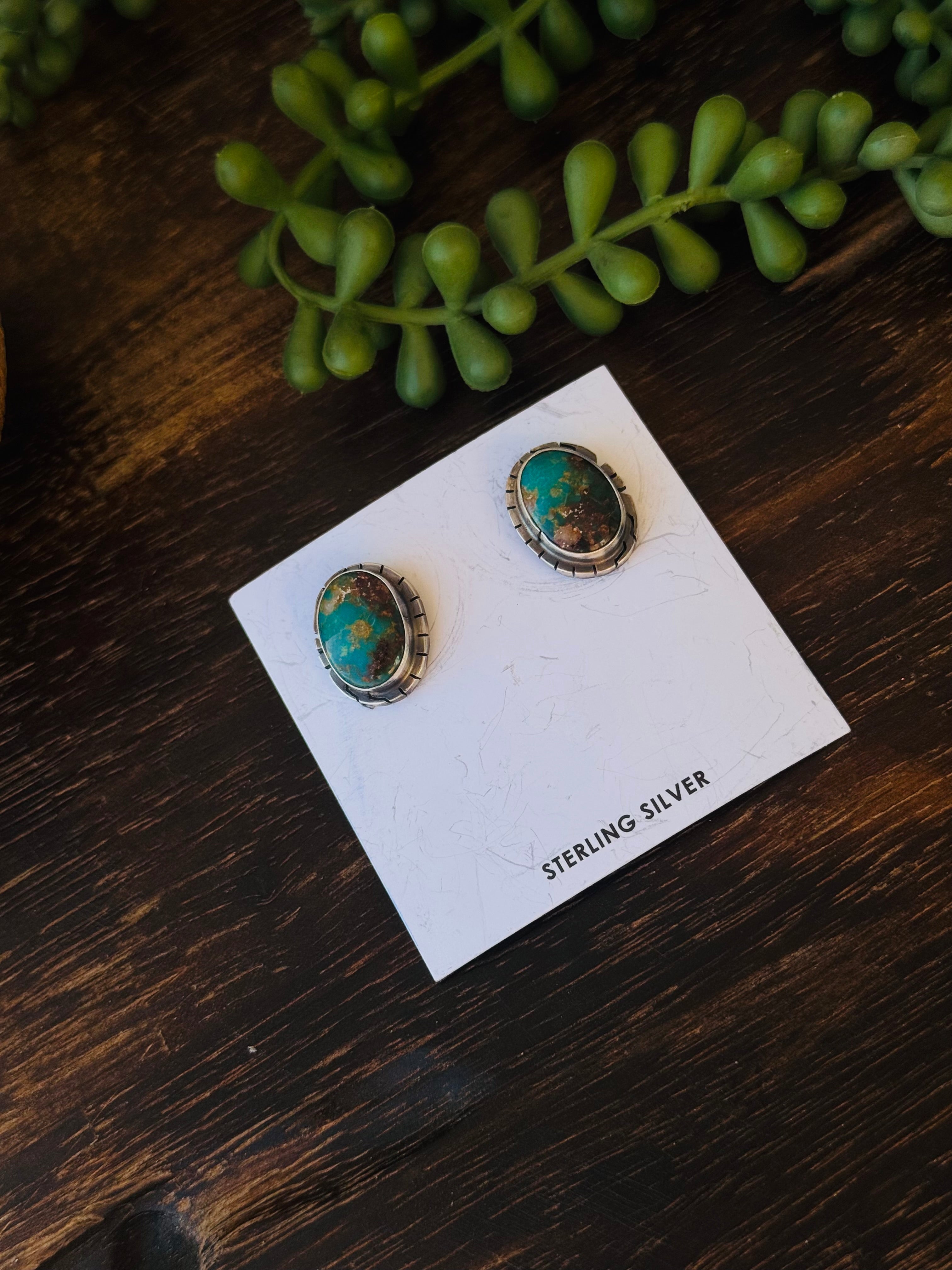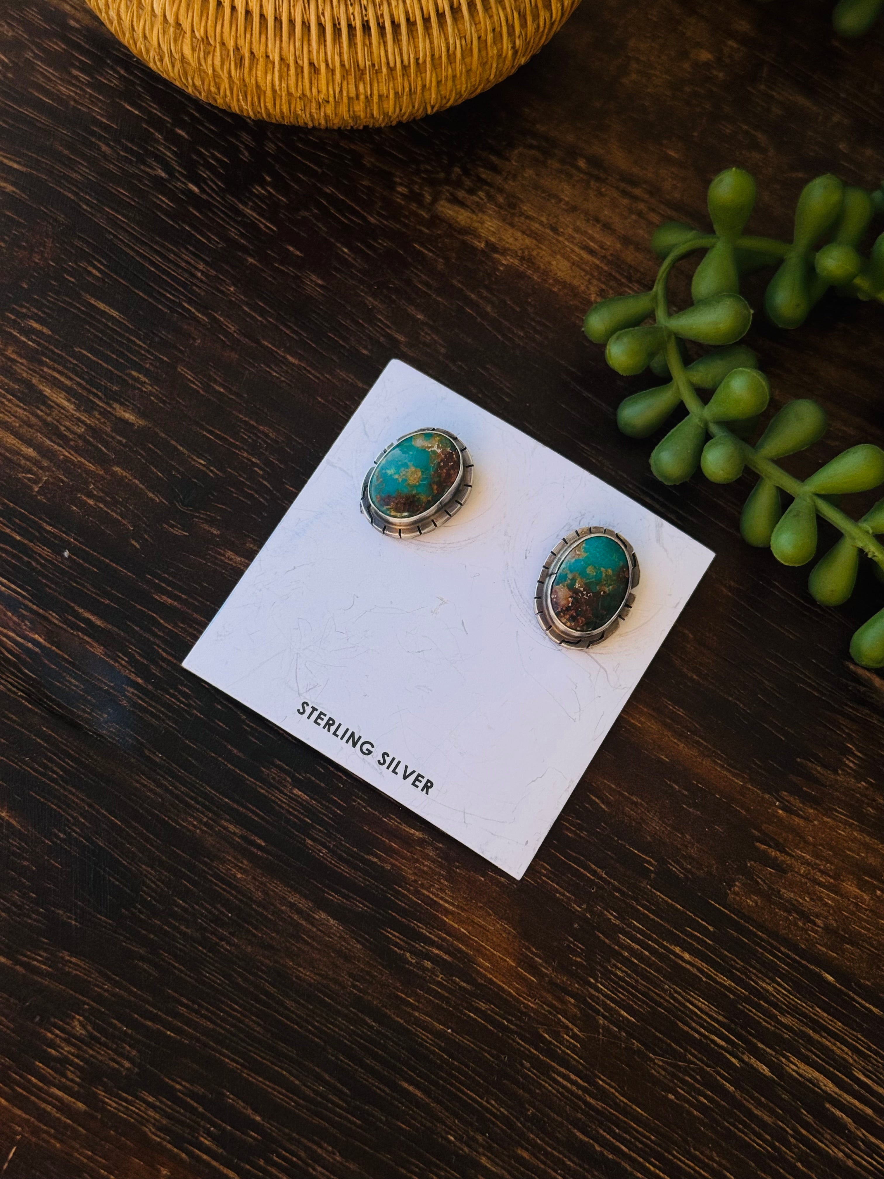 Navajo Made Kingman Turquoise & Sterling Silver Post Earrings