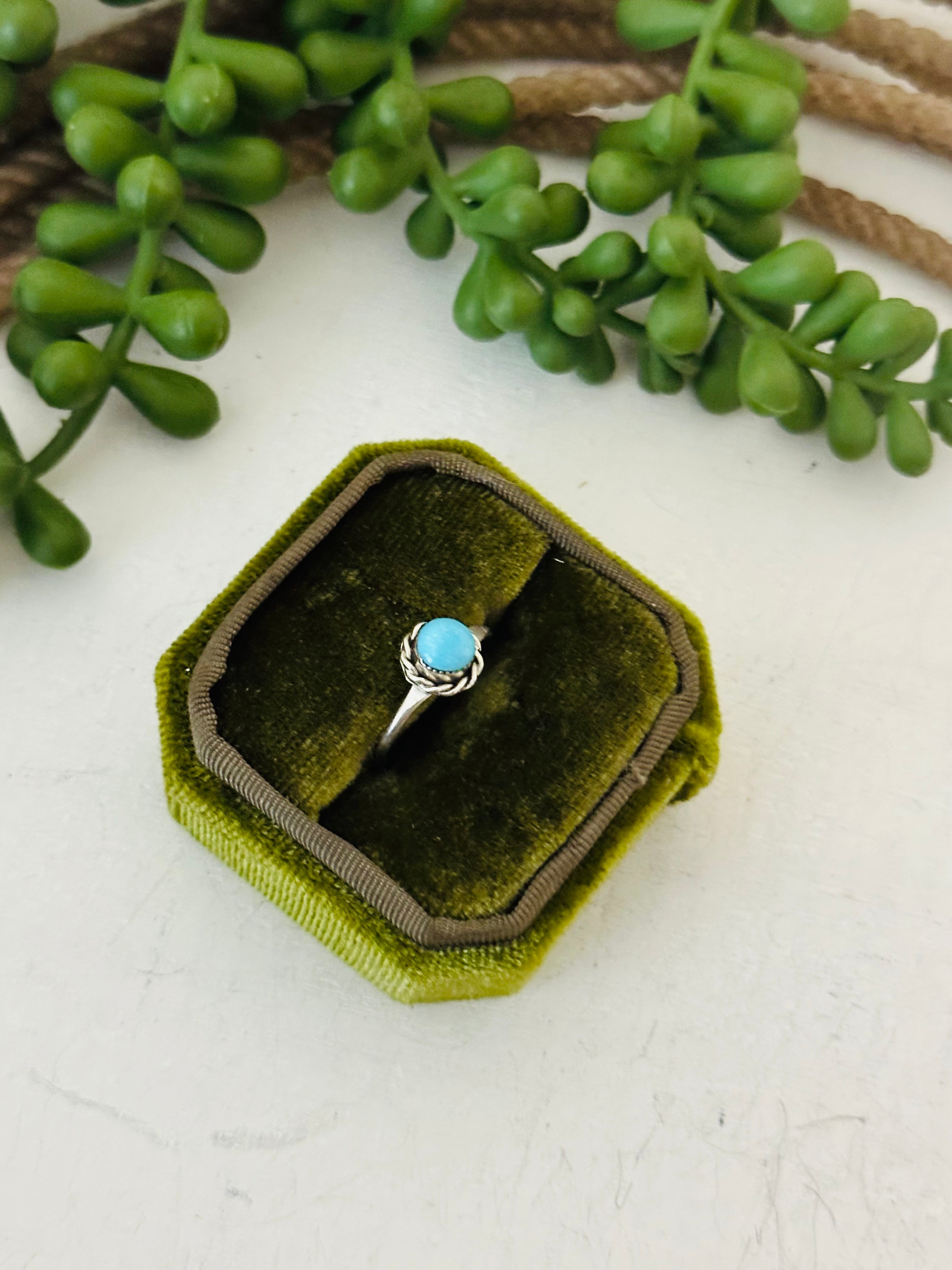 Beautiful ring, Navajo Made Kingman Turquoise & Sterling Silver Ring. It measures 1/2 of an inch long. Stones will differ due to natural stones,
