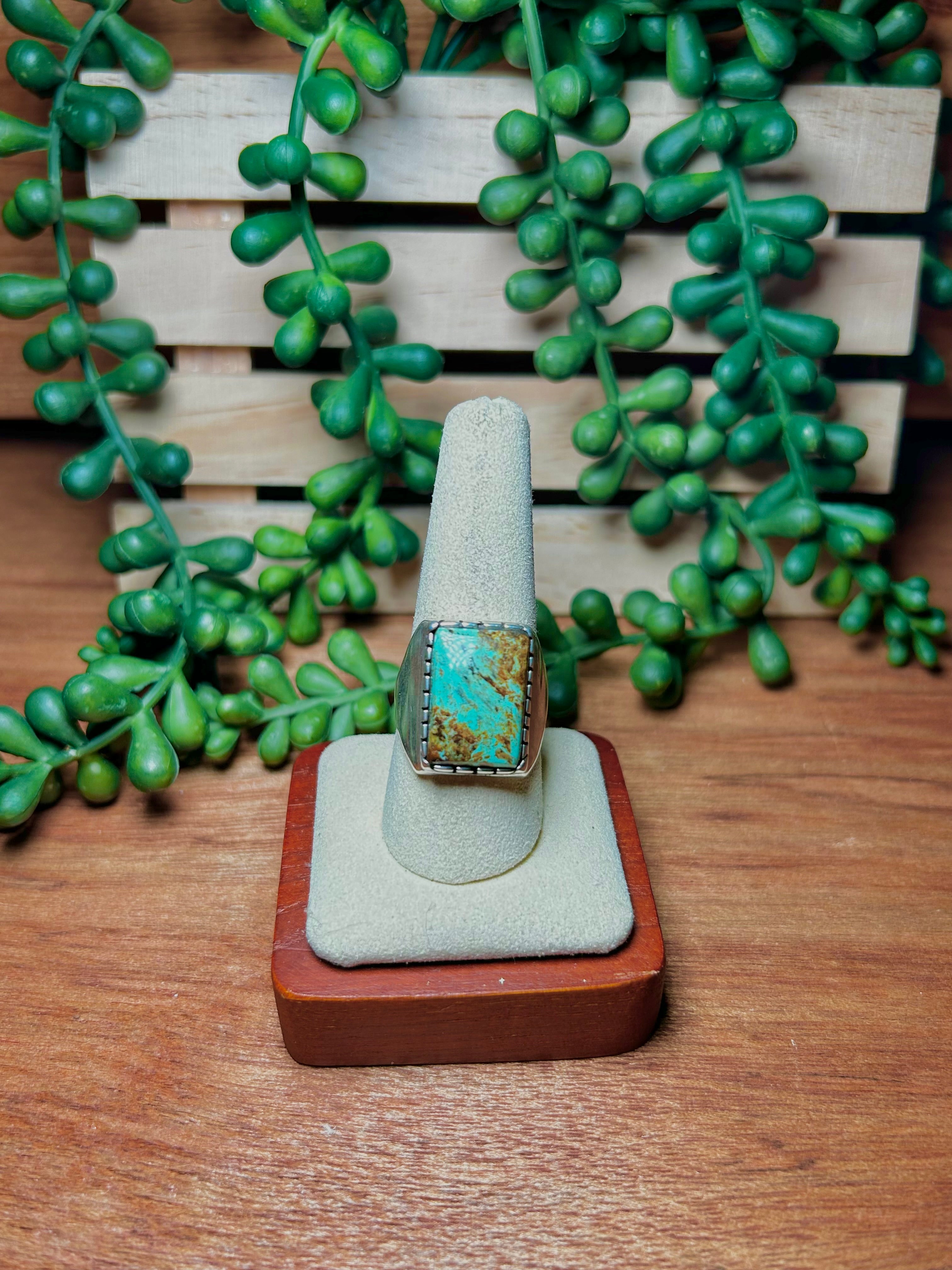 Navajo Made Kingman Turquoise & Sterling Silver Ring Size 10.5
