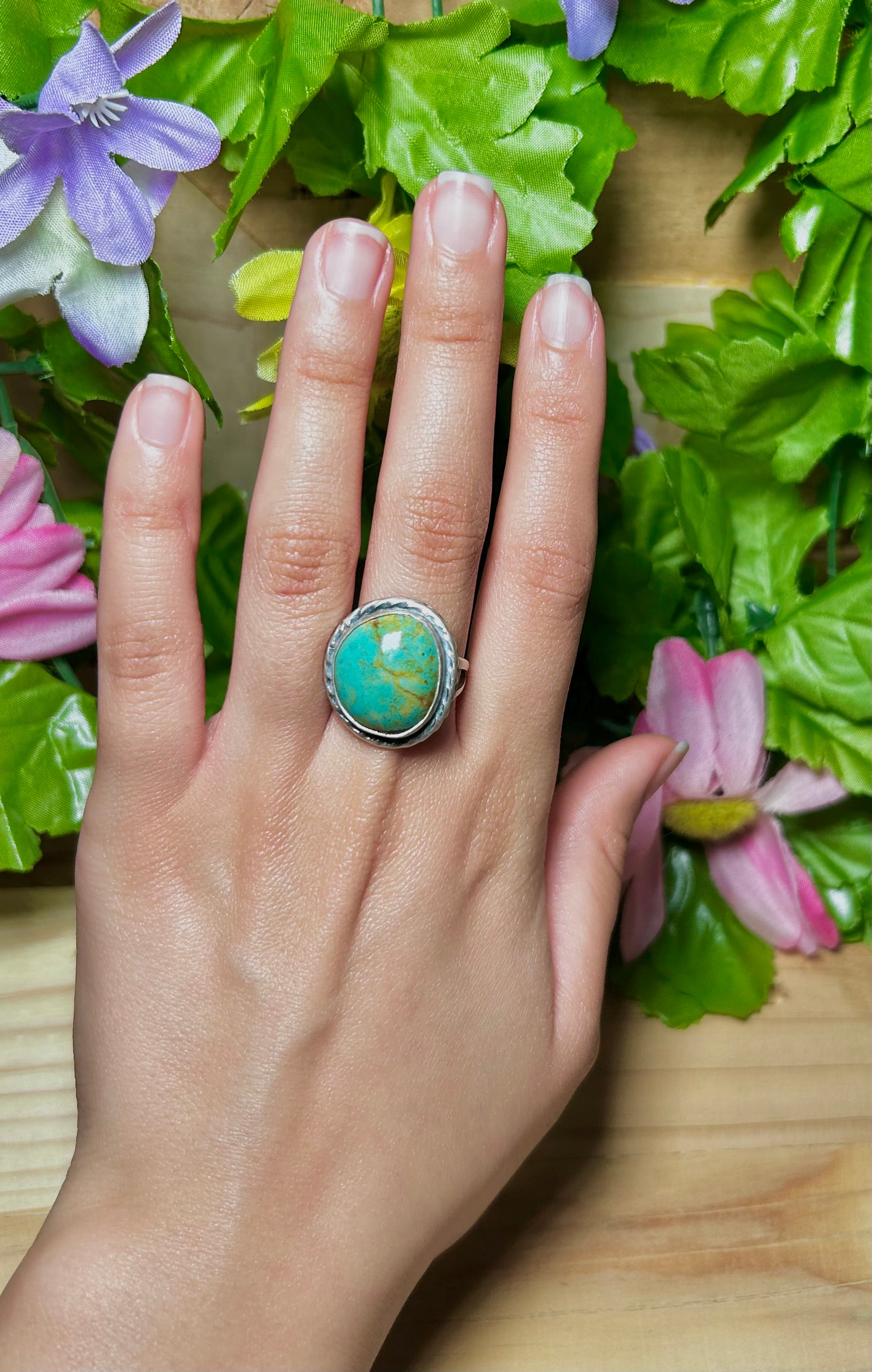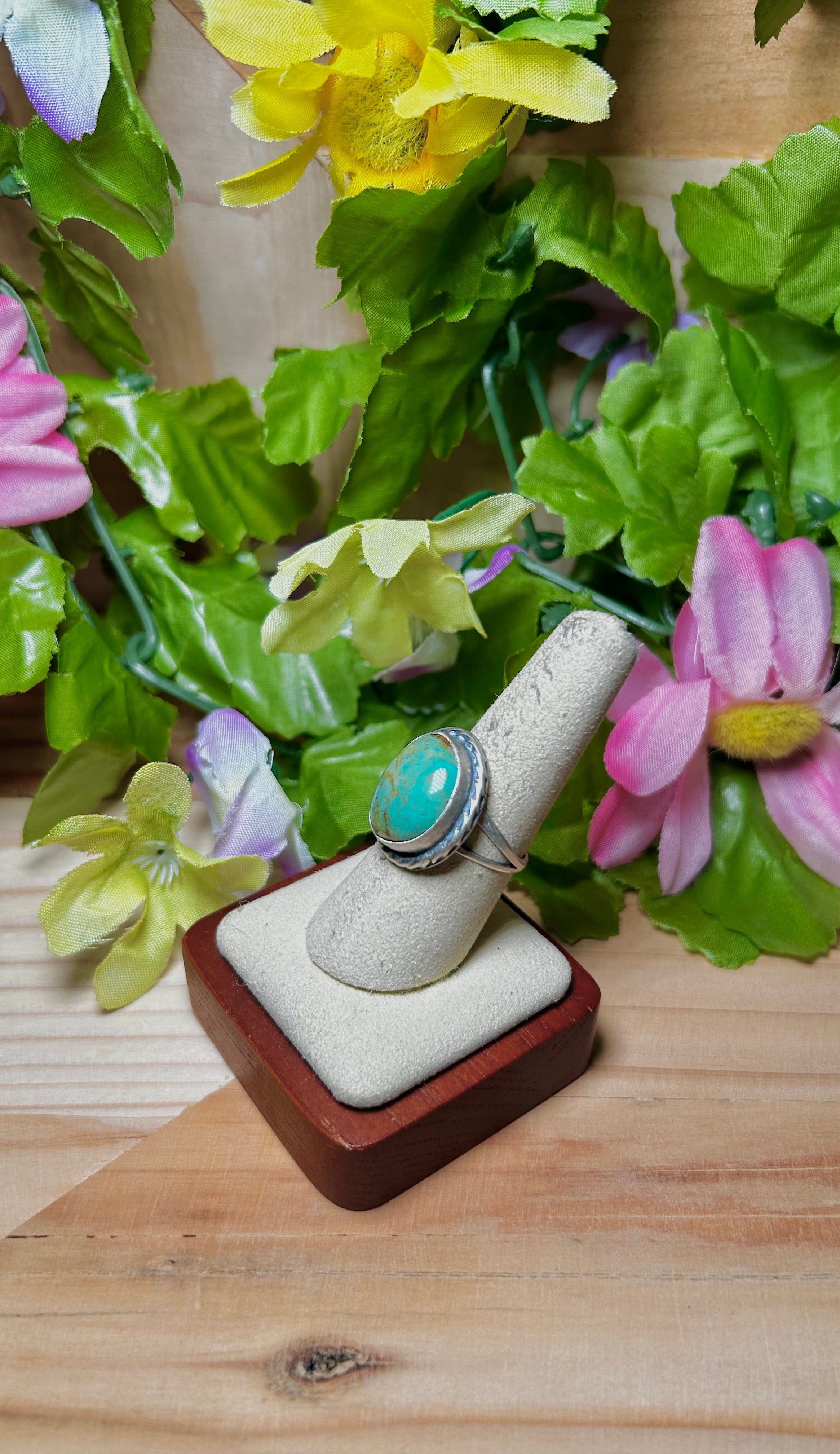 Navajo Made Kingman Turquoise & Sterling Silver Ring Size 8