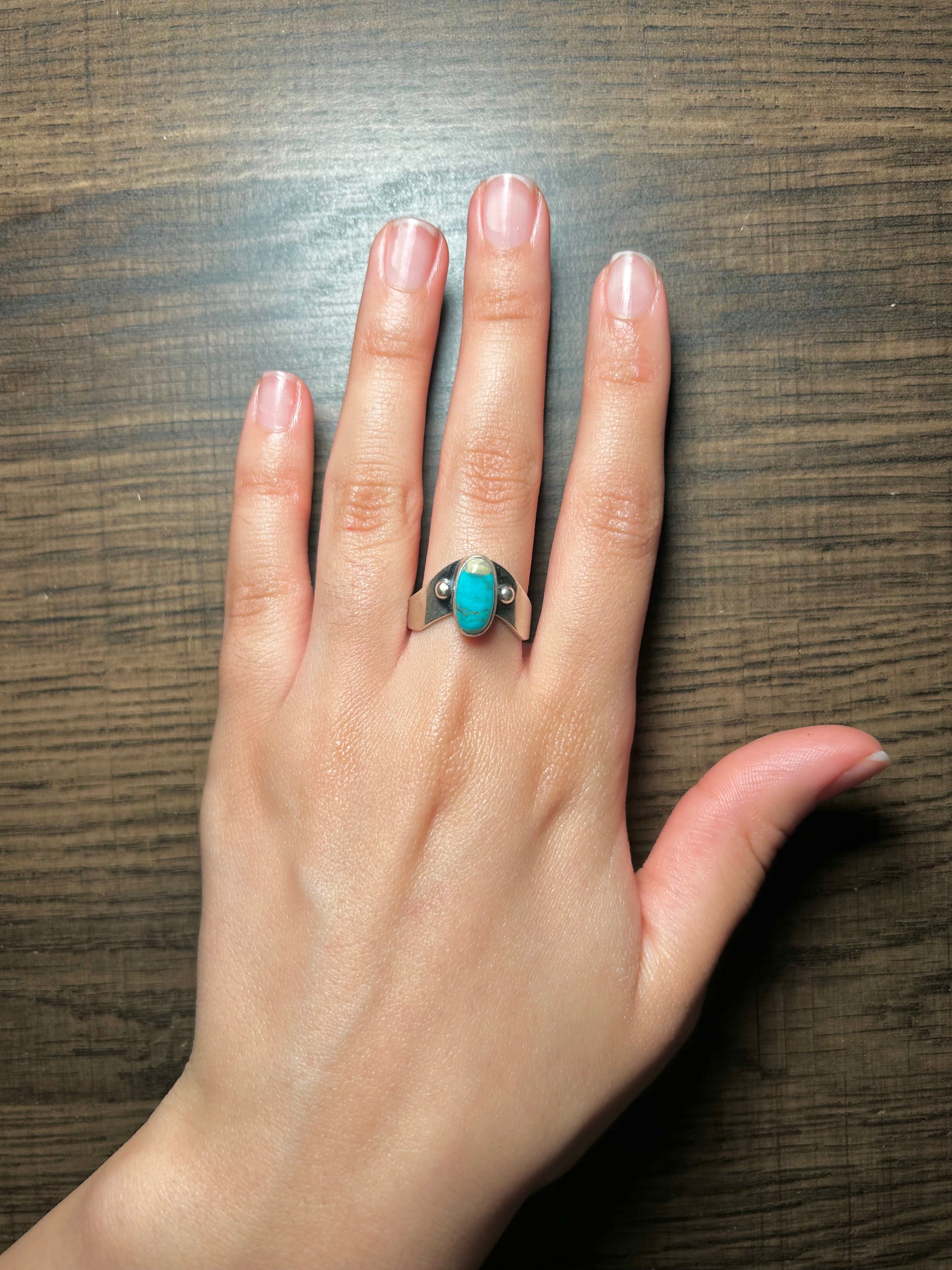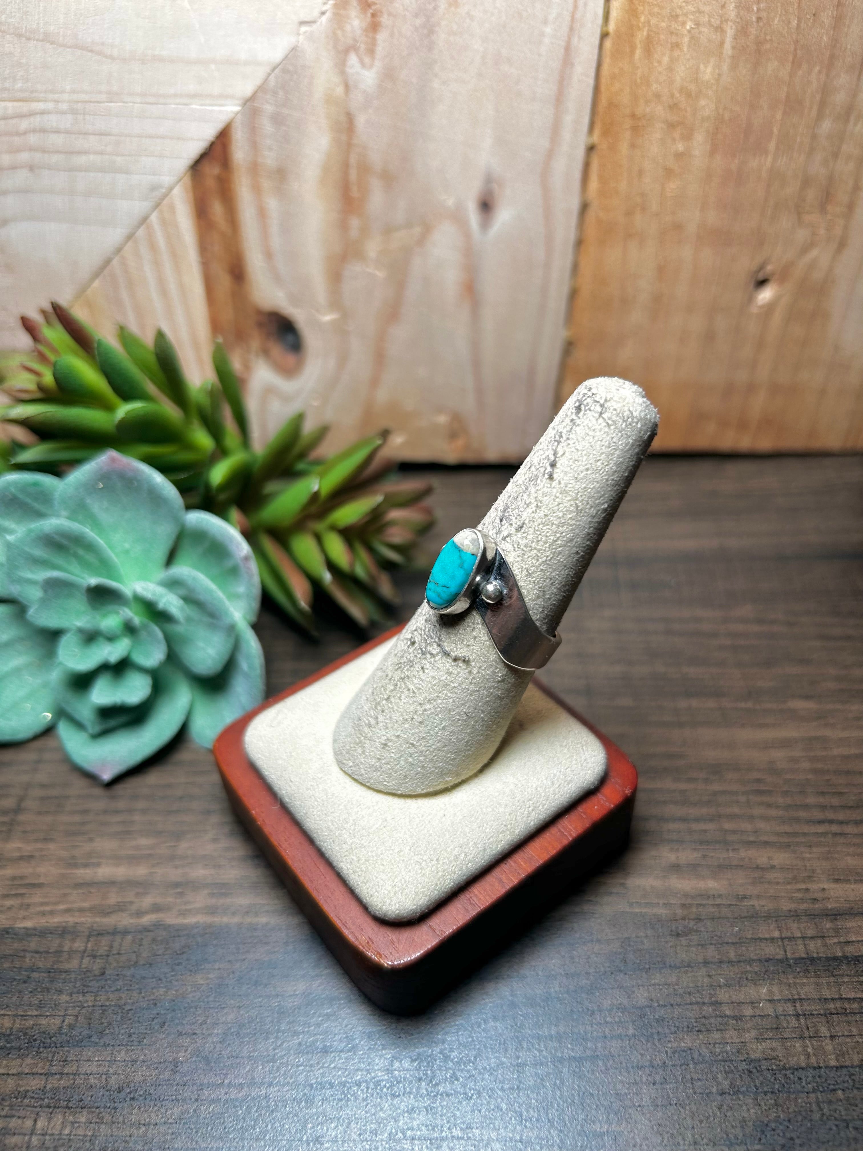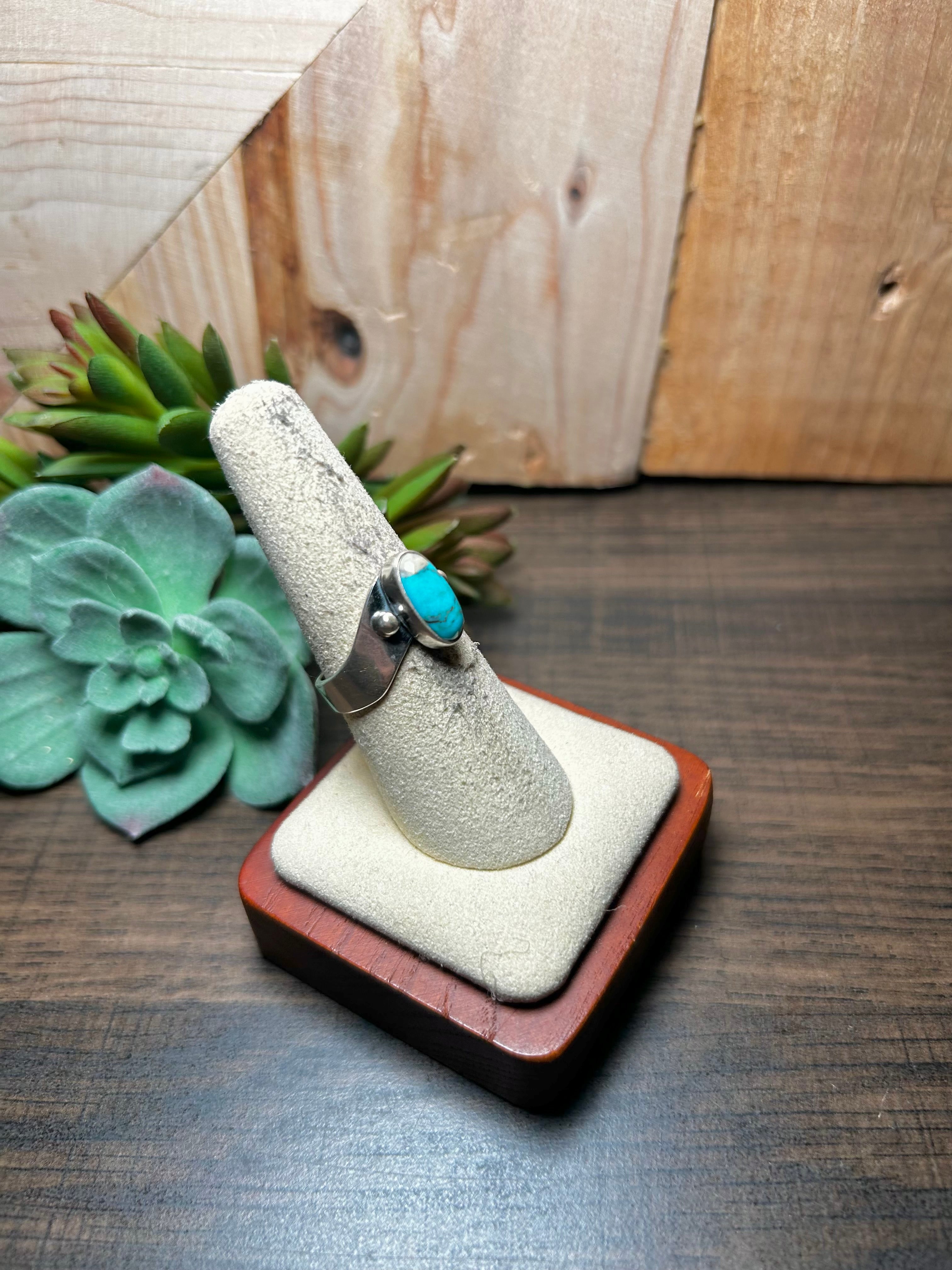 Navajo Made Kingman Turquoise & Sterling Silver Ring Size 8