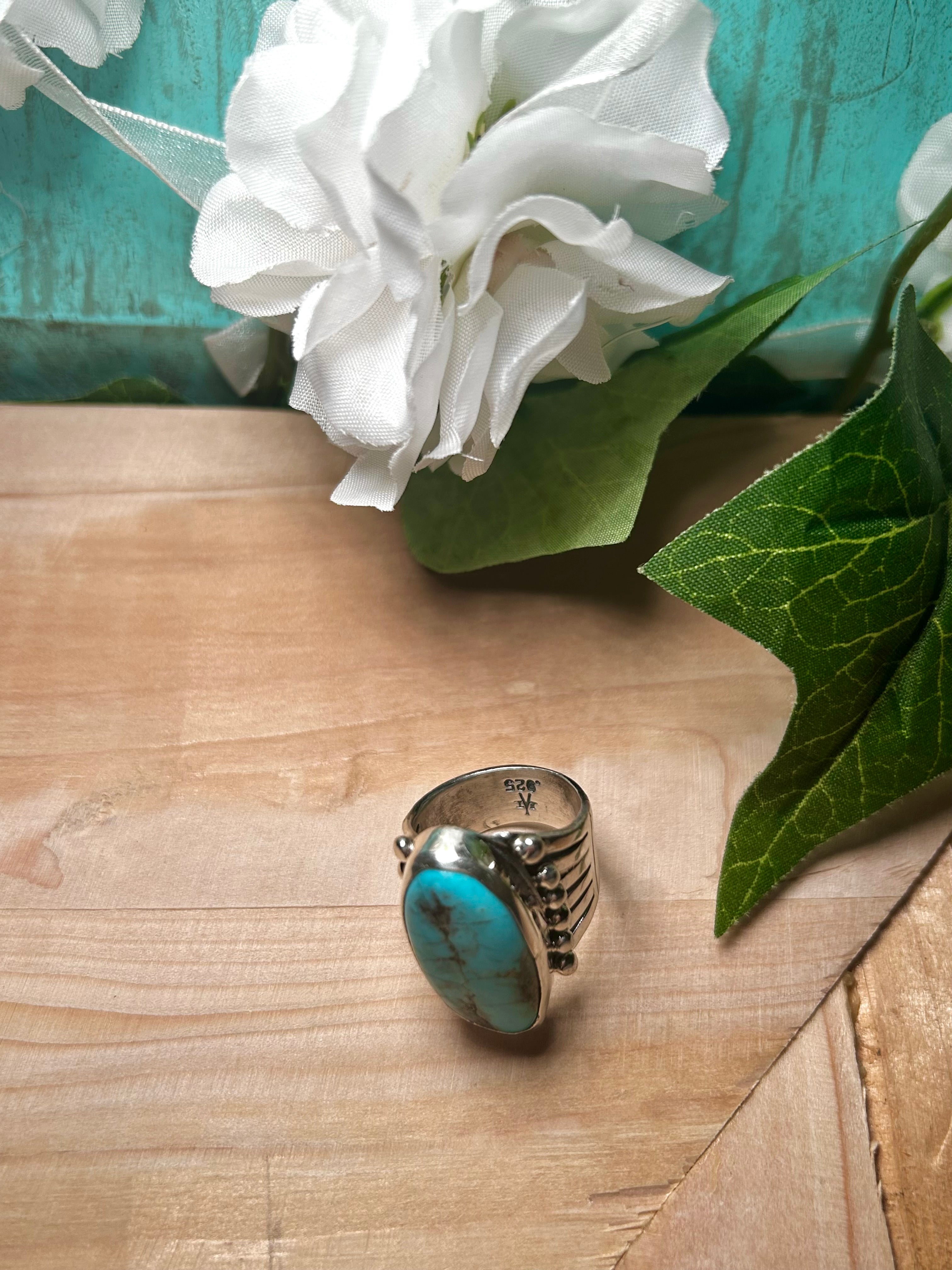 Navajo Made Egyptian Turquoise & Sterling Silver Ring Size 6.75