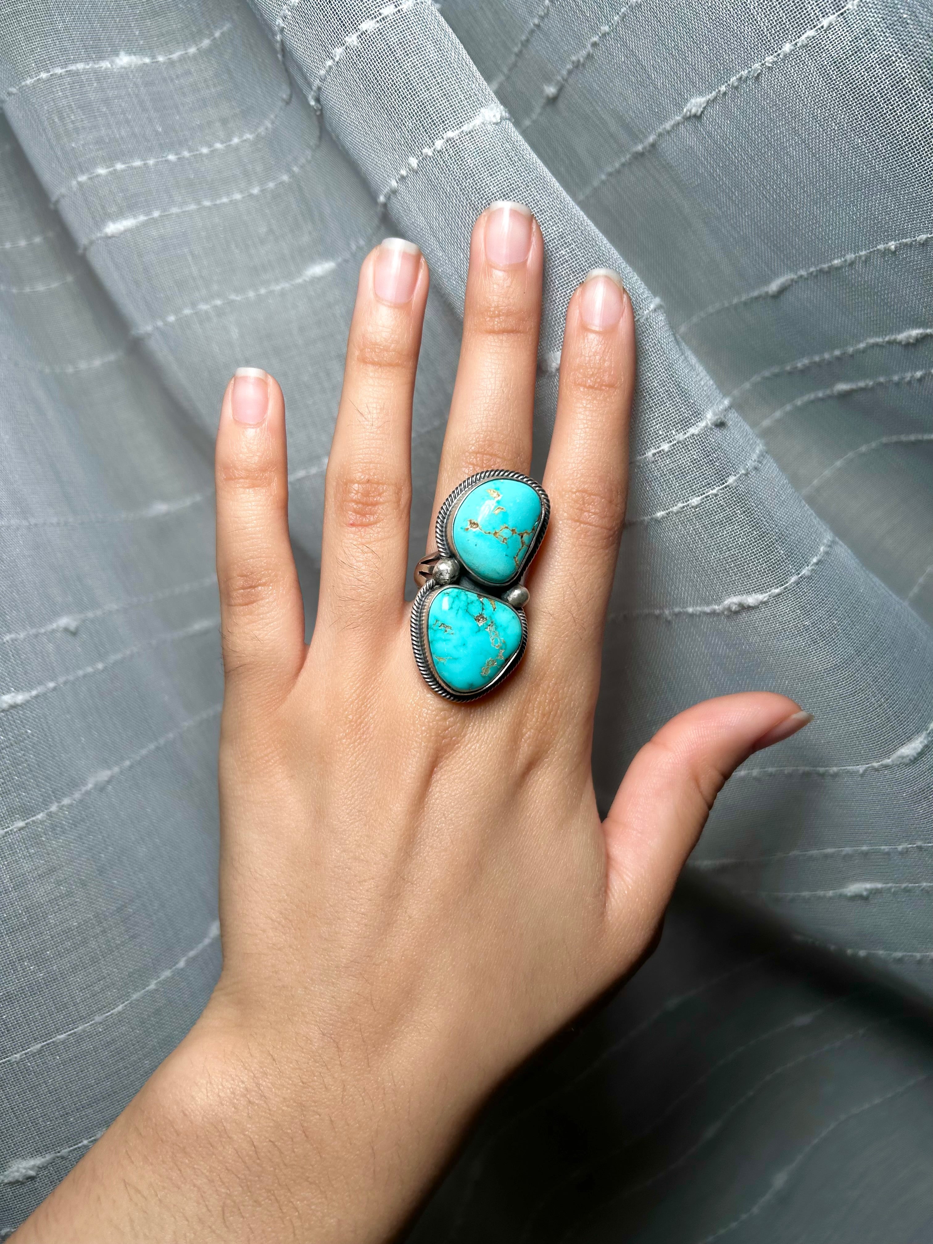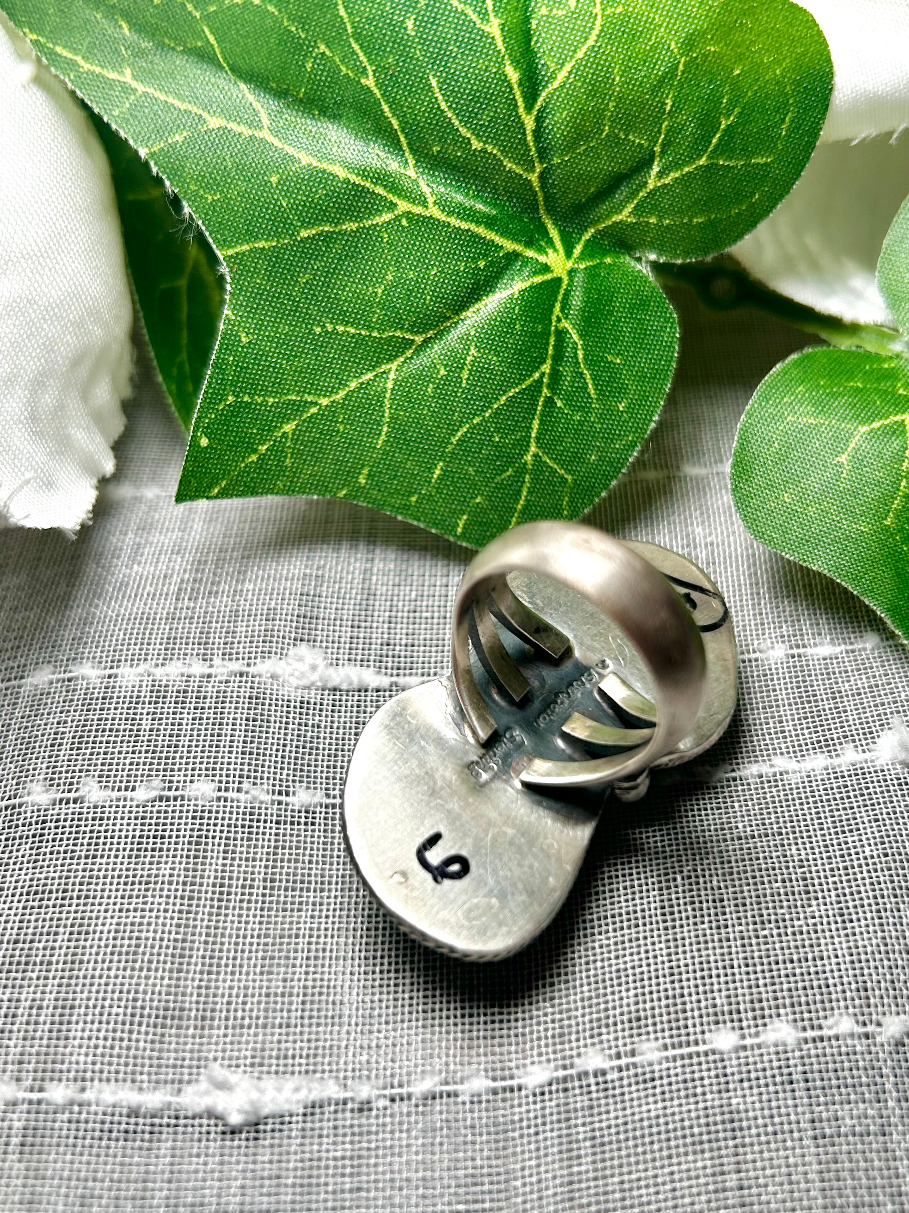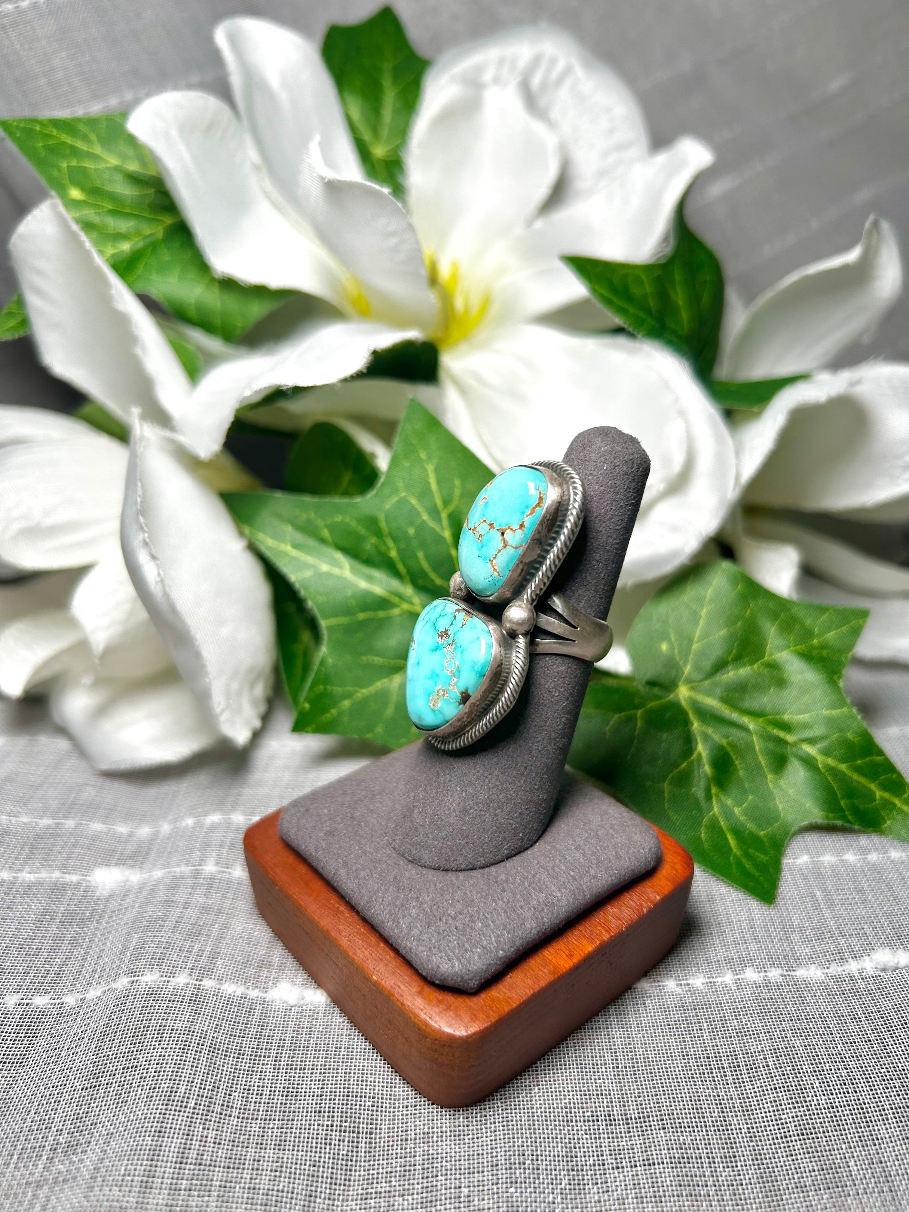 Paul Livingston Royston Turquoise & Sterling Silver Ring Size 6.25. It measures 1 5/8 inches long and 7/8 of an inch wide. Signed by the artist and stamped sterling silver.