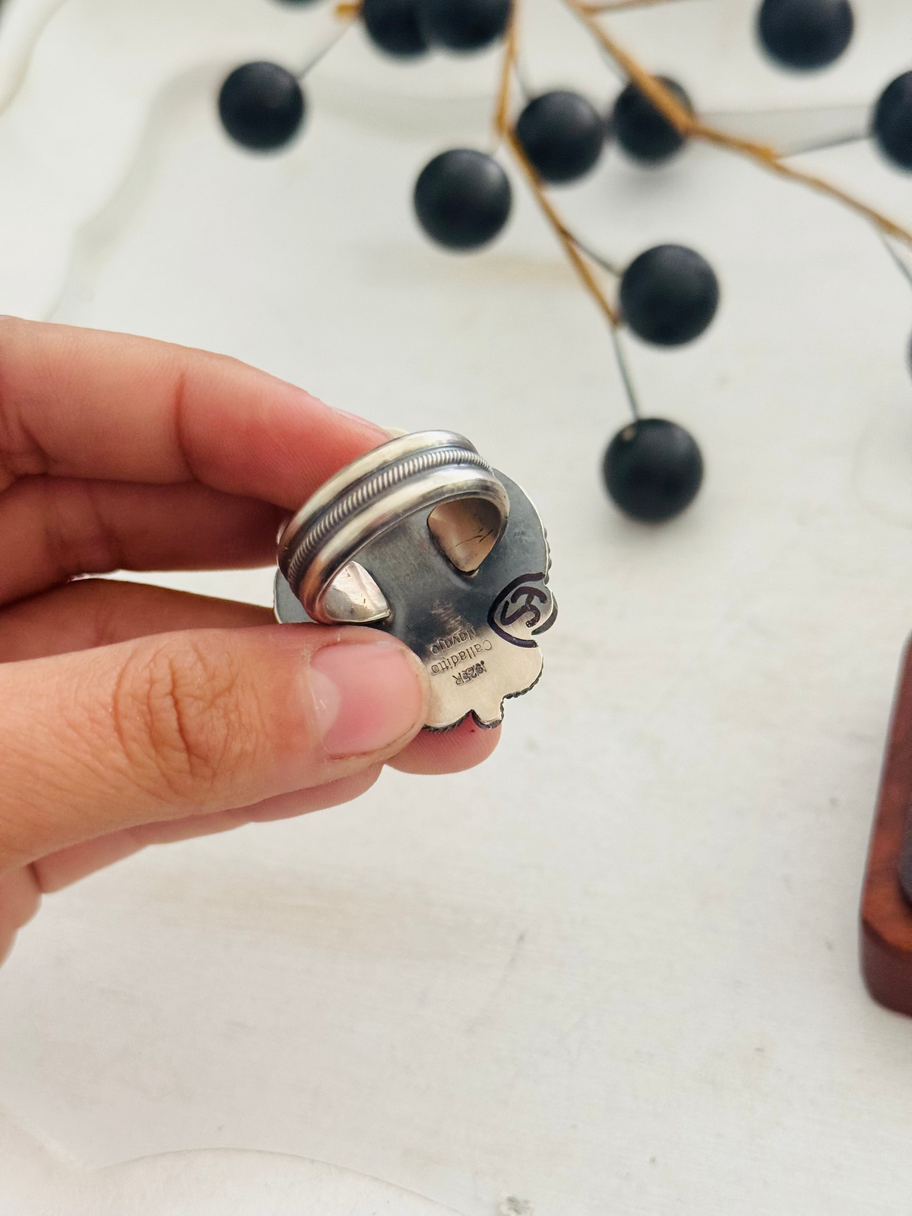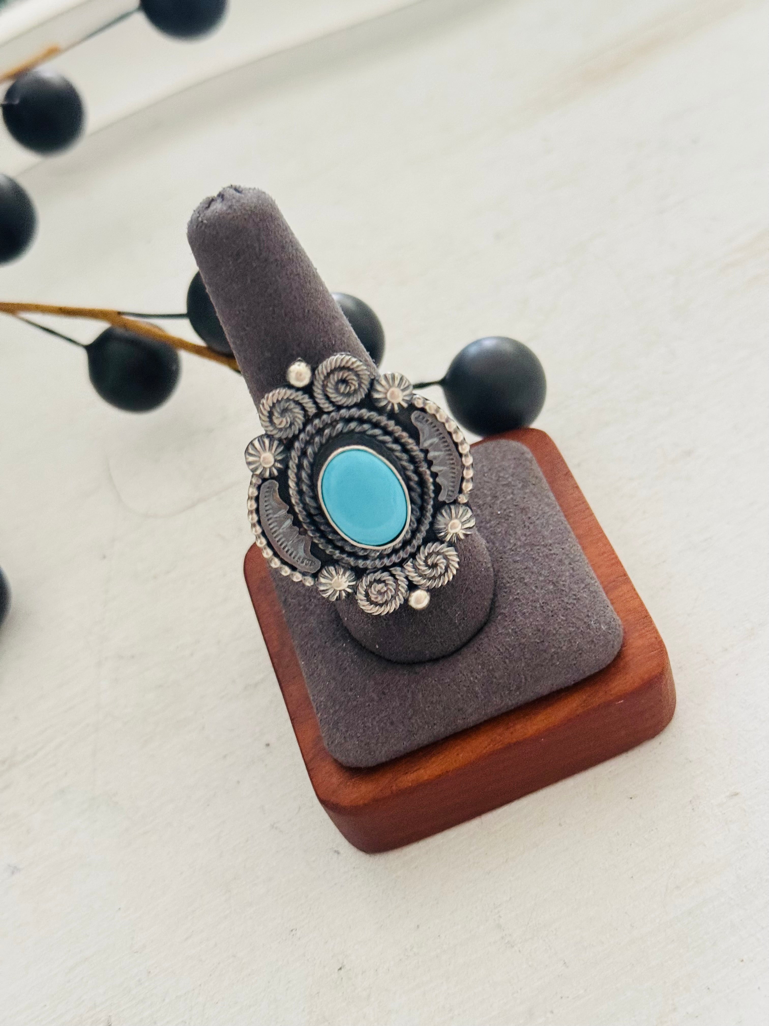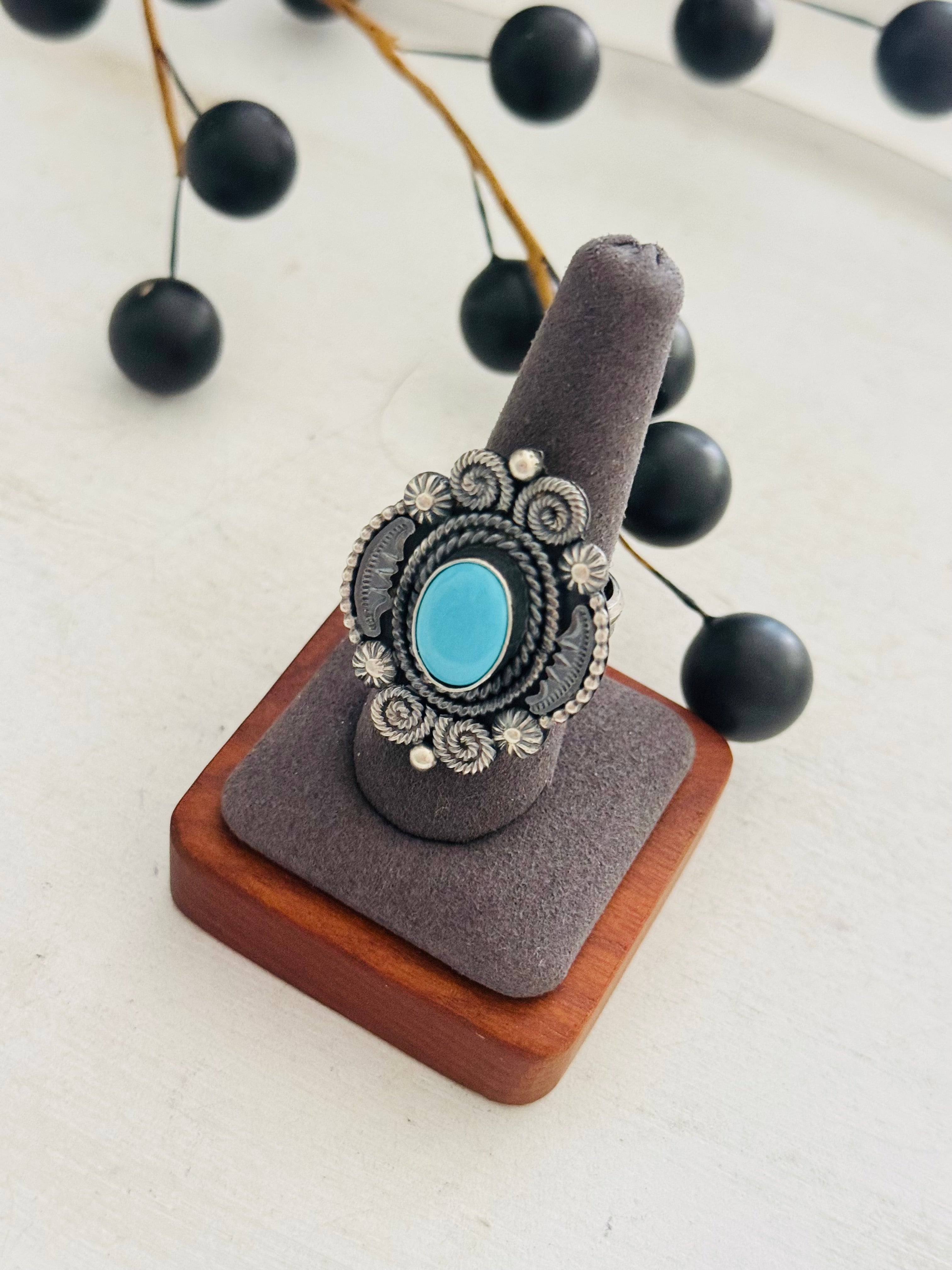Navajo Made Kingman Turquoise & Sterling Silver Ring Size 8.75