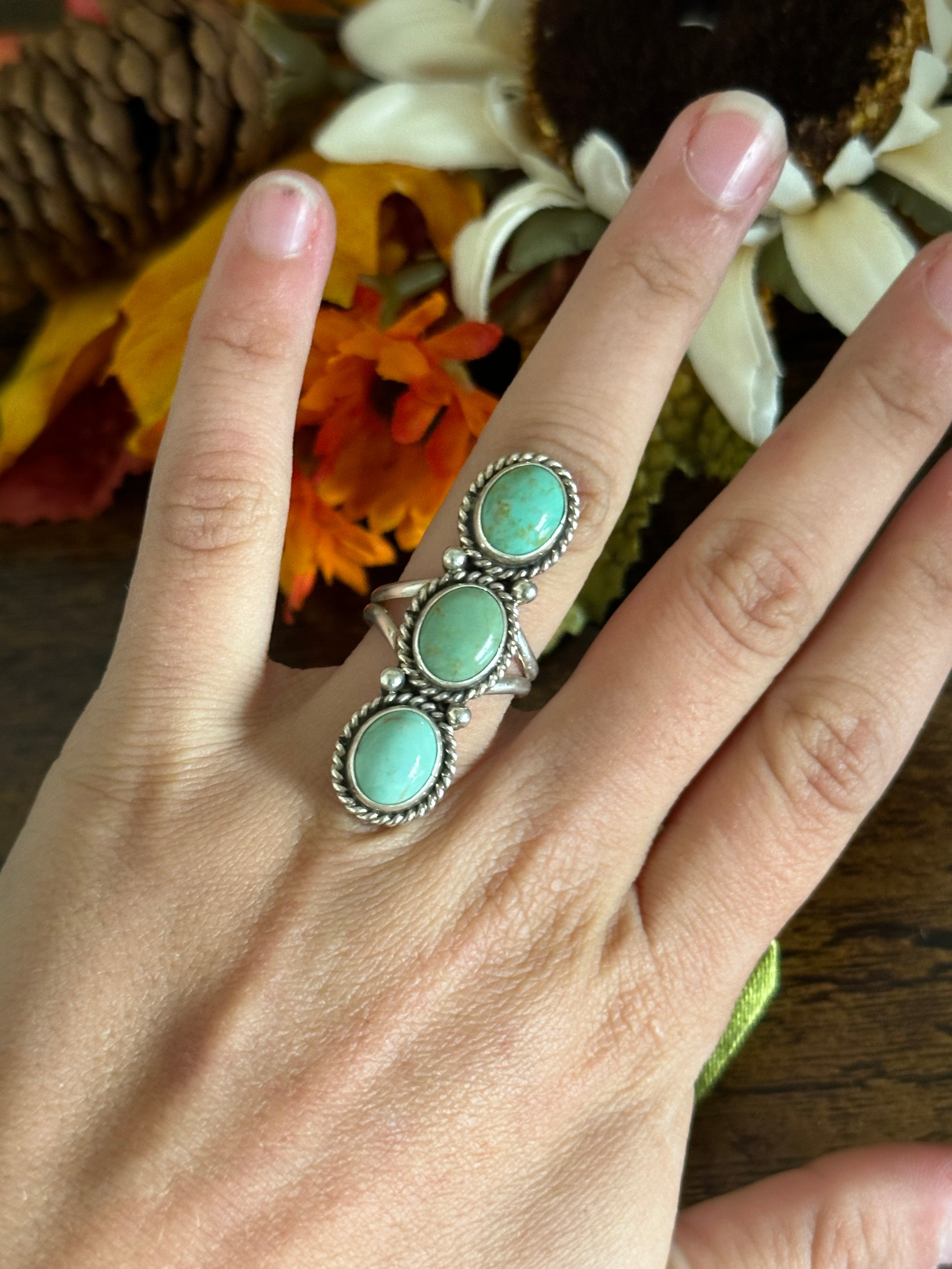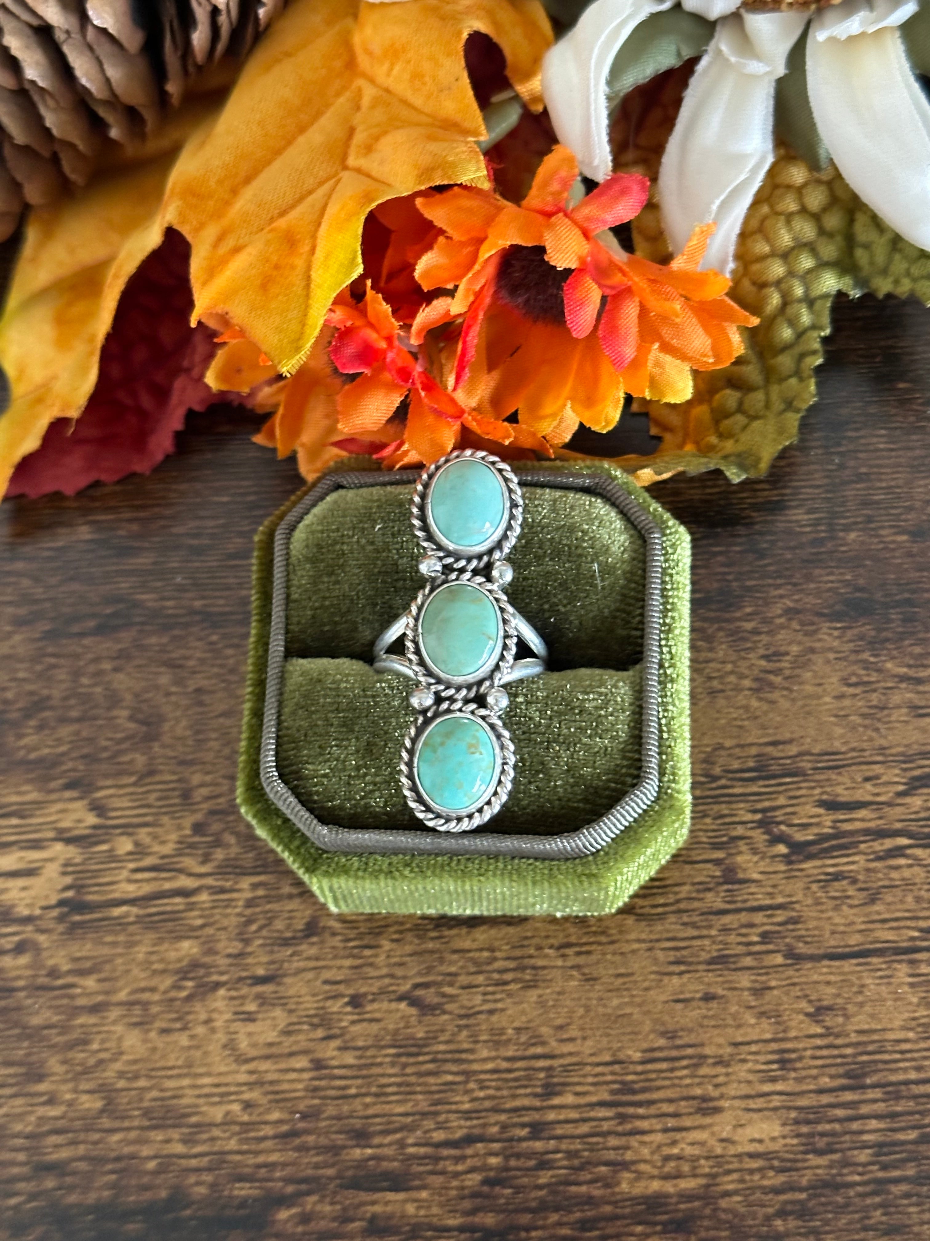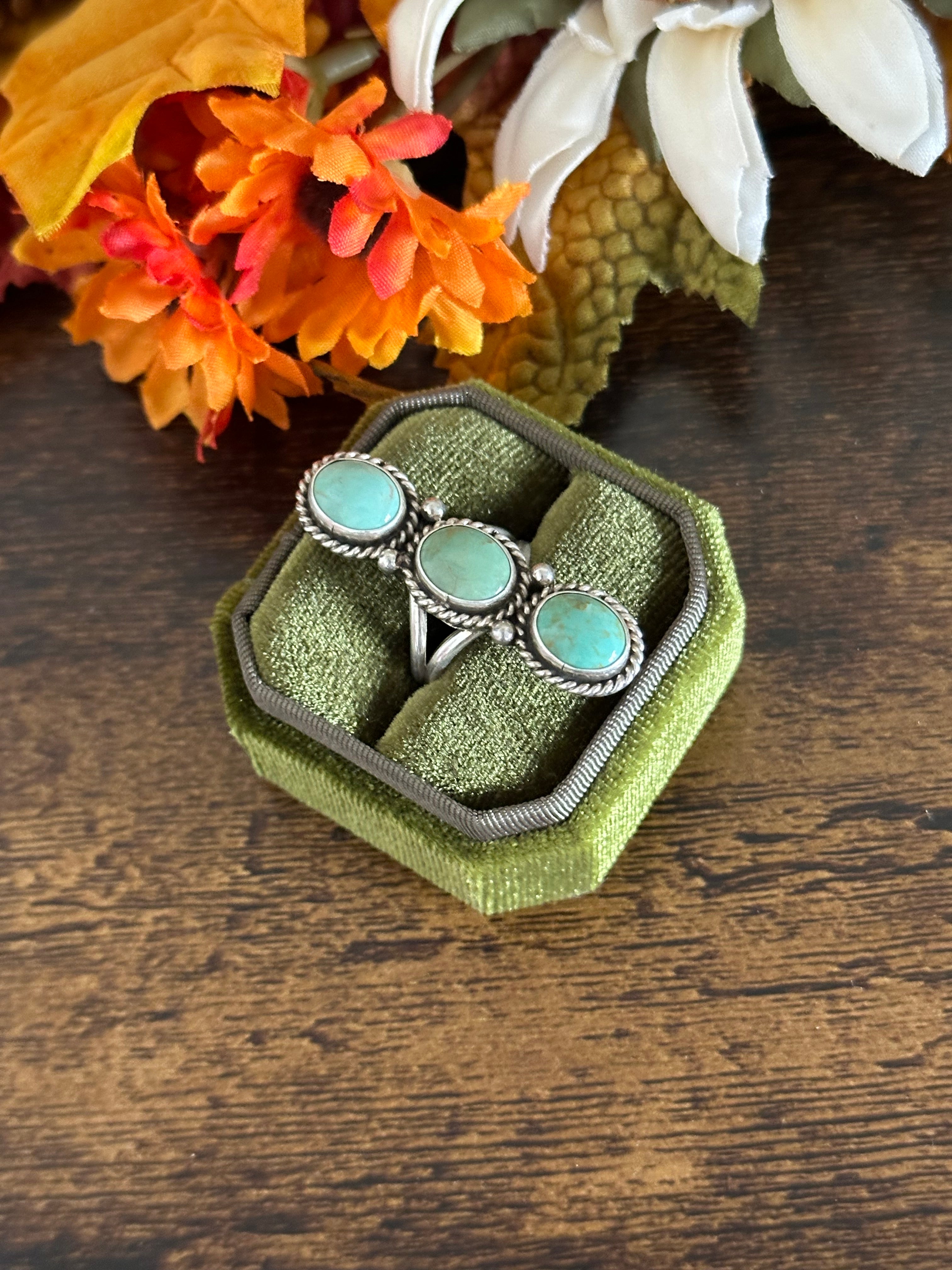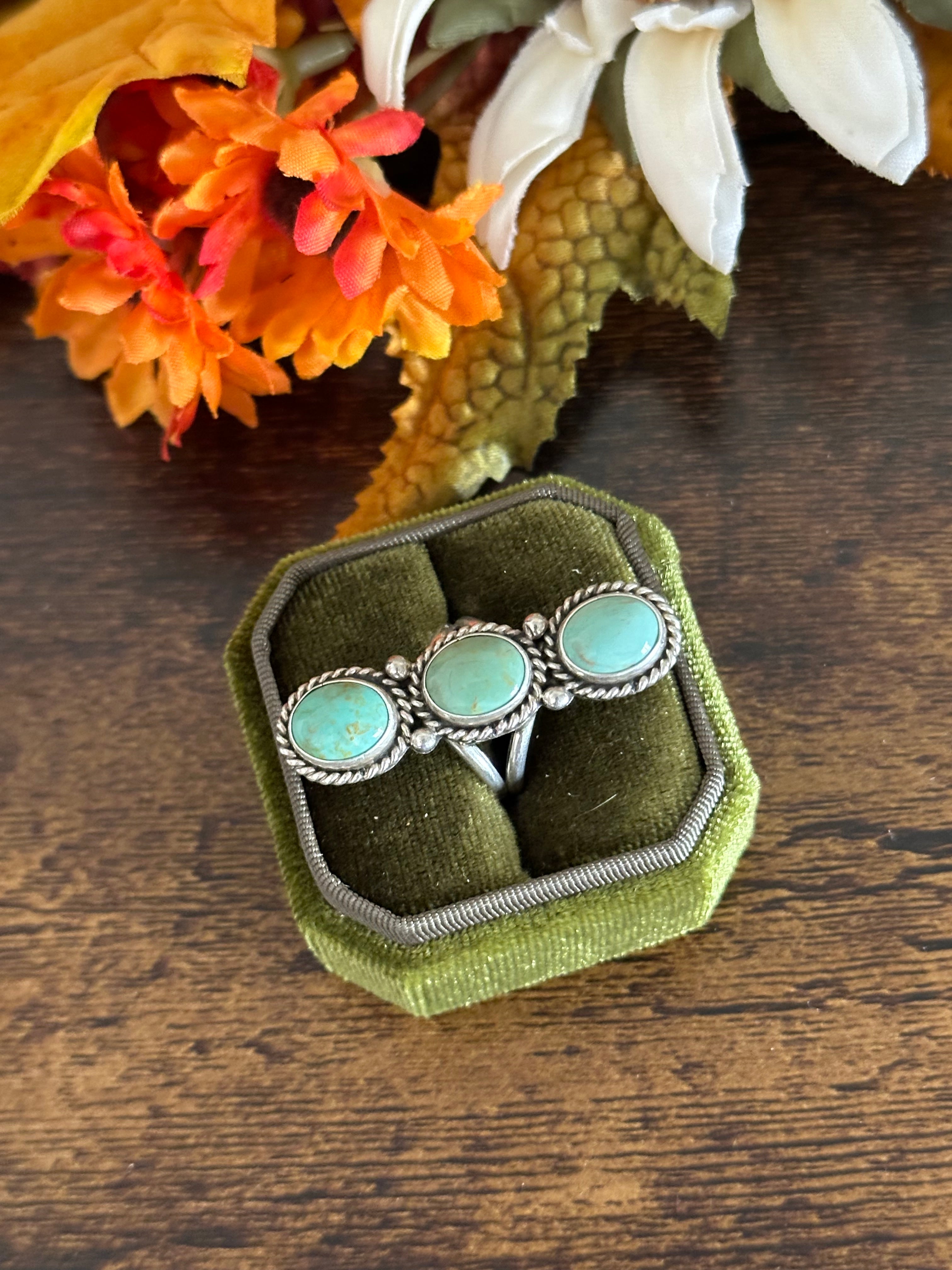 Navajo Made Kingman Turquoise & Sterling Silver Ring Size 7.25