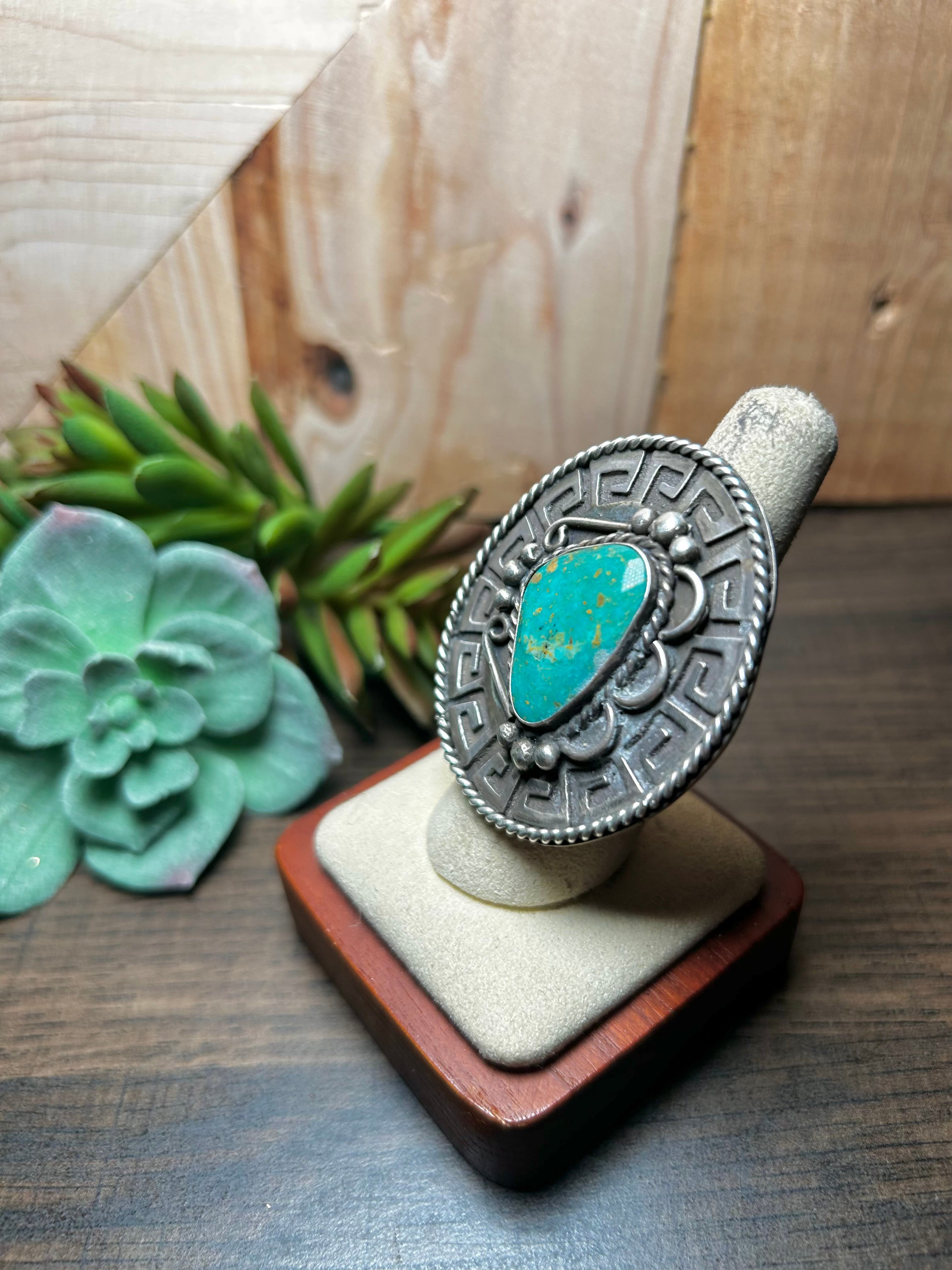 Navajo Made Kingman Turquoise & Sterling Silver Ring Size 7.25