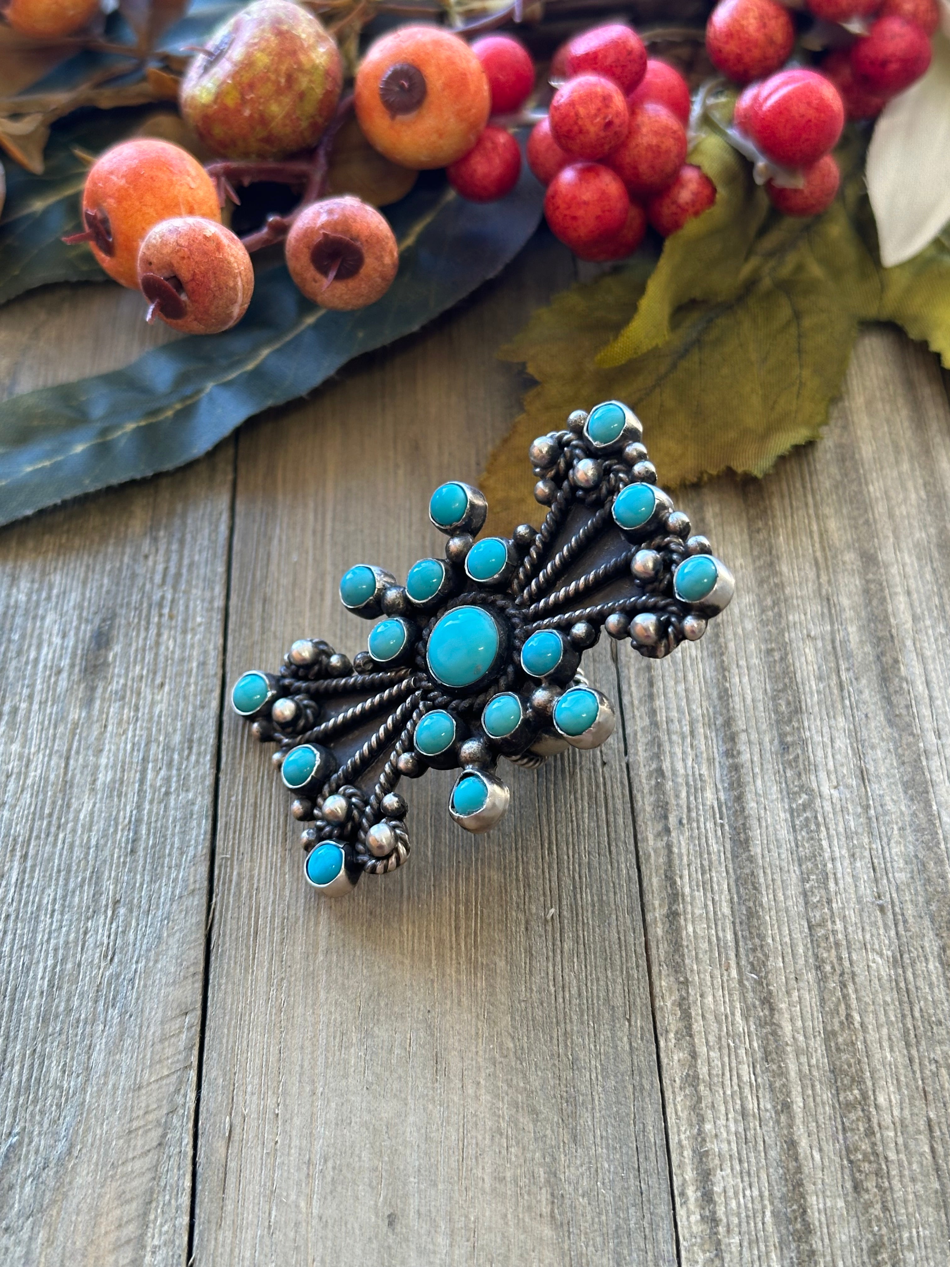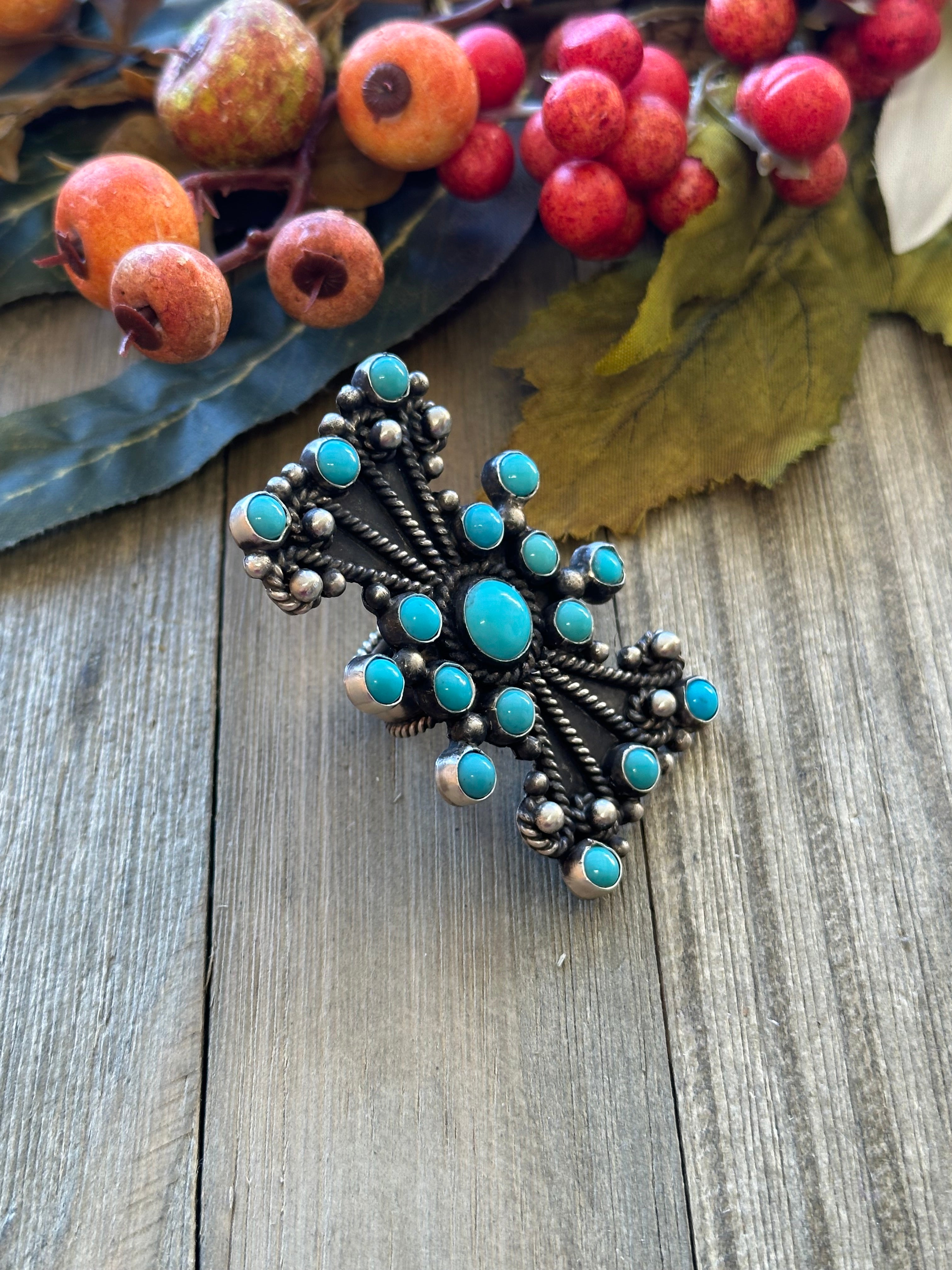 Navajo Made Kingman Turquoise & Sterling Silver Adjustable Ring Size 8