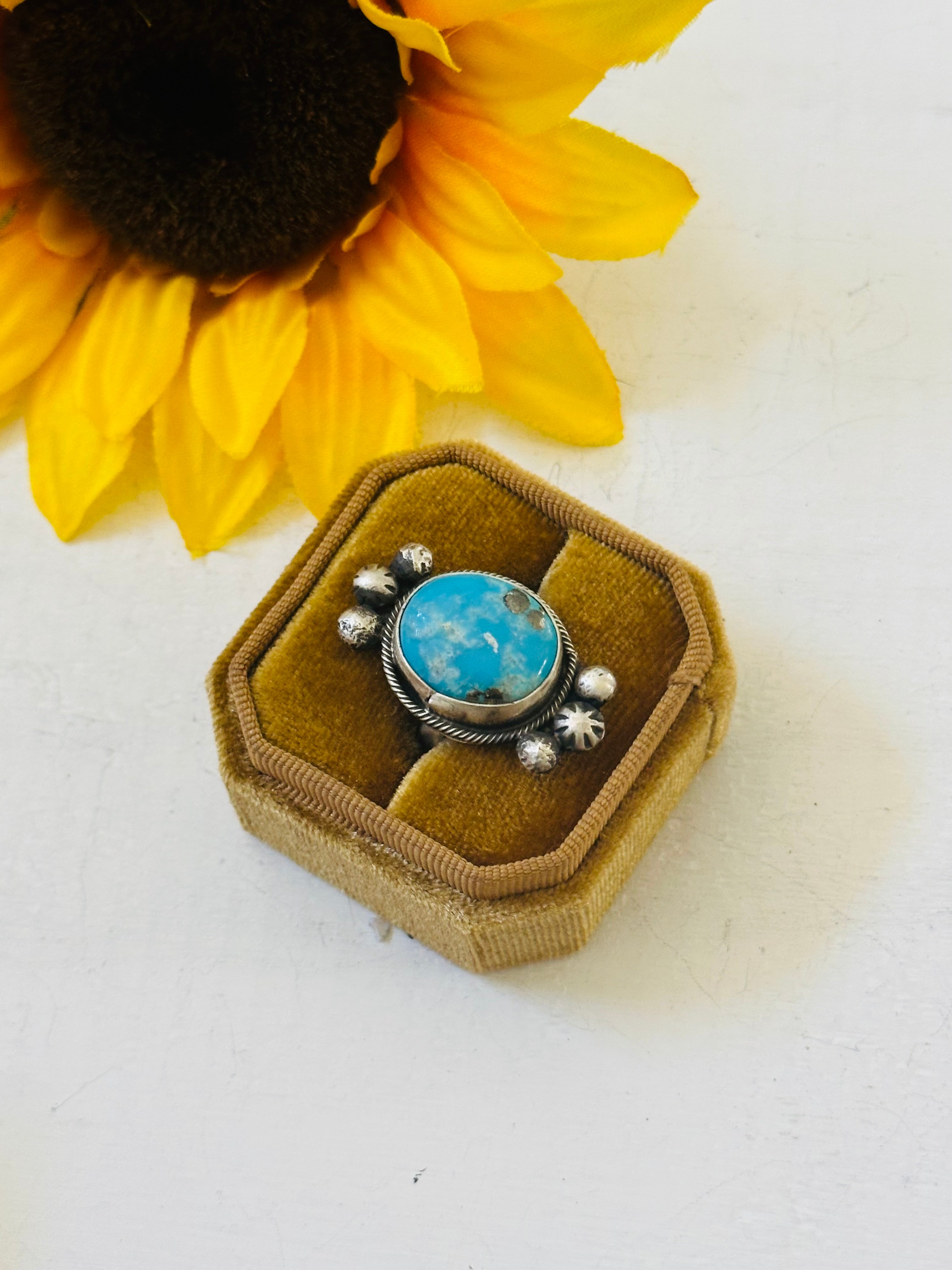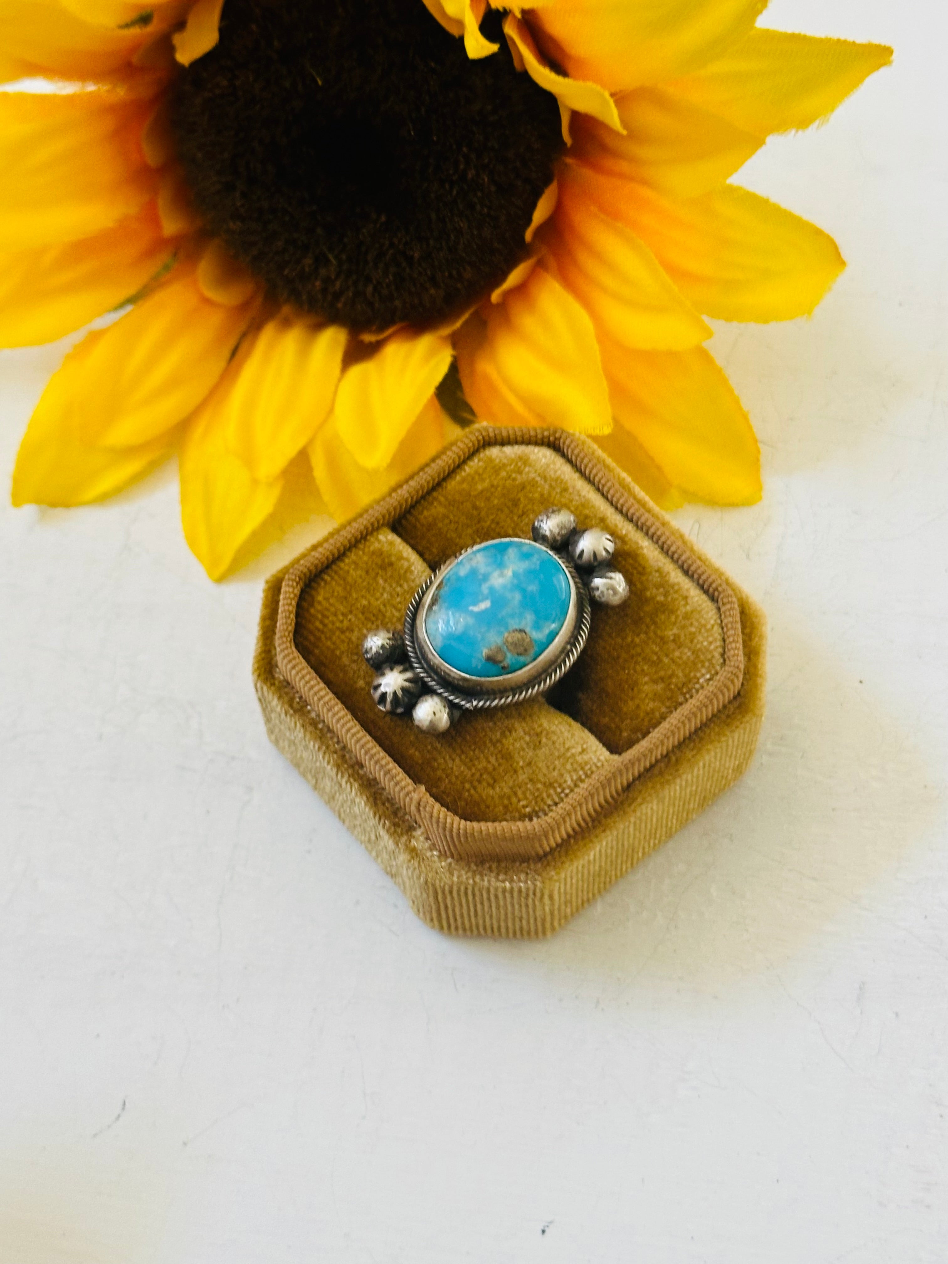 Navajo Made Kingman Turquoise & Sterling Silver Ring Size 4.75