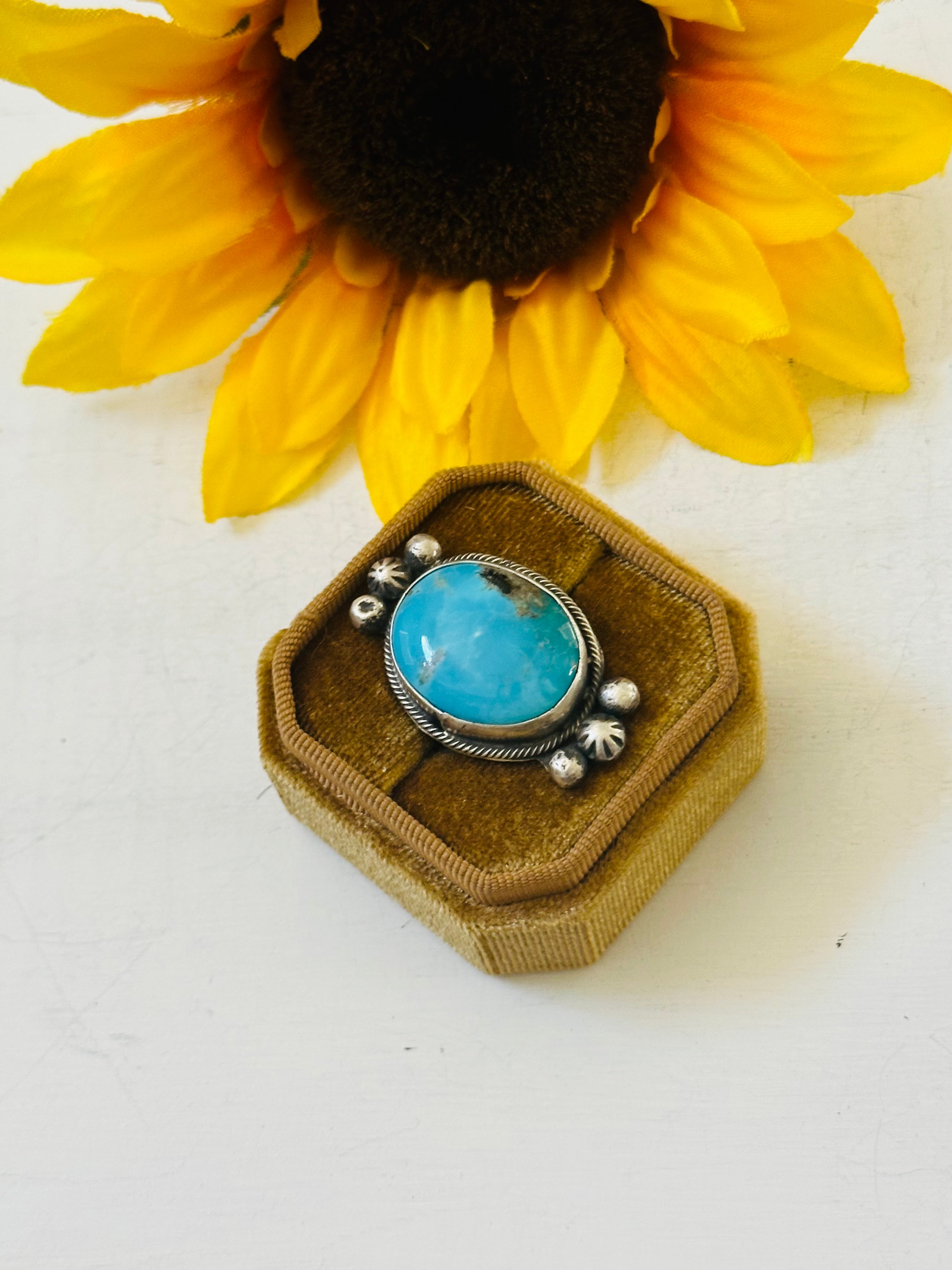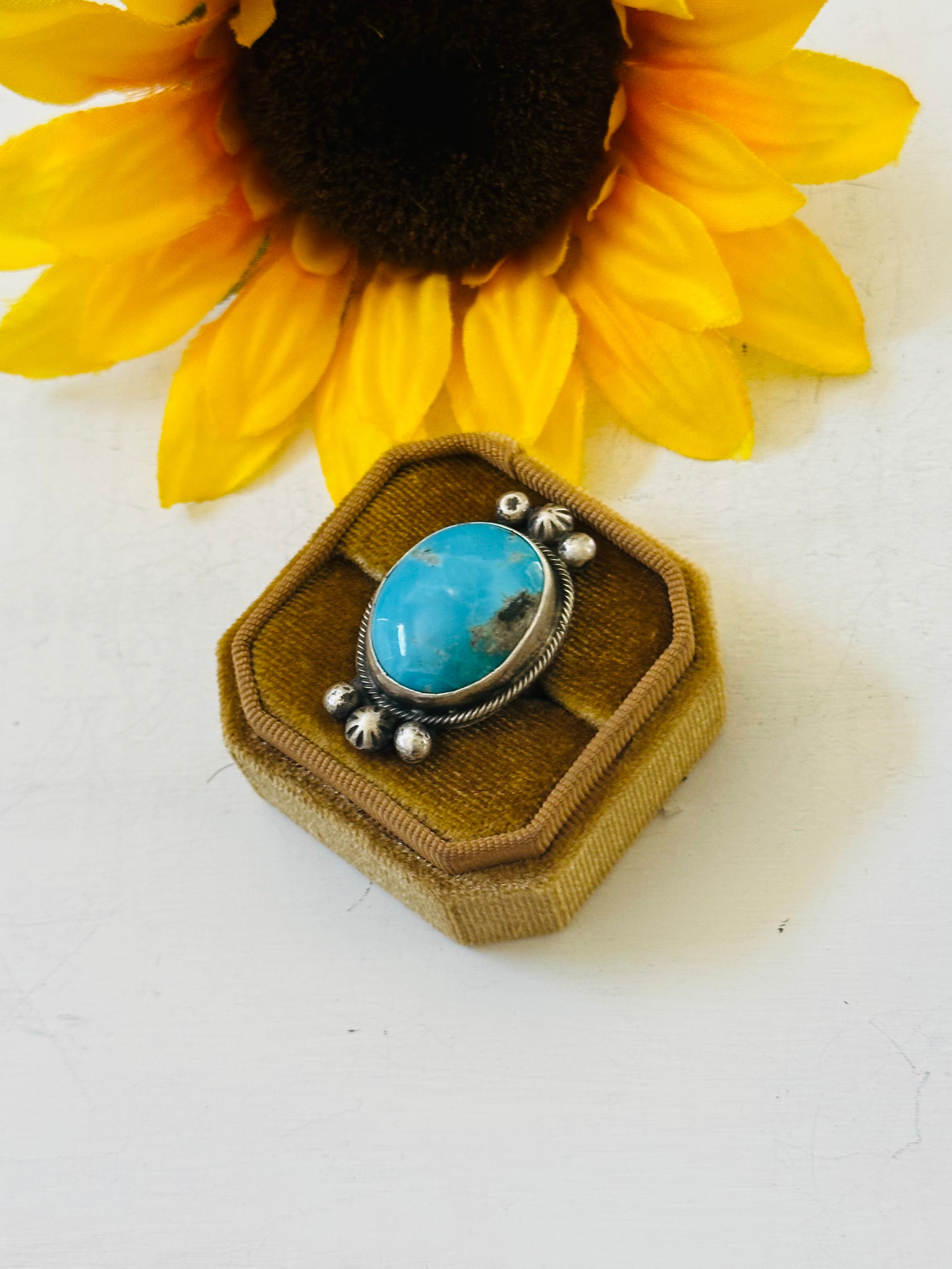 Navajo Made Kingman Turquoise & Sterling Silver Ring Size 4.25