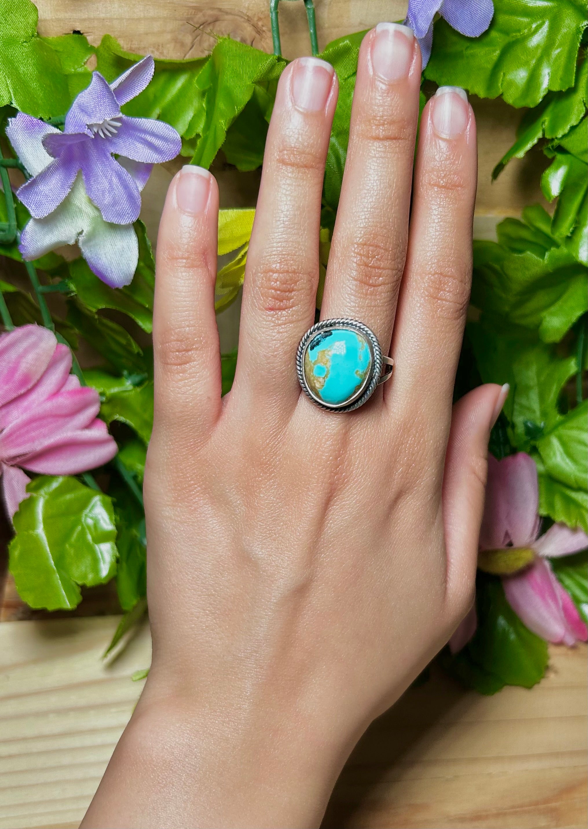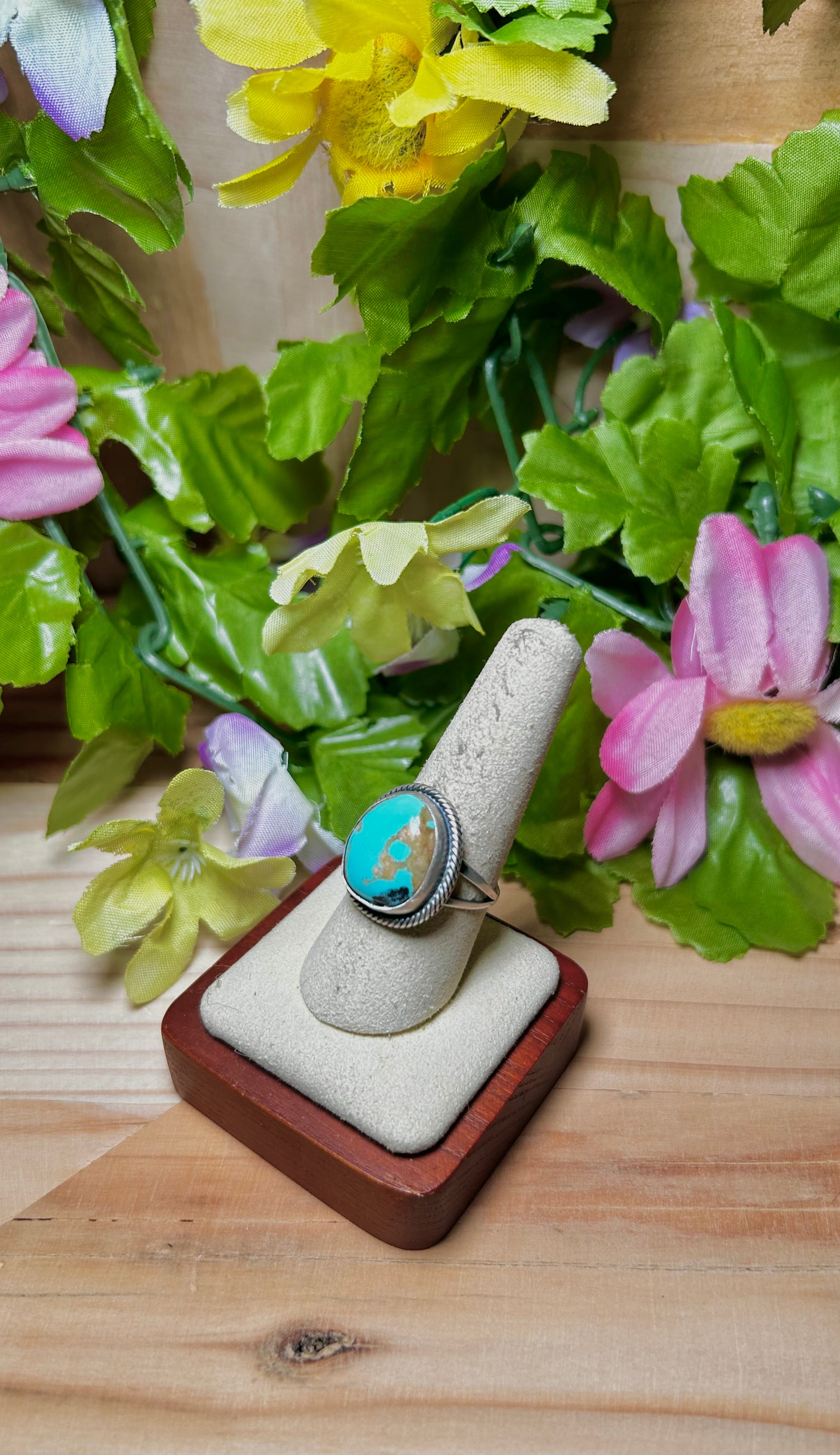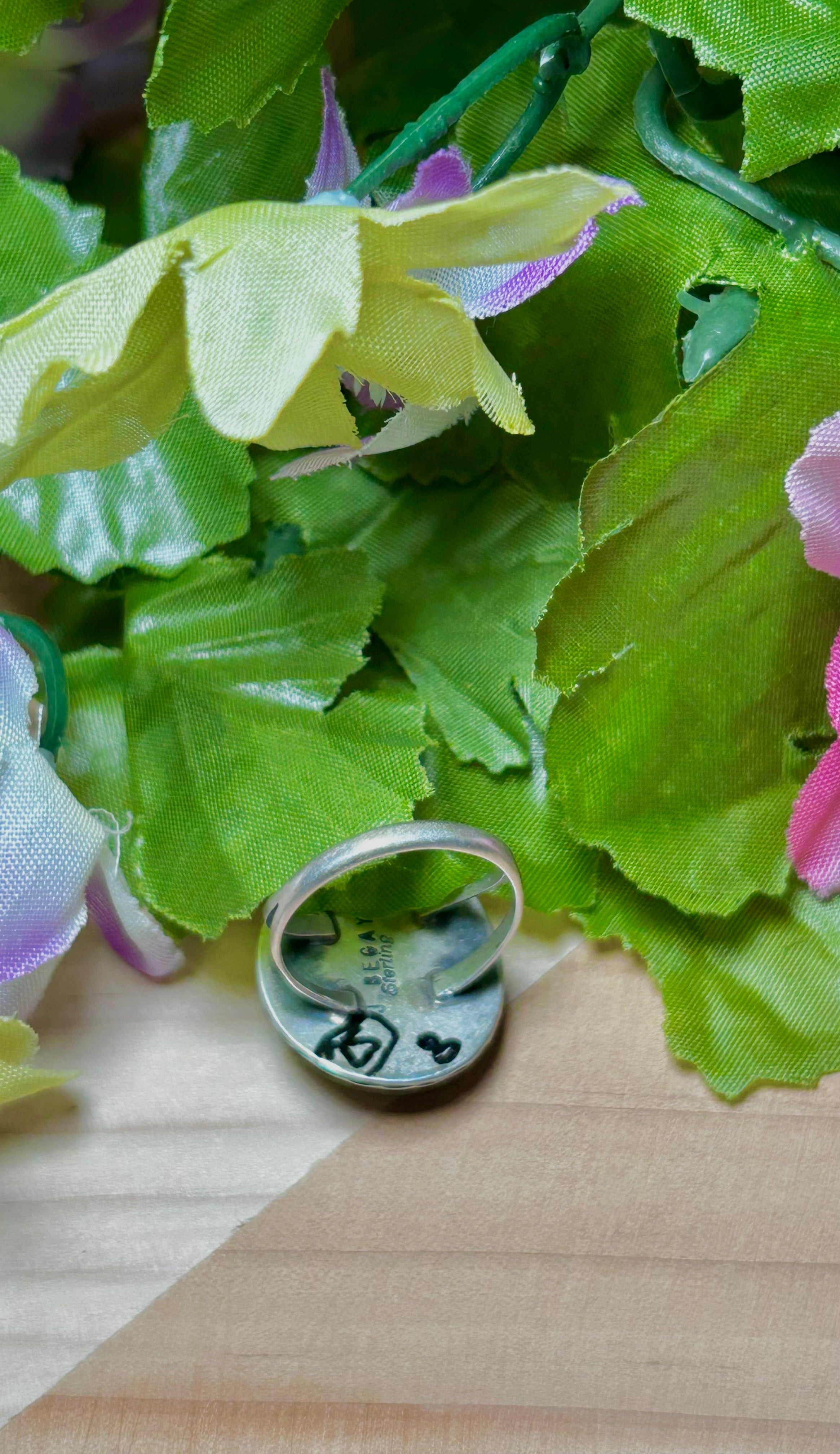 Navajo Made Kingman Turquoise & Sterling Silver Ring Size 9