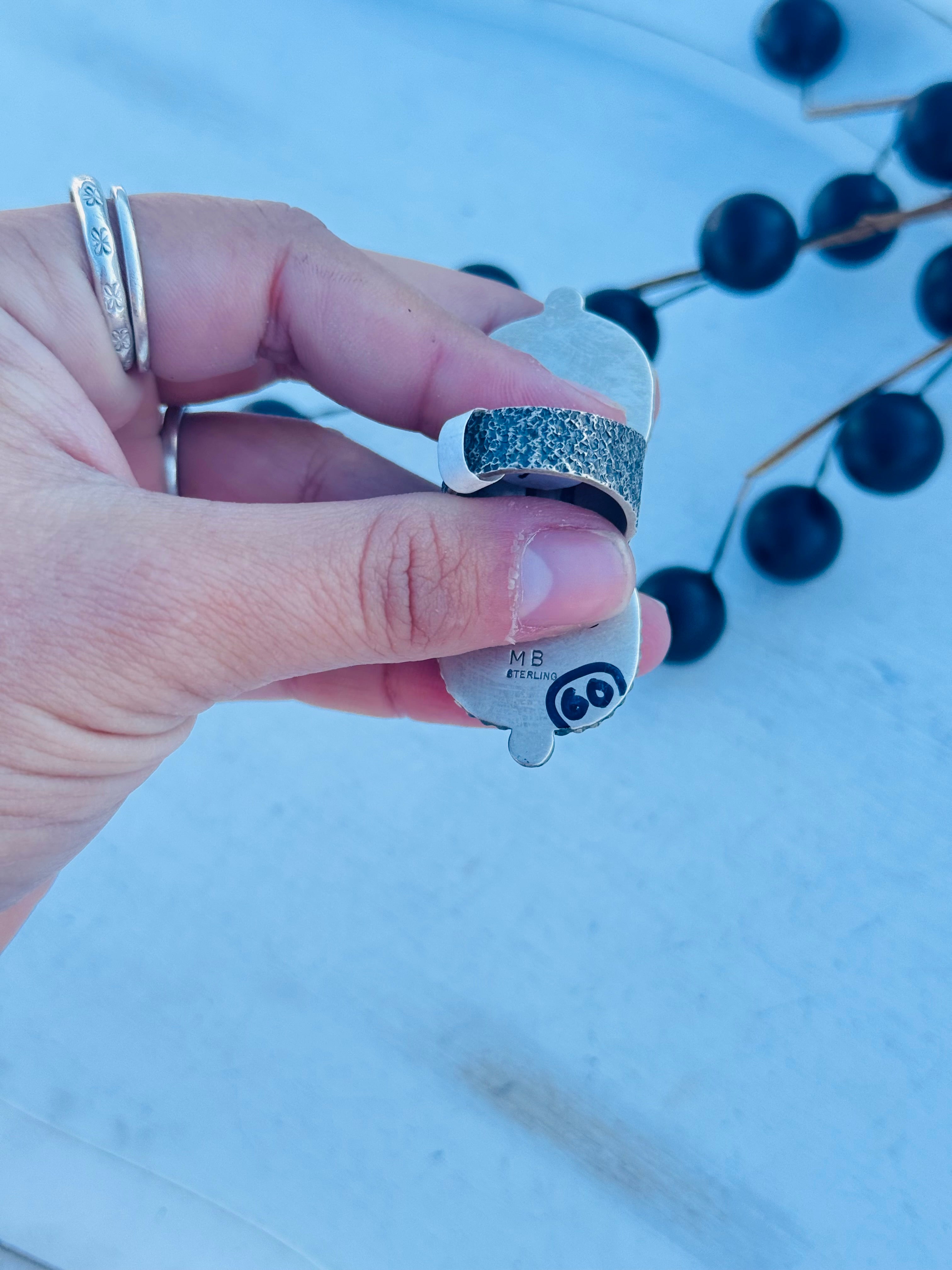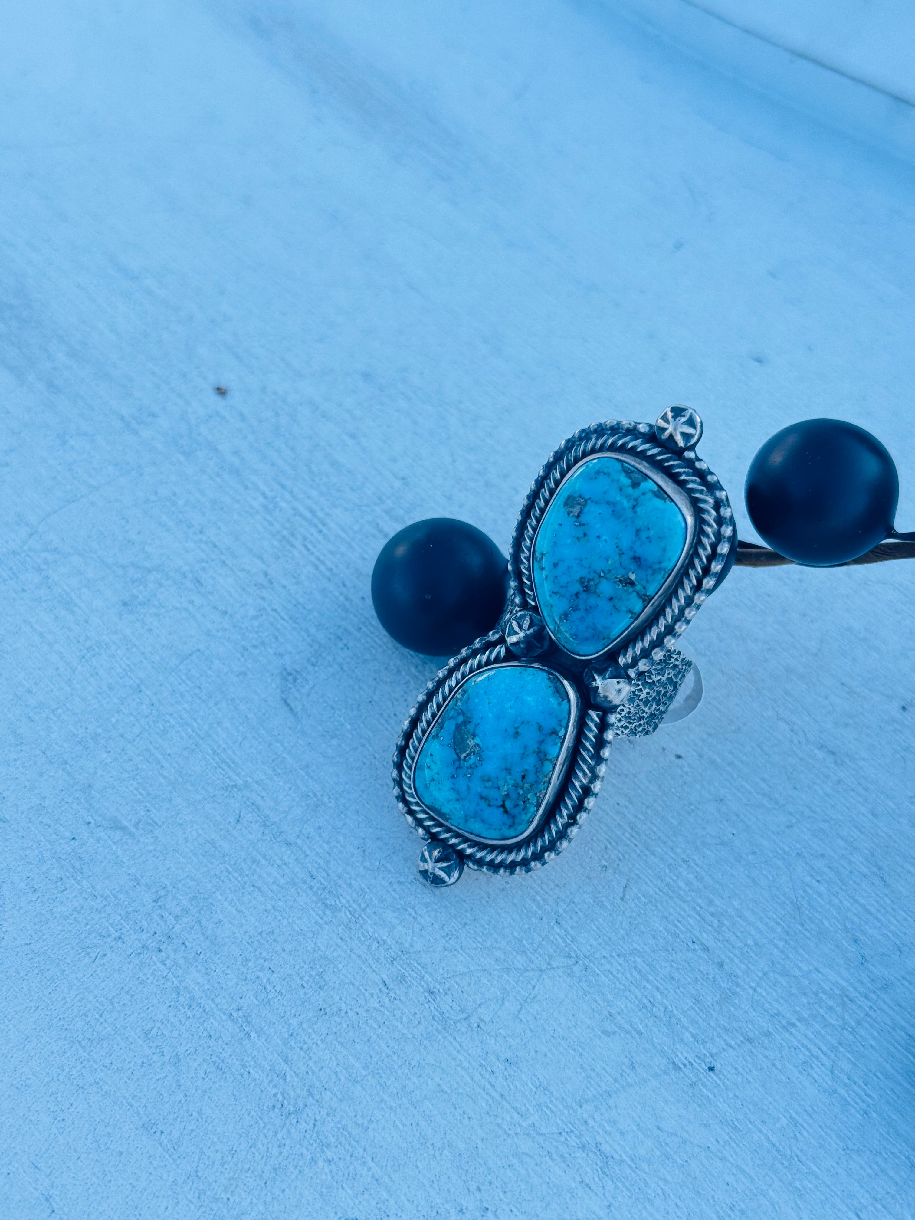 Navajo Made High Grade Kingman Turquoise & Sterling Silver Ring Size 8.5