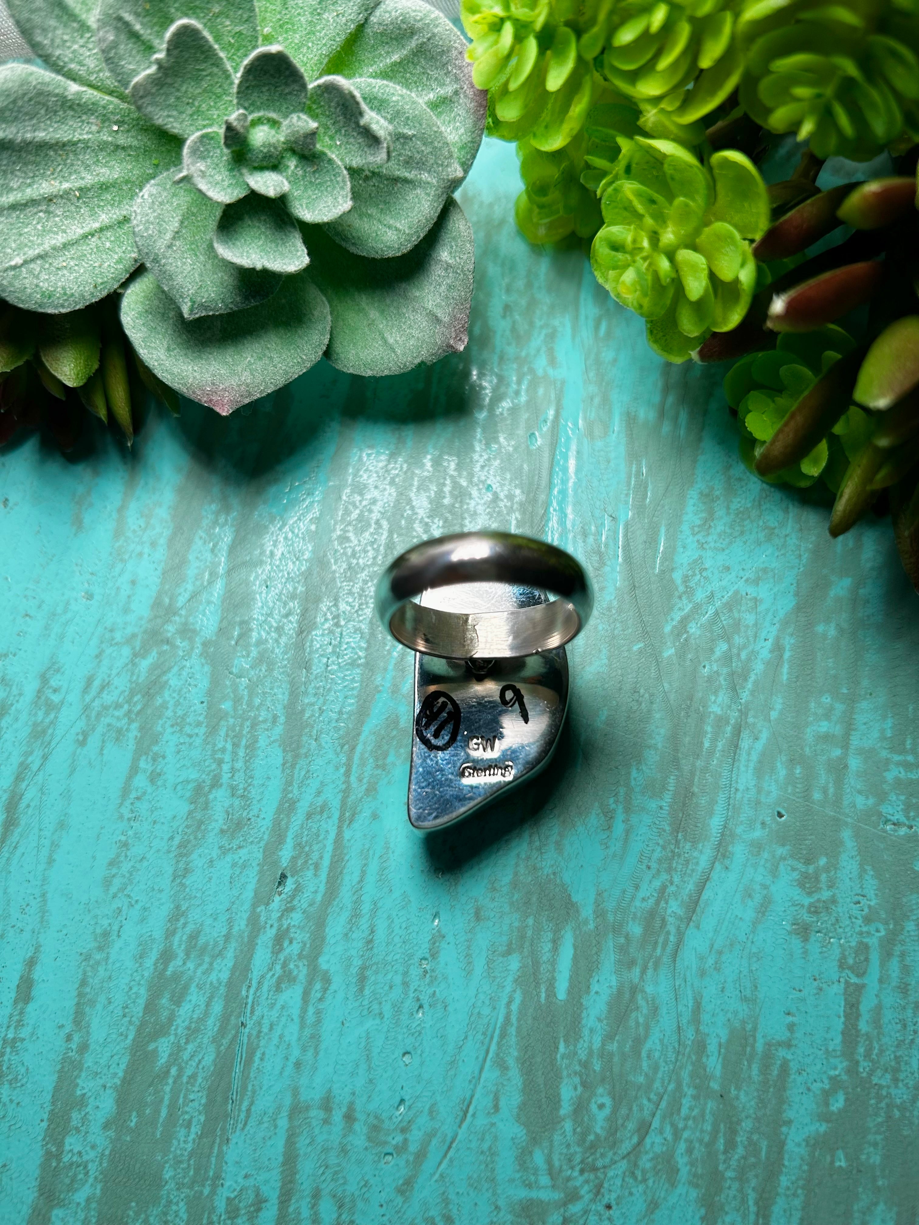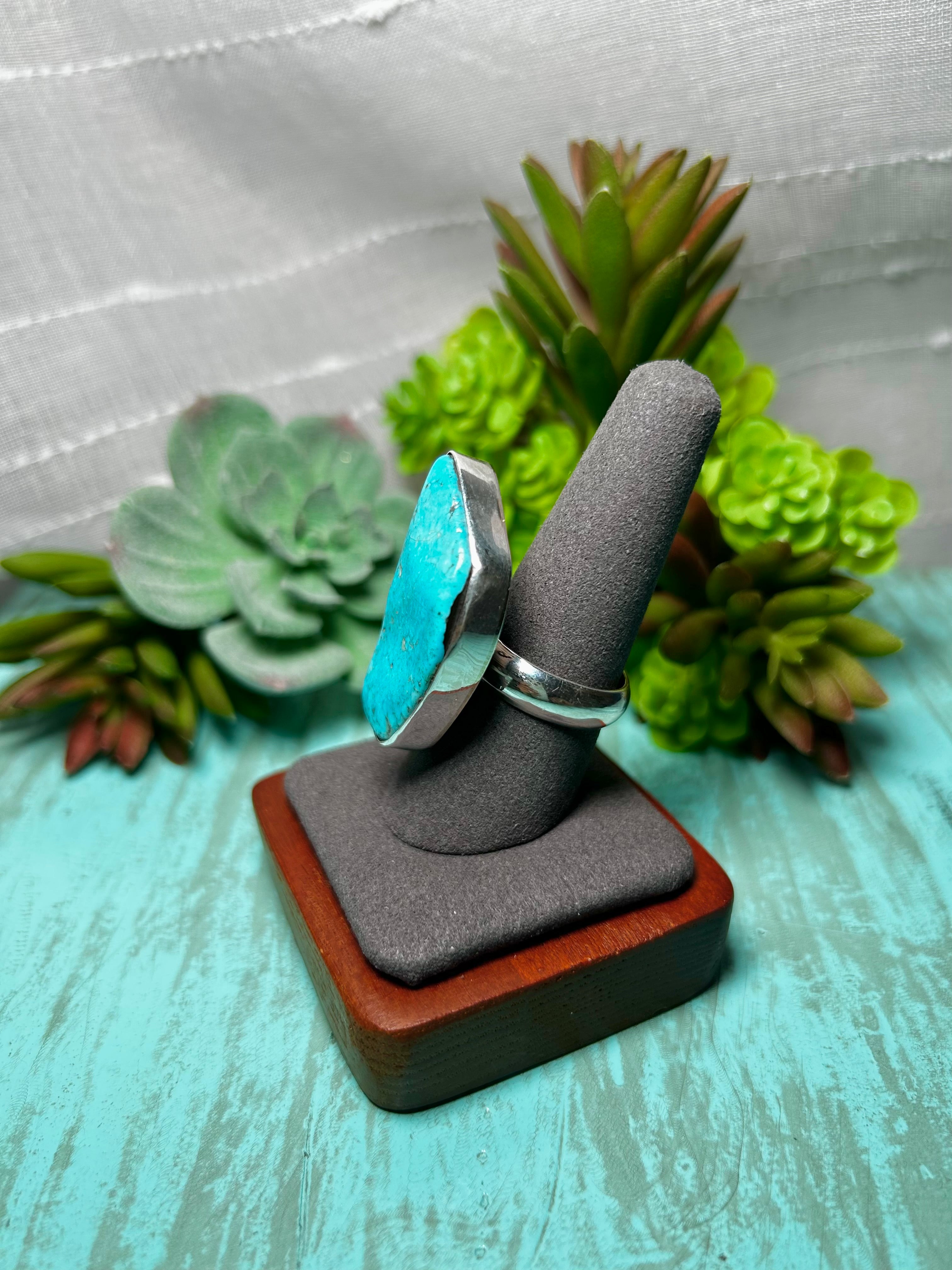 Navajo Made Kingman Turquoise & Sterling Sliver Ring Size 9
