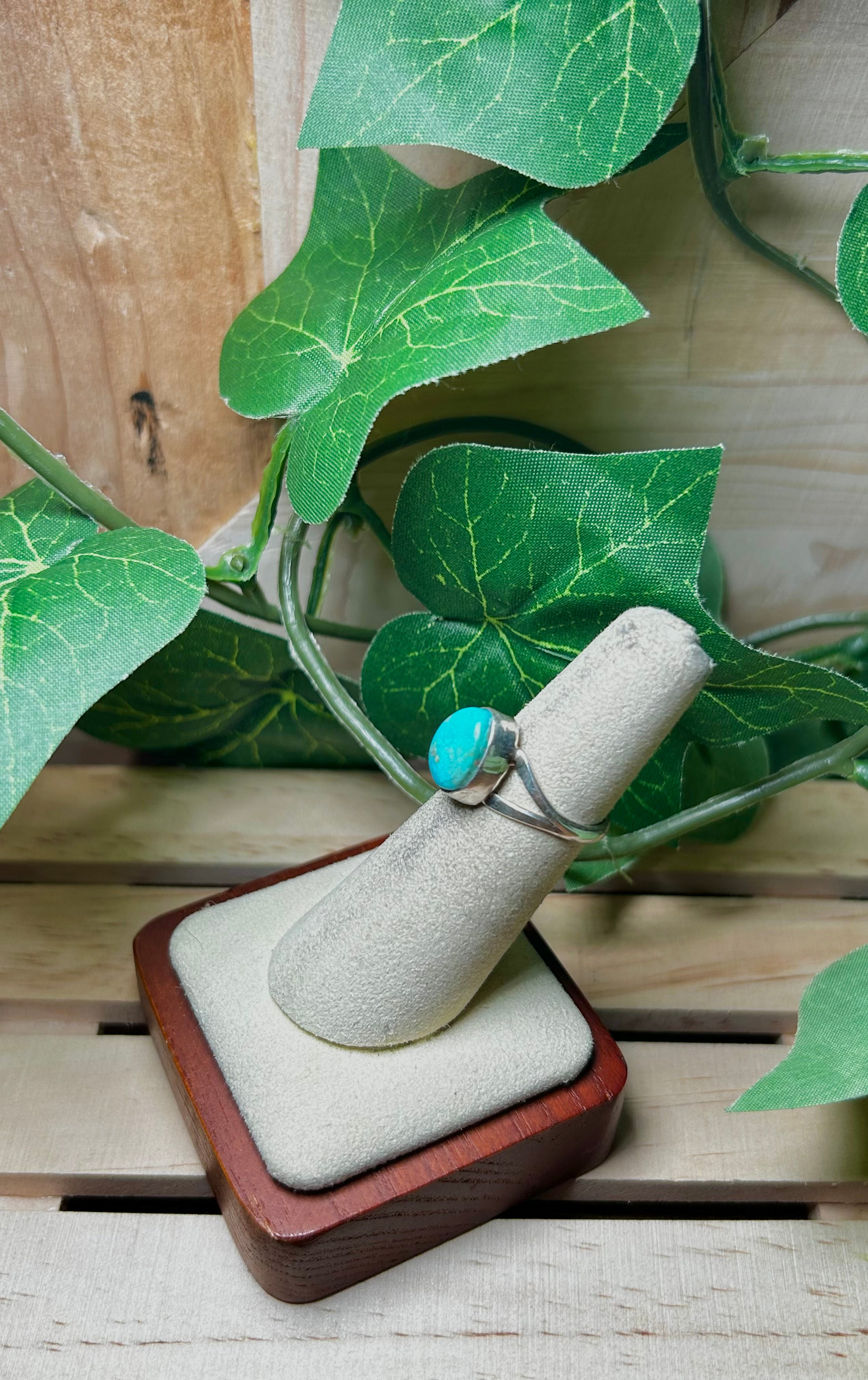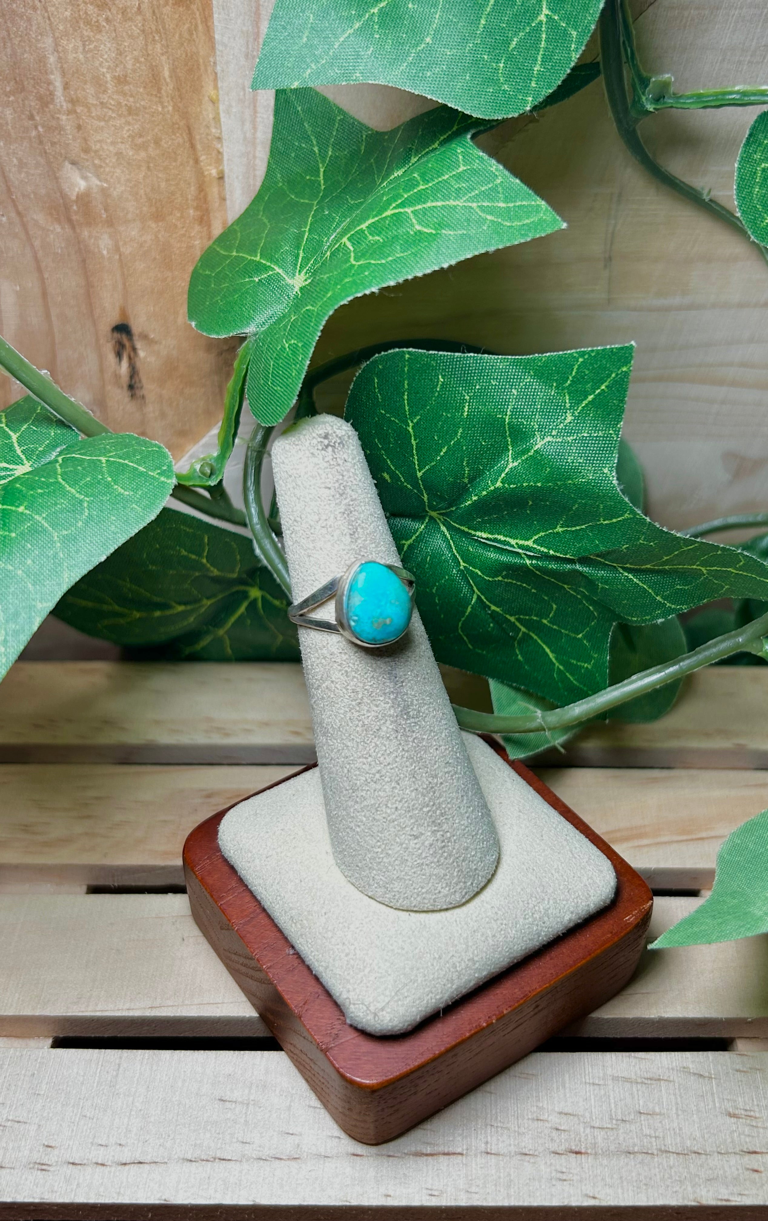 Navajo Made Kingman Turquoise & Sterling Sliver Cluster Ring Size 5. It measures 1/2 of an inch long and 3/8 of an inch wide. Signed by the artist and stamped sterling silver.