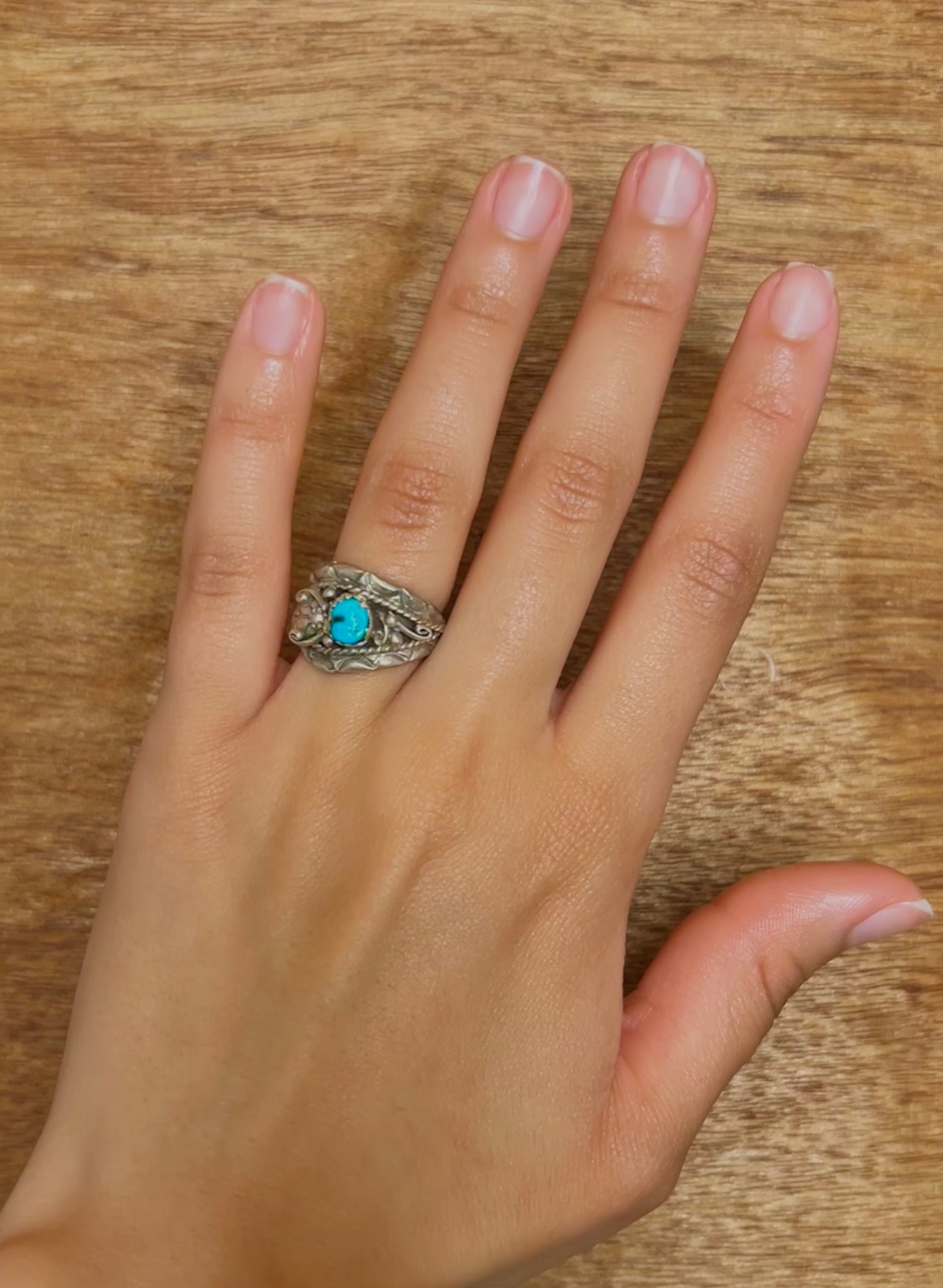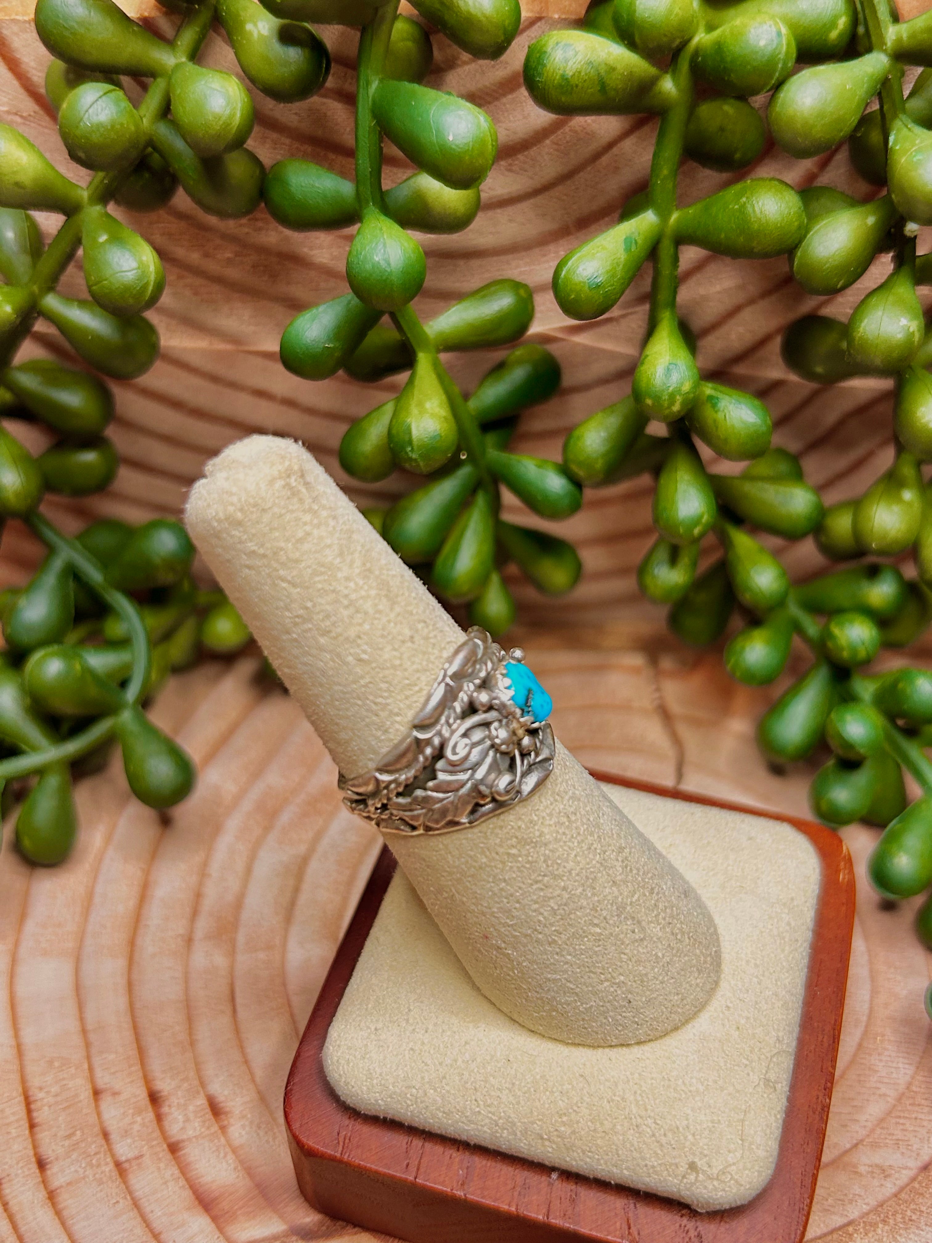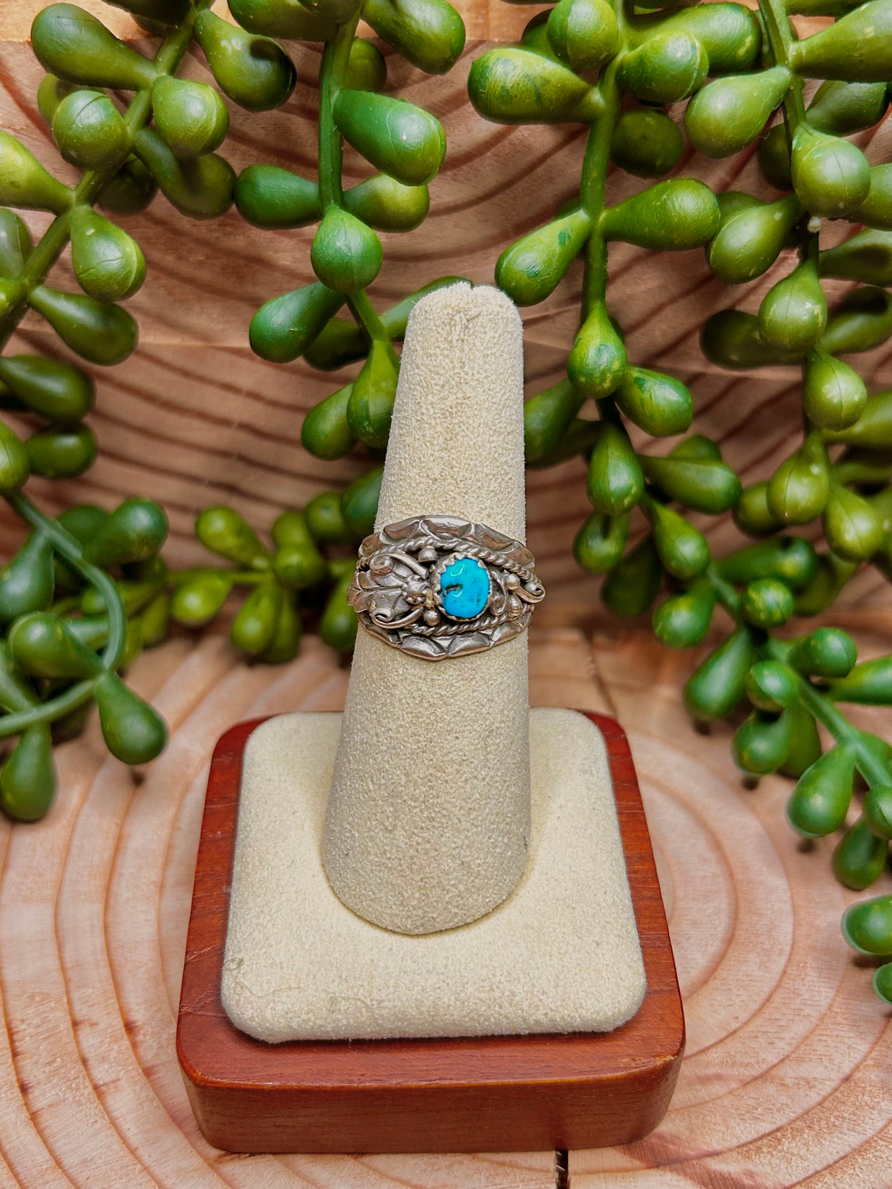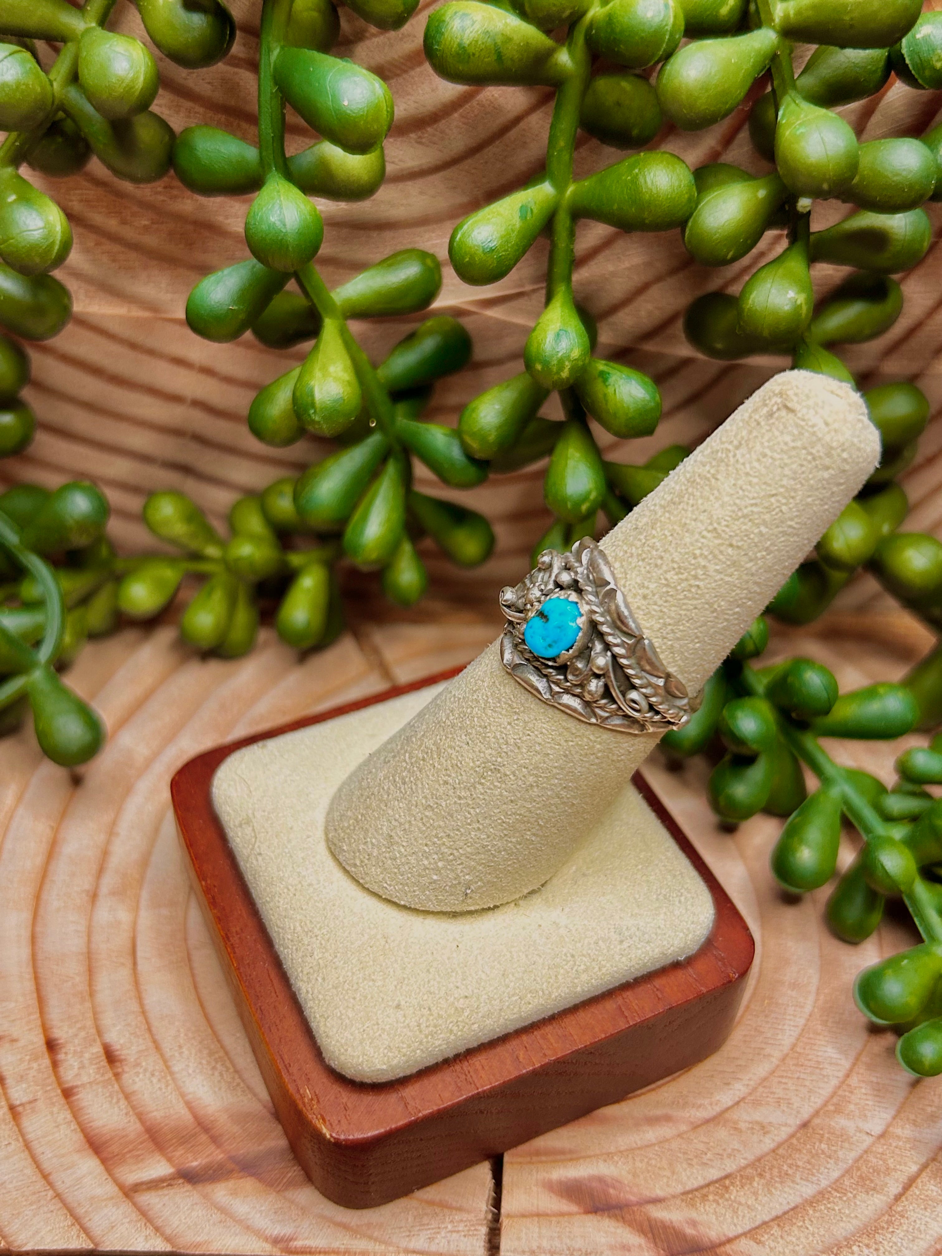 Navajo Made Kingman Turquoise & Sterling Sliver Ring Size 6.25