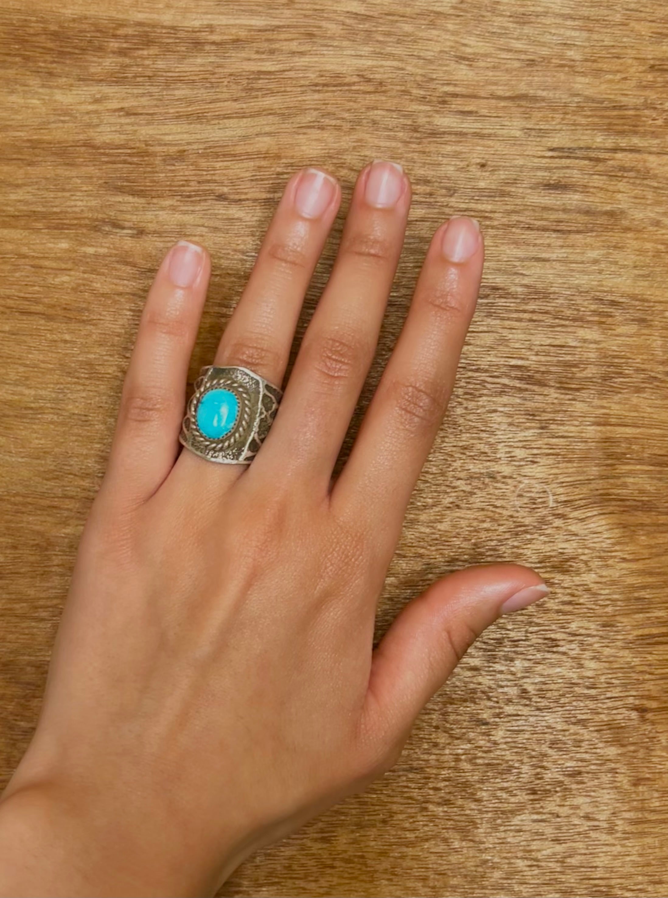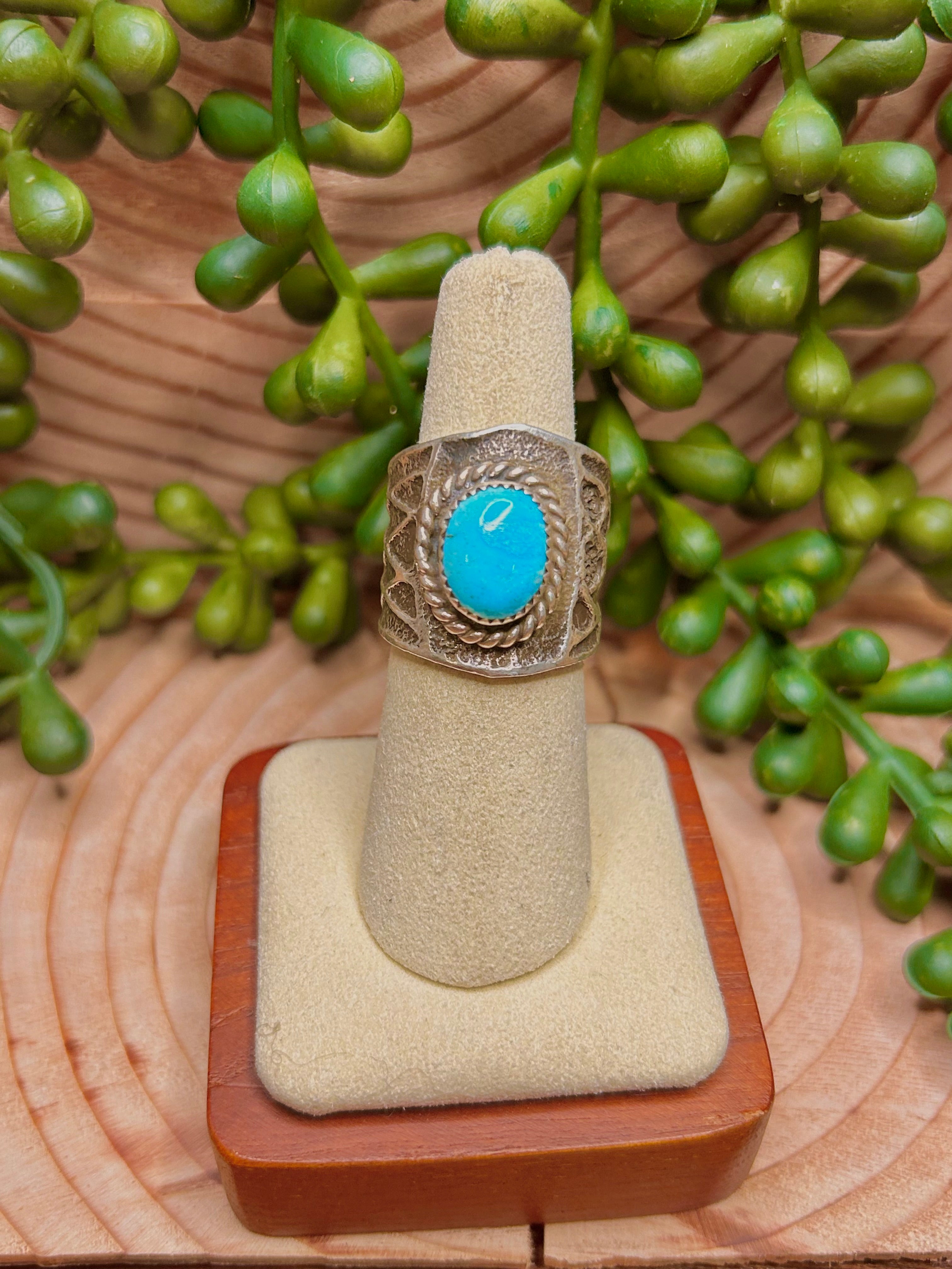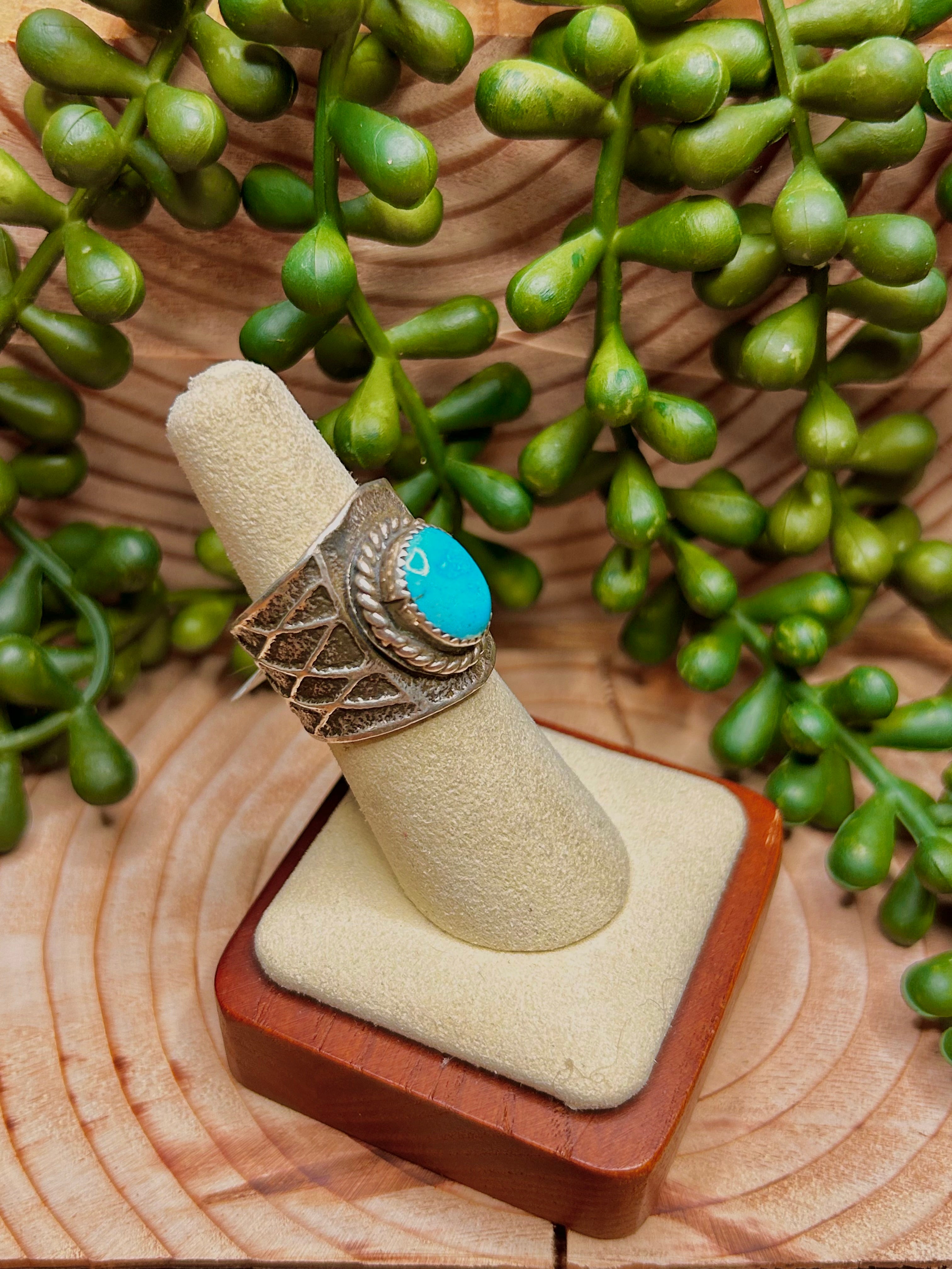 Navajo Made Kingman Turquoise & Sterling Sliver Ring Size 7
