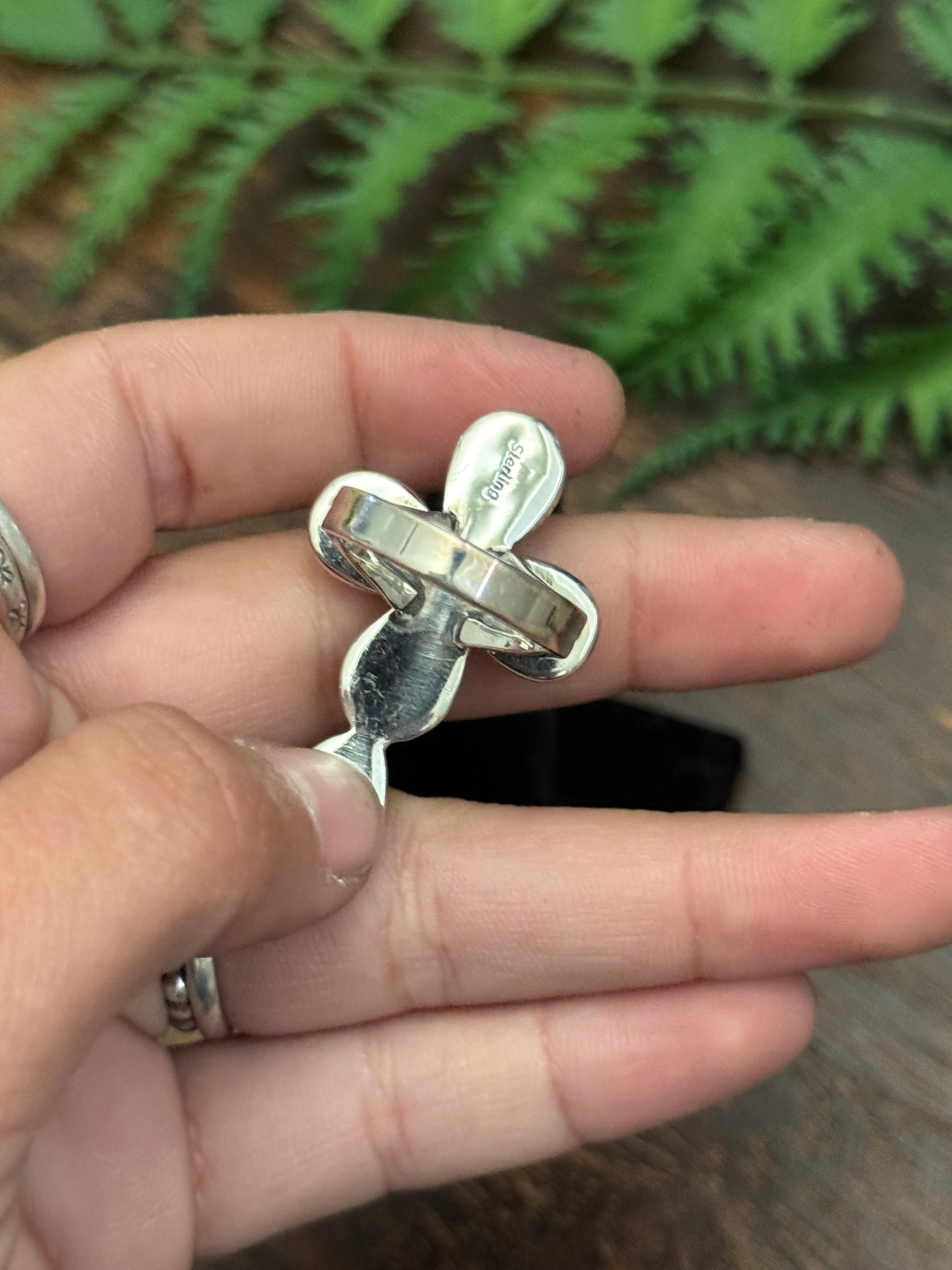 Navajo Made Mohave Kingman Turquoise & Sterling Silver Cross Ring