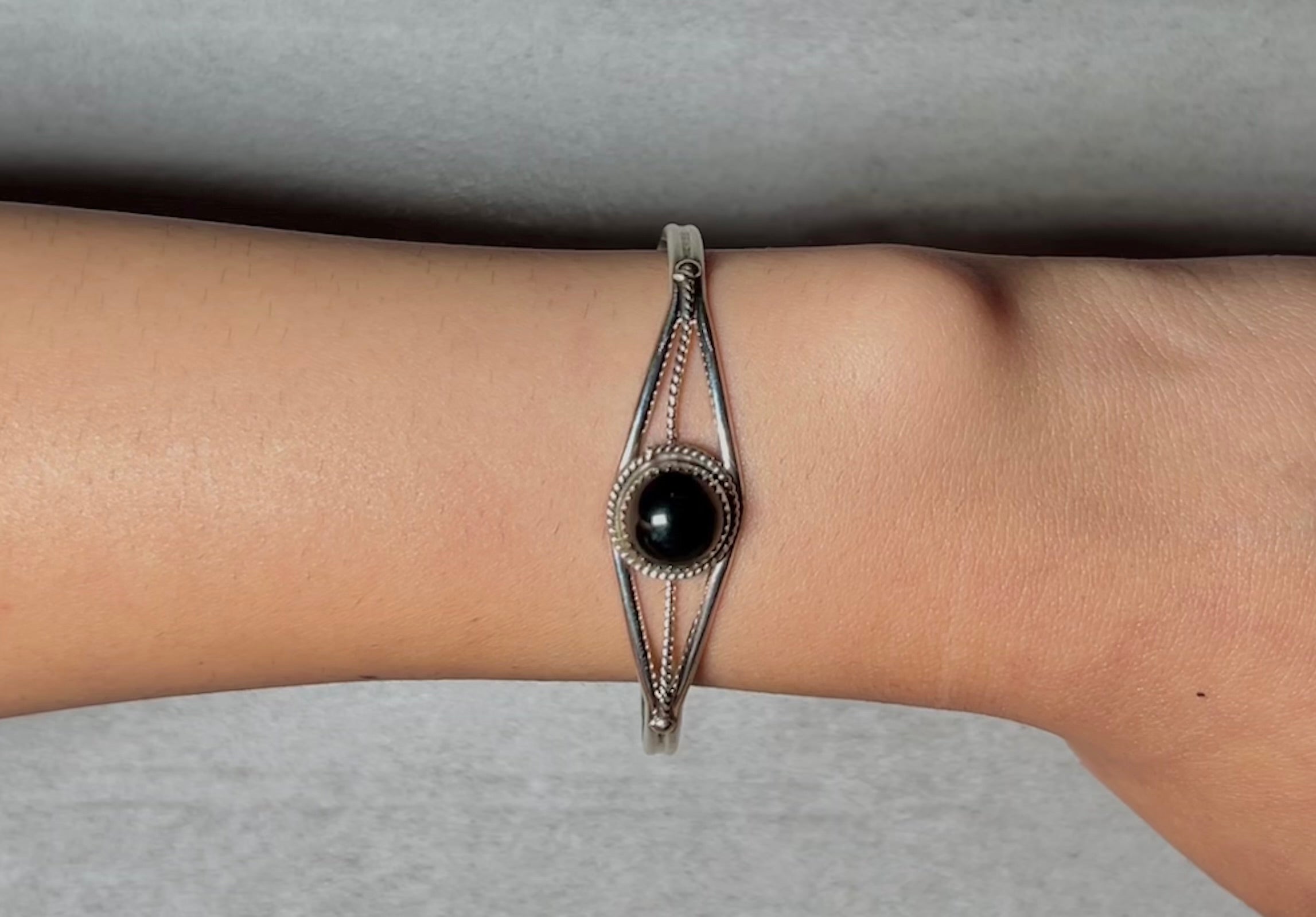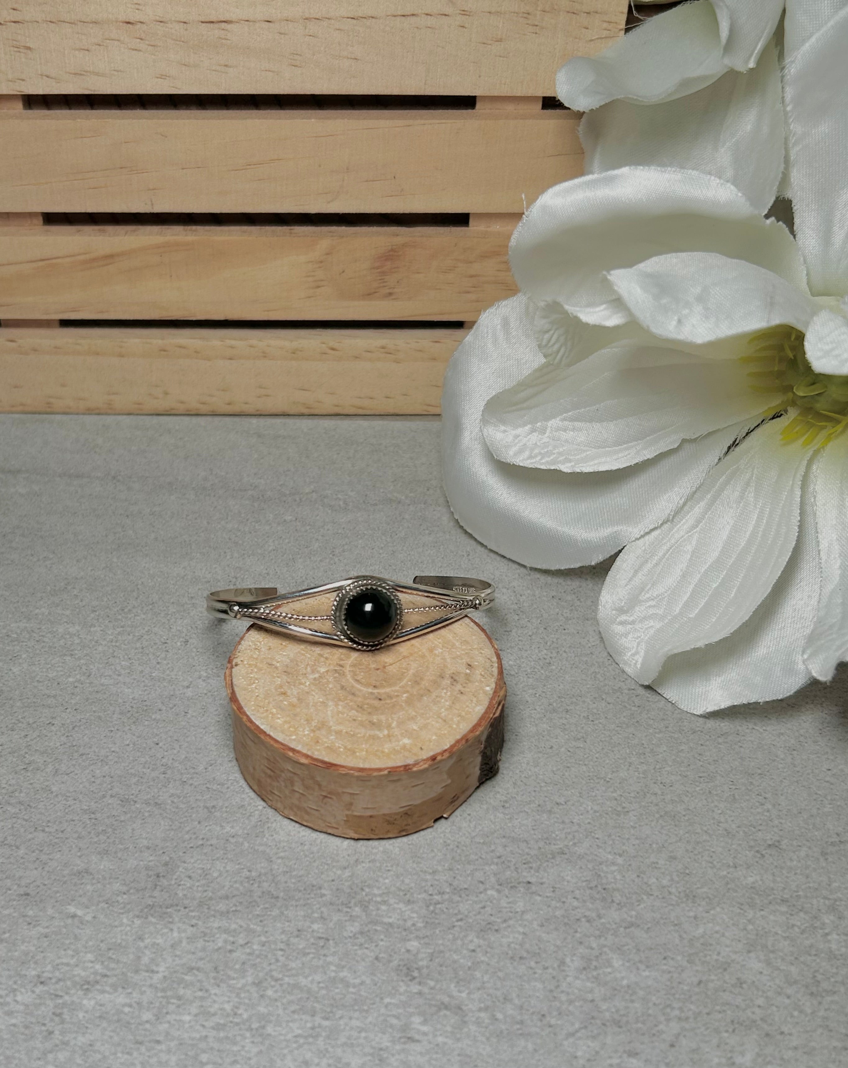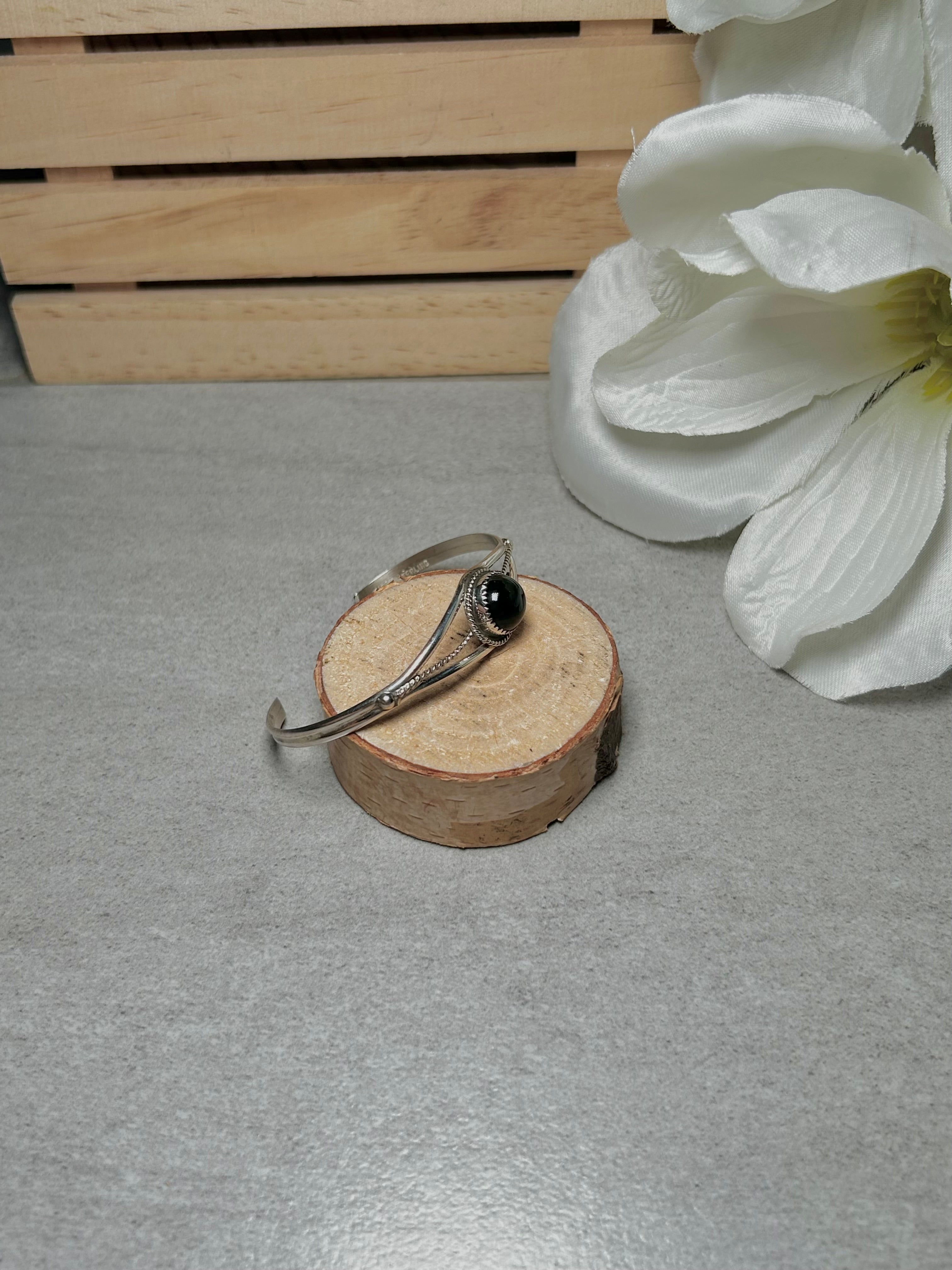 Navajo Made Onyx & Sterling Silver Cuff Bracelet