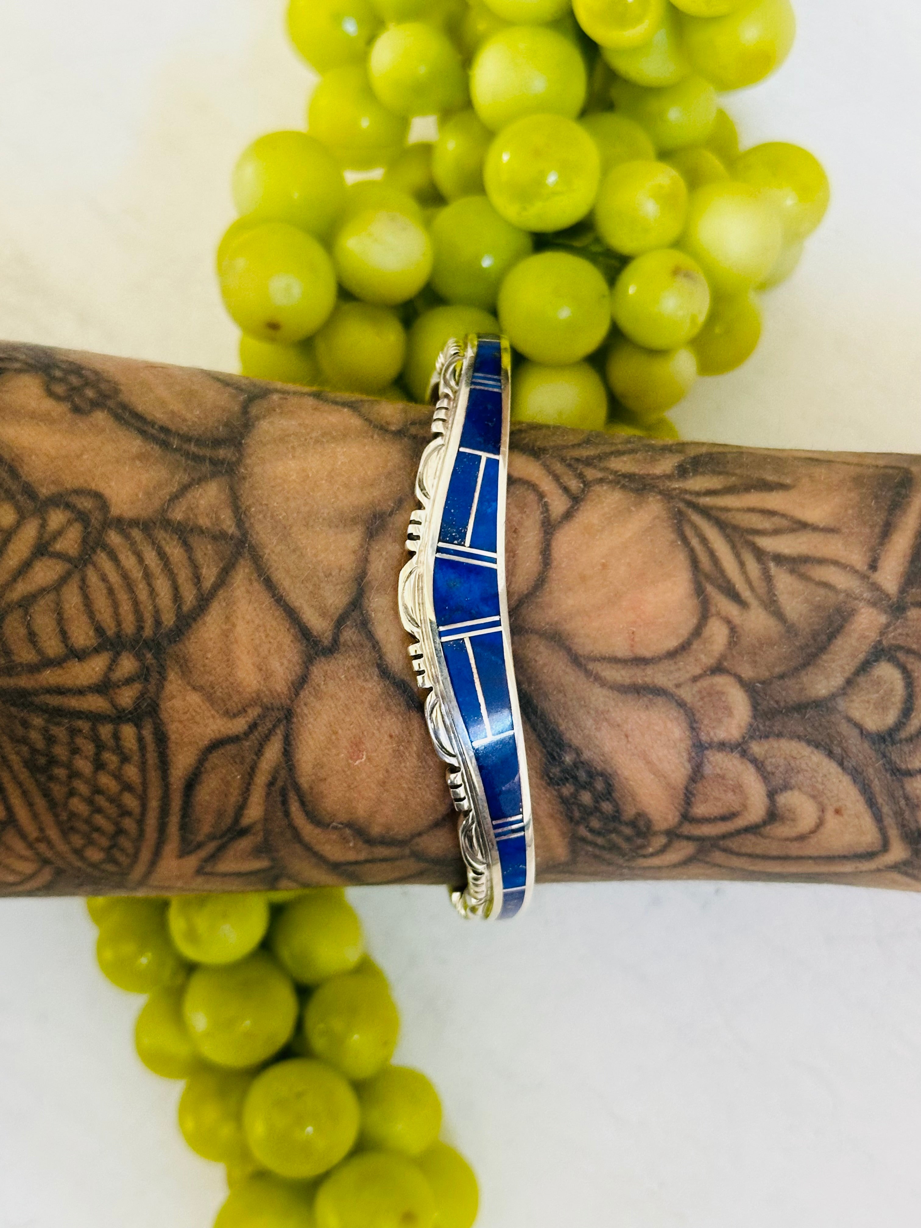 Alice Thompson Lapis & Sterling Silver Inlay Cuff Bracelet
