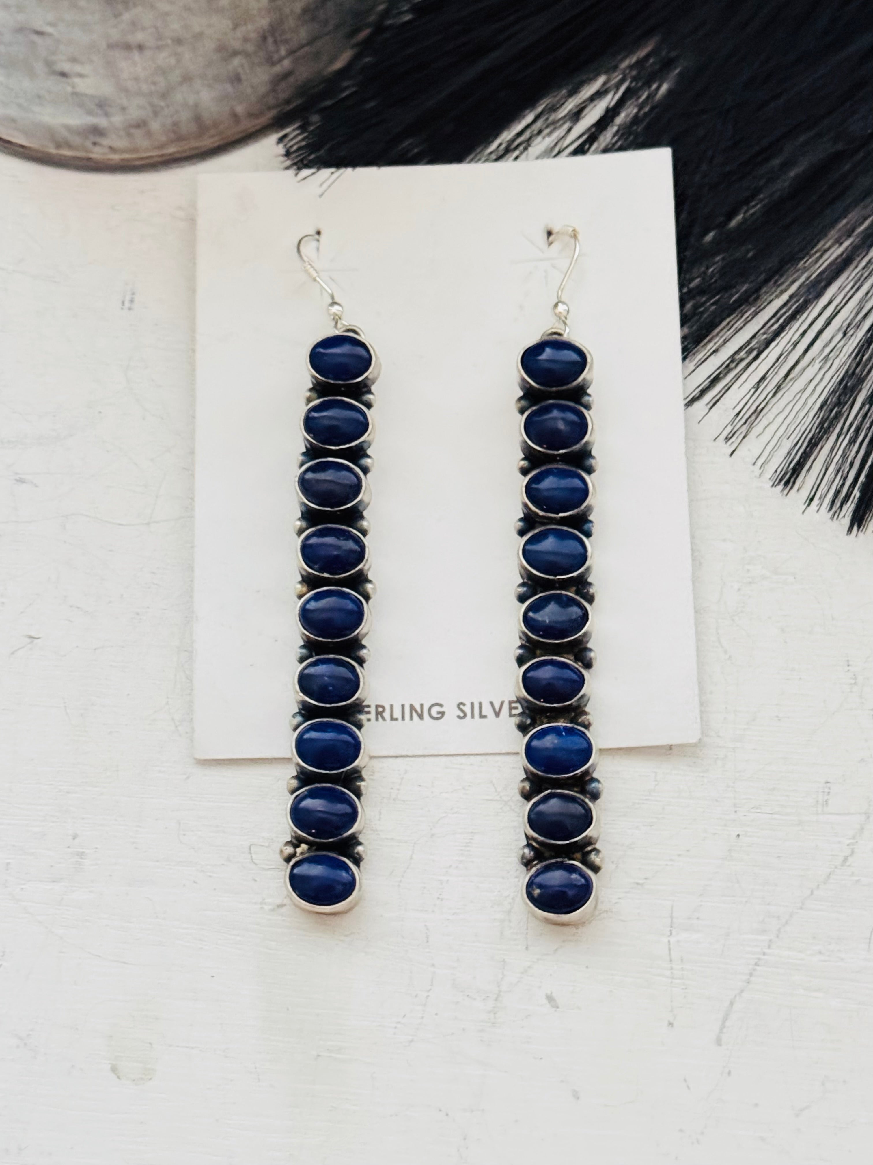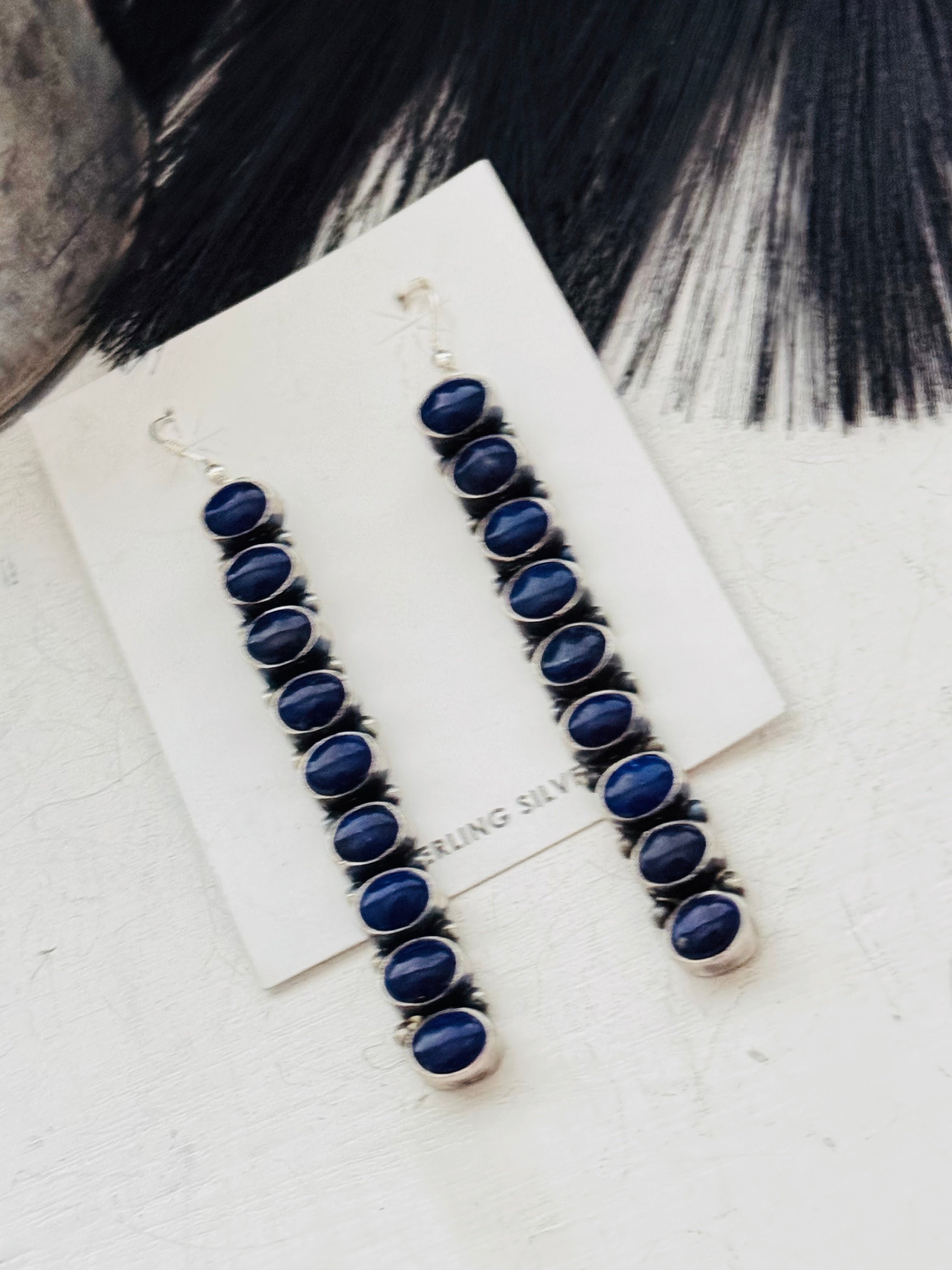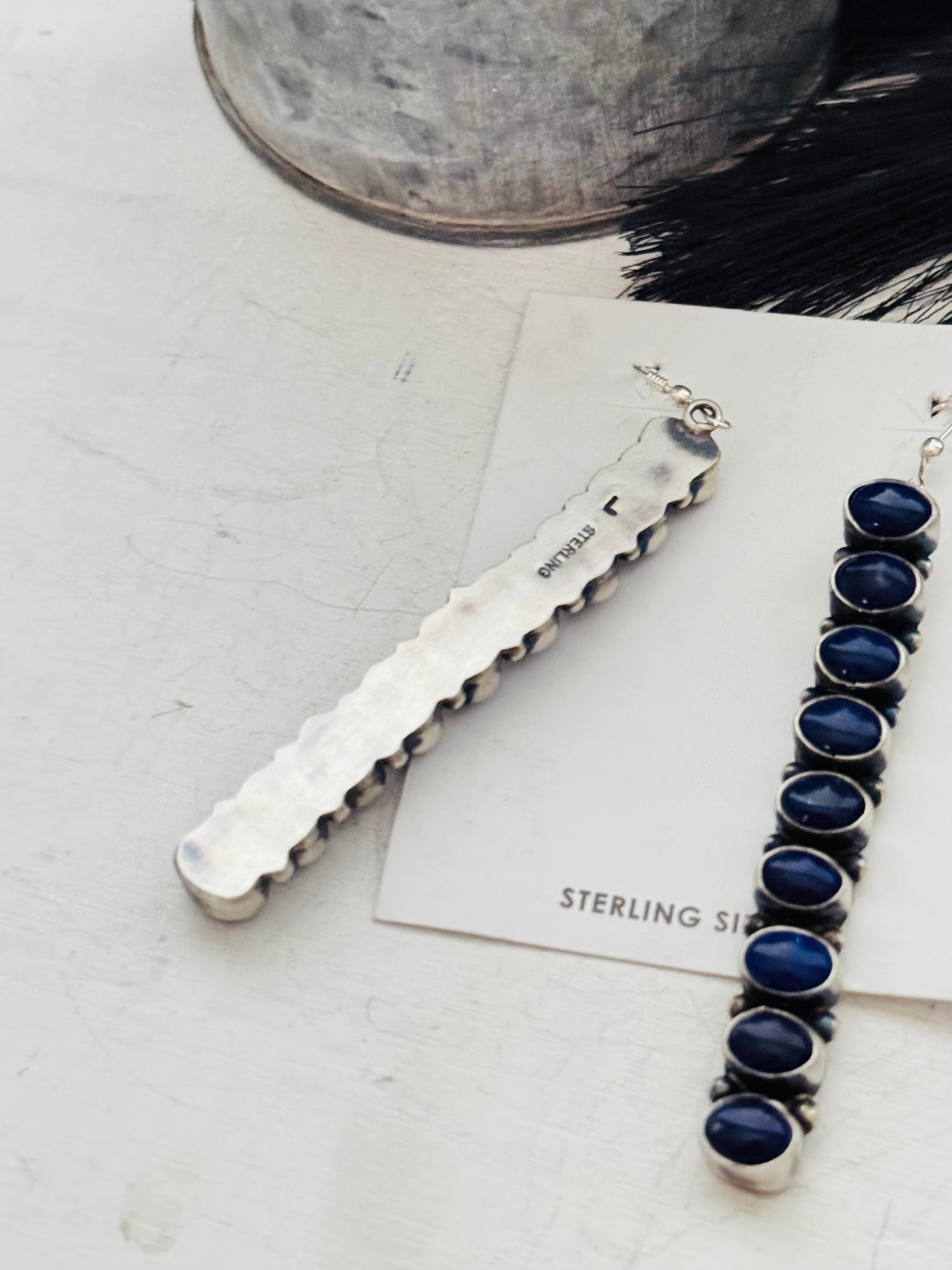 Navajo Made Lapis & Sterling Silver Dangle Earrings